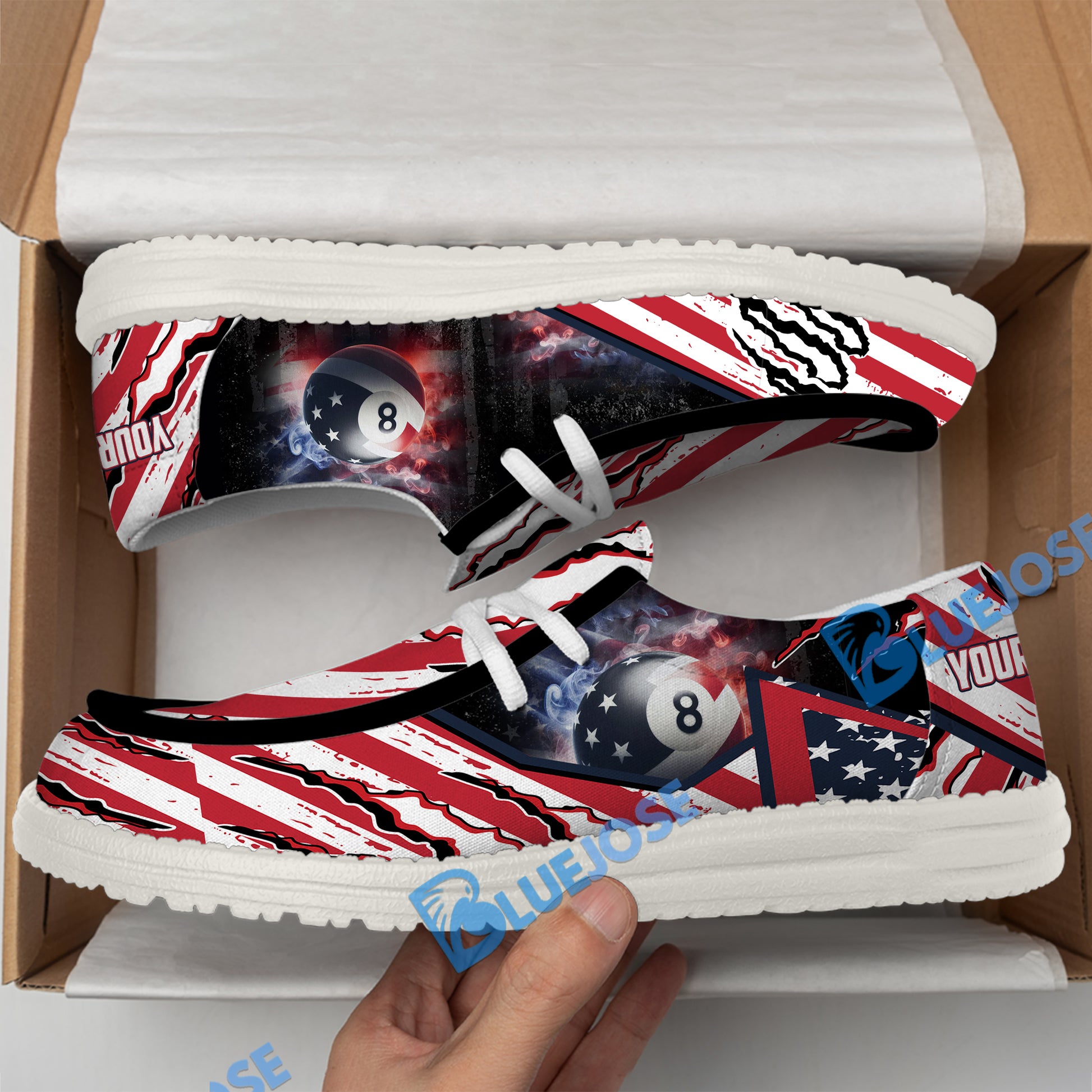 BlueJose Billiards Ball 8 American Flag Patriot White Canvas Loafer Shoes
