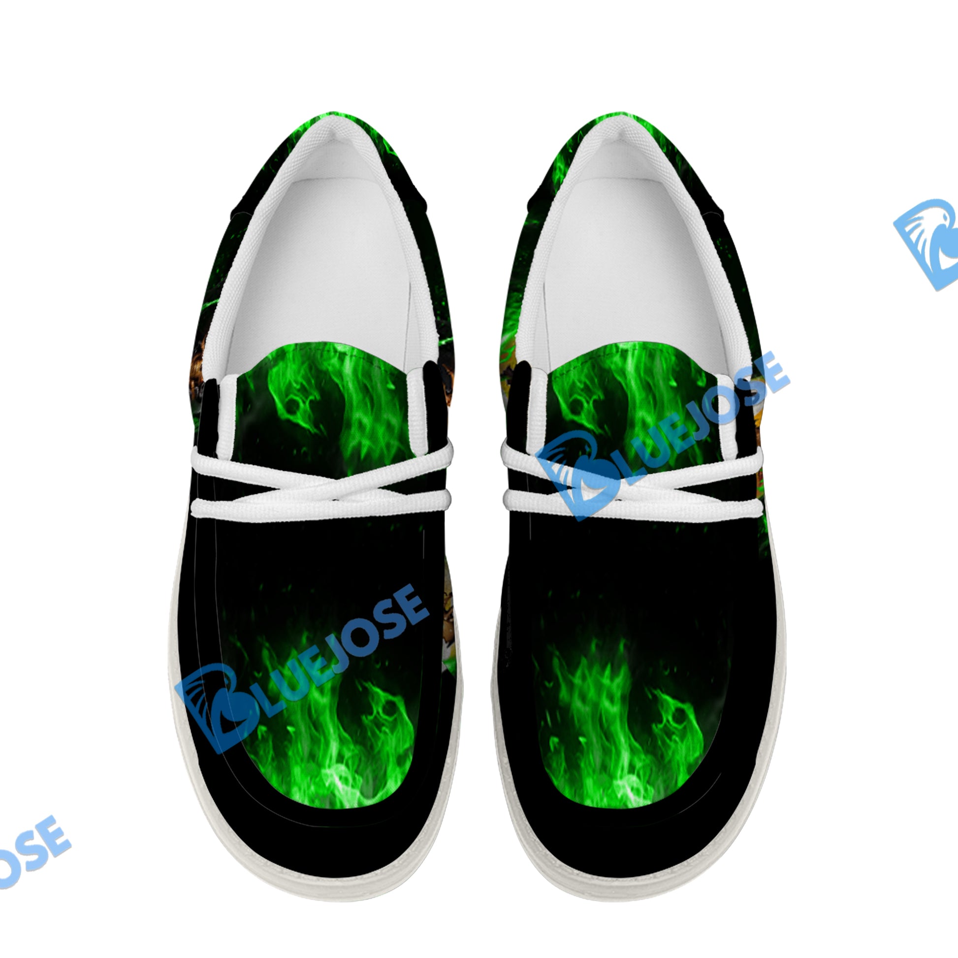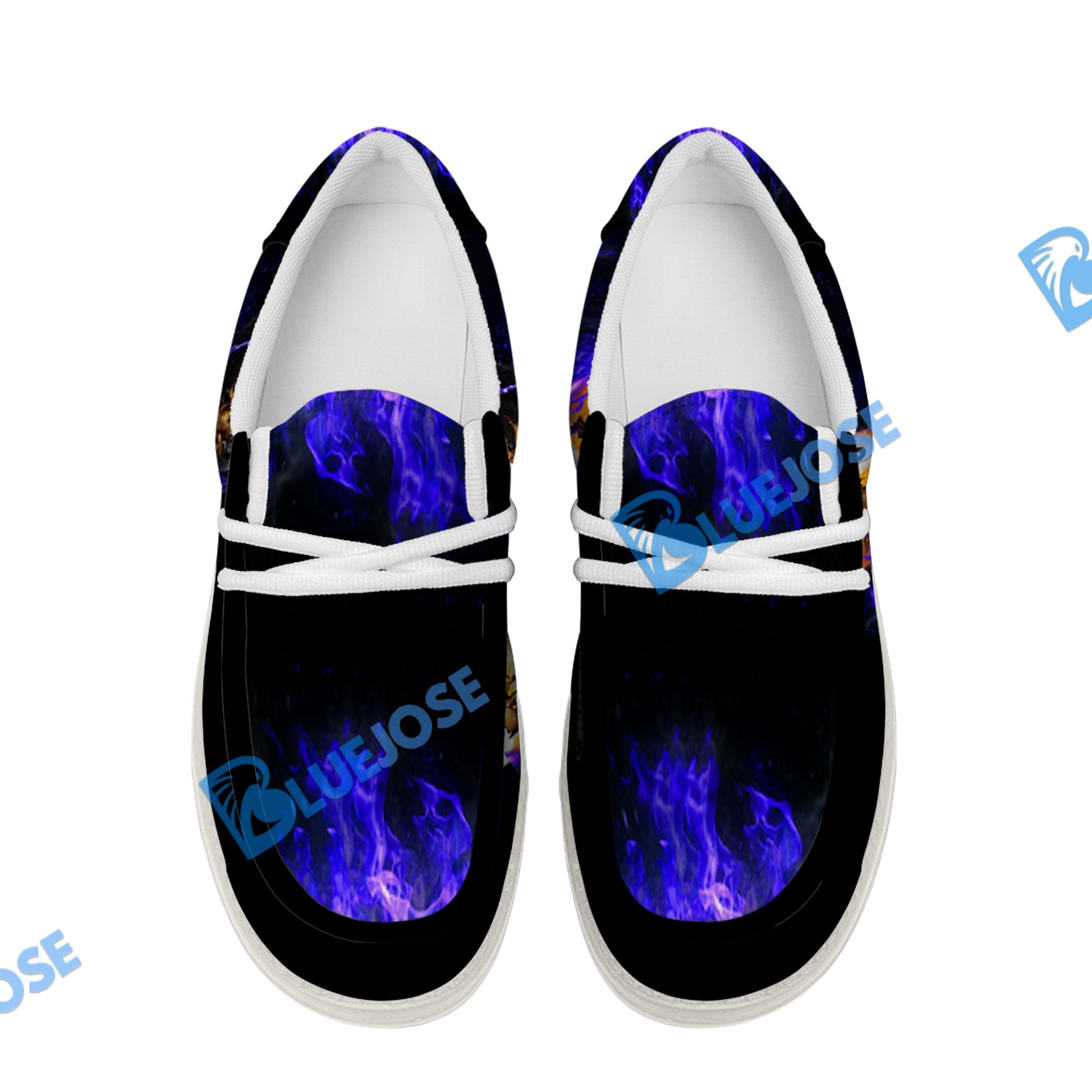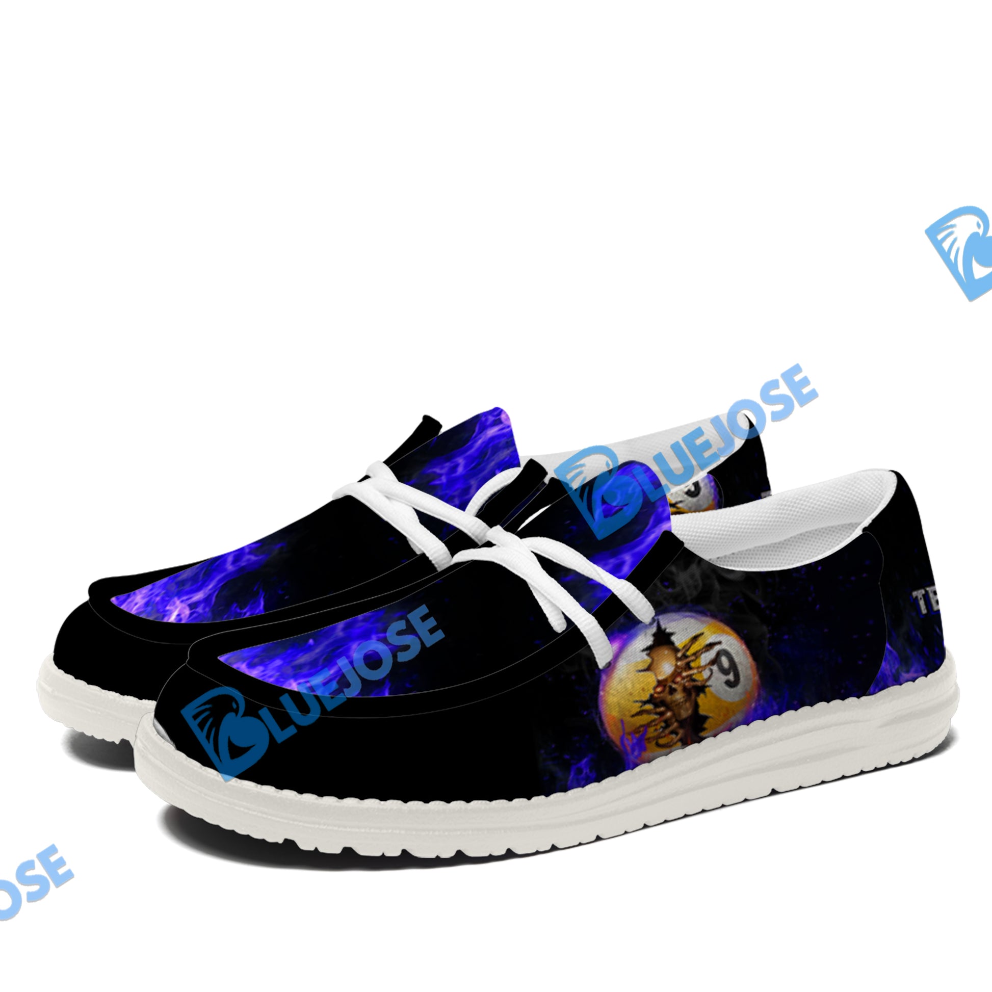 BlueJose Billiards Ball 8 And 9 Fire Skull Crack White Canvas Loafer Shoes (4 Colors)