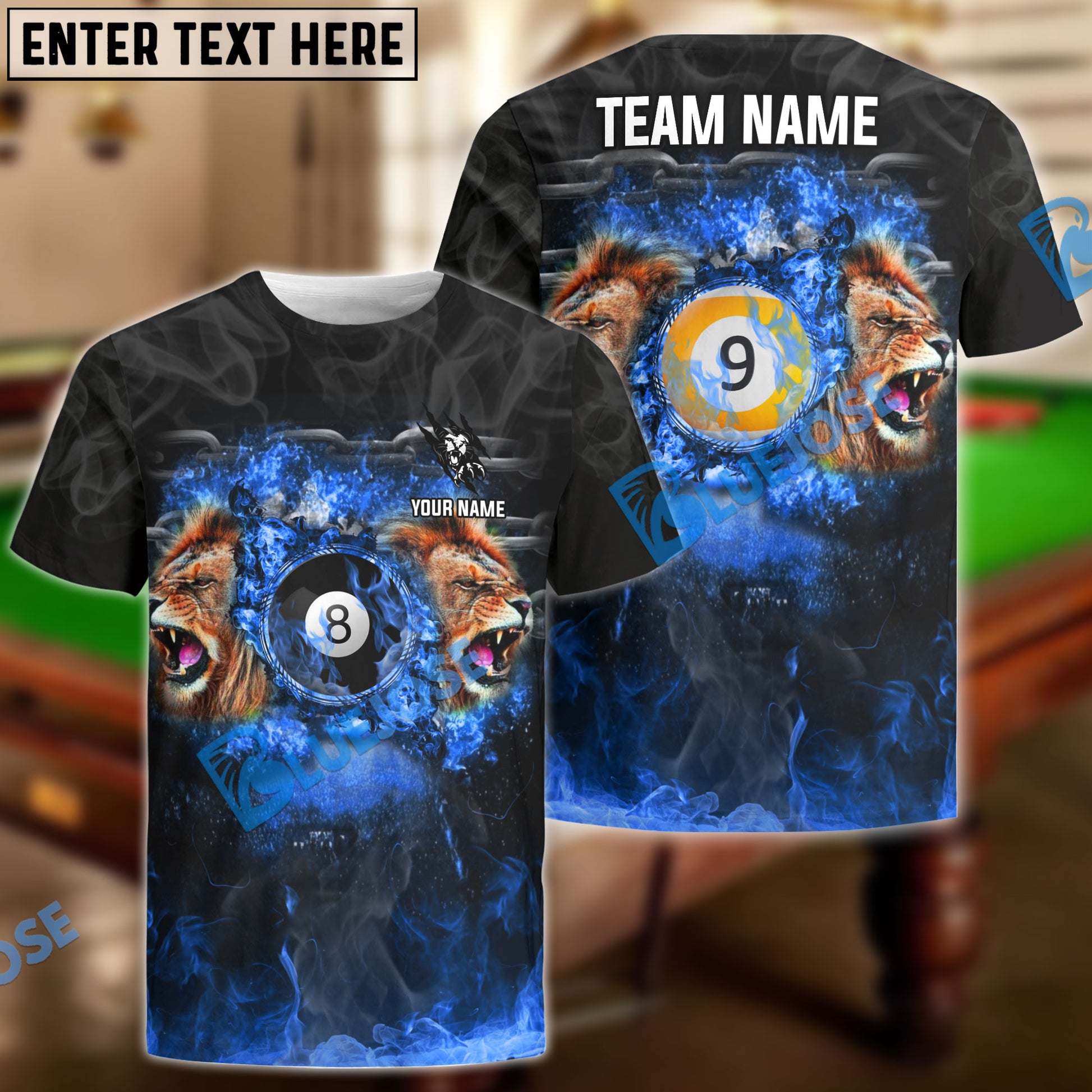 BlueJose Billiards Ball 8 And 9 Lion Kings Personalized Name, Team Name Unisex Shirt ( 4 Colors )