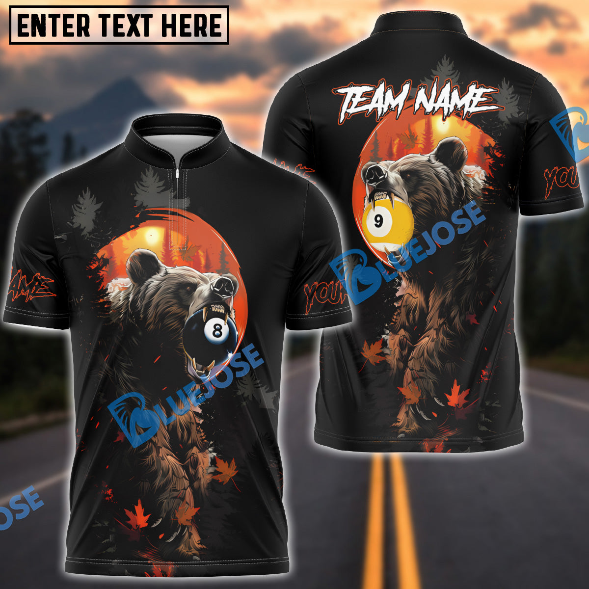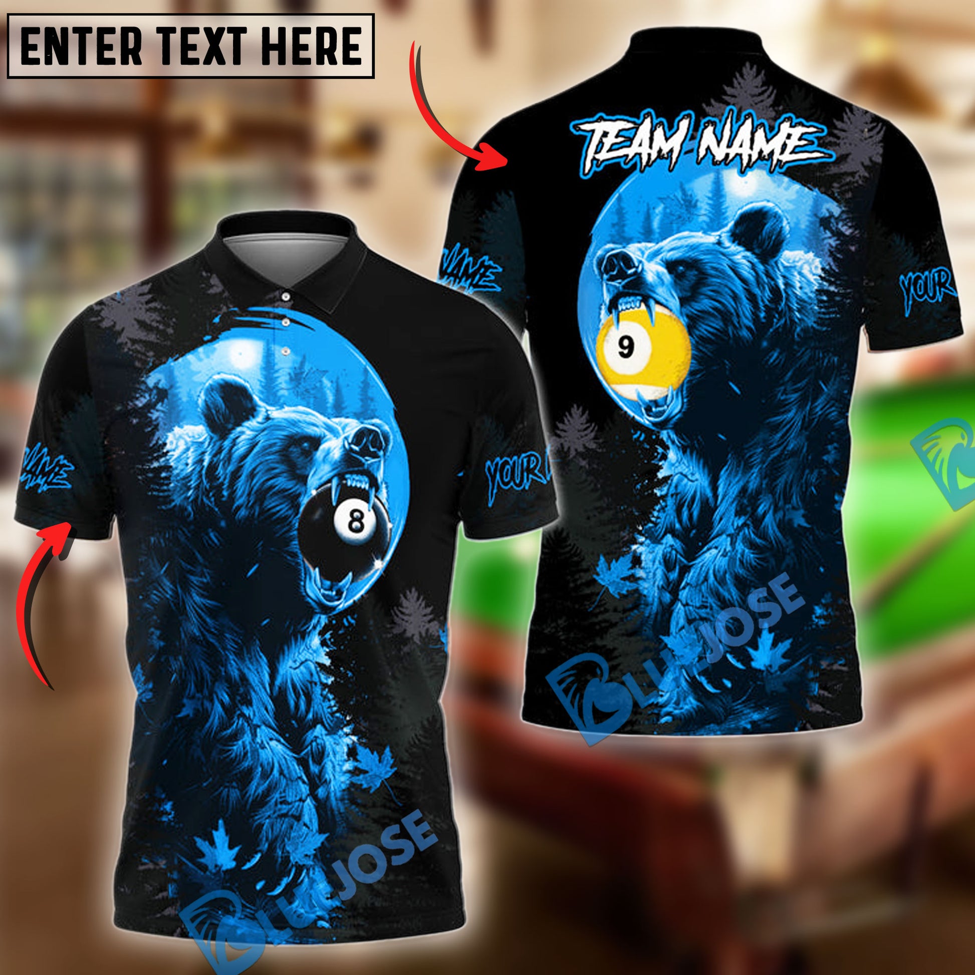 BlueJose Billiards Ball 8 & Ball 9 Bear Forest Personalized Name & Team Name Shirt (4 Colors)