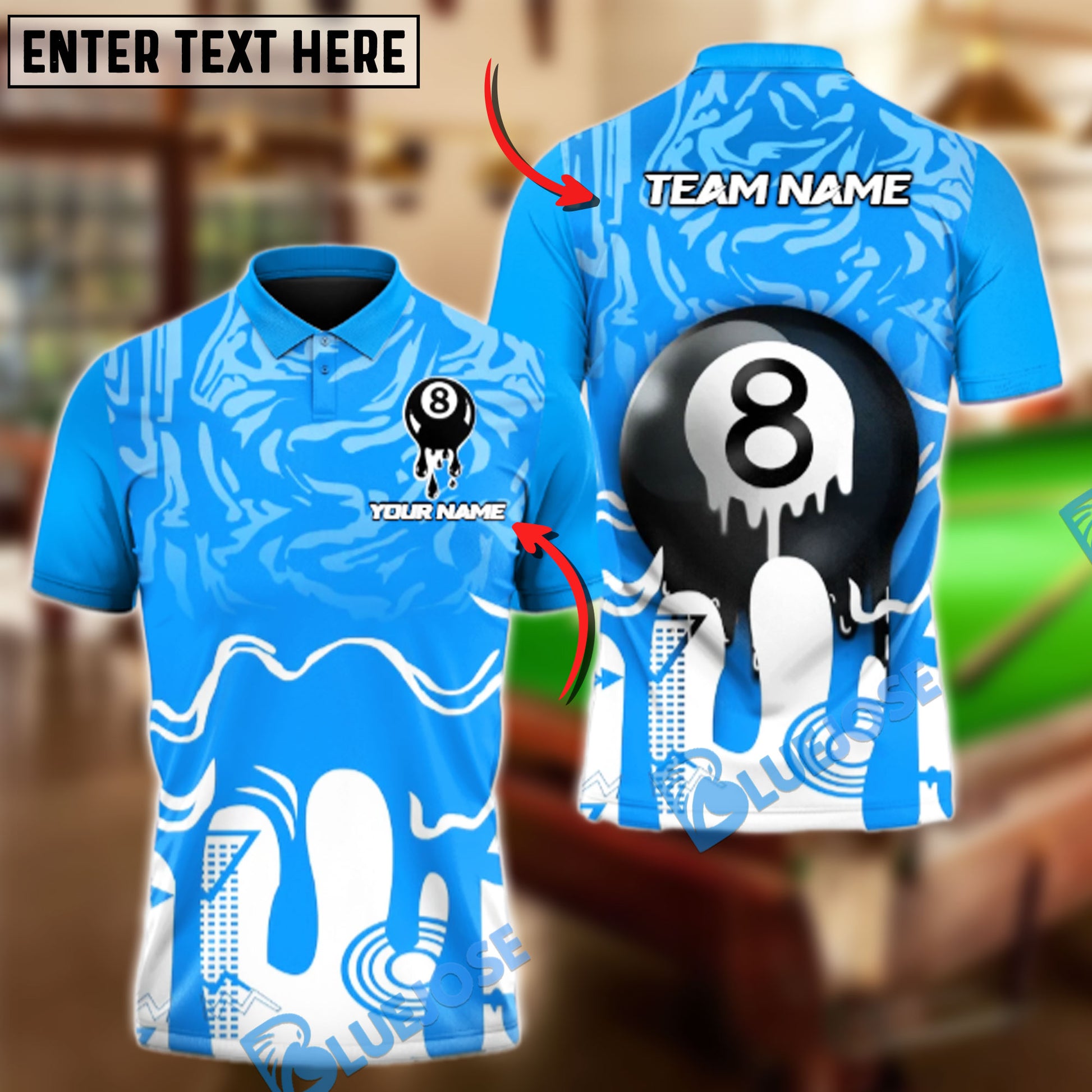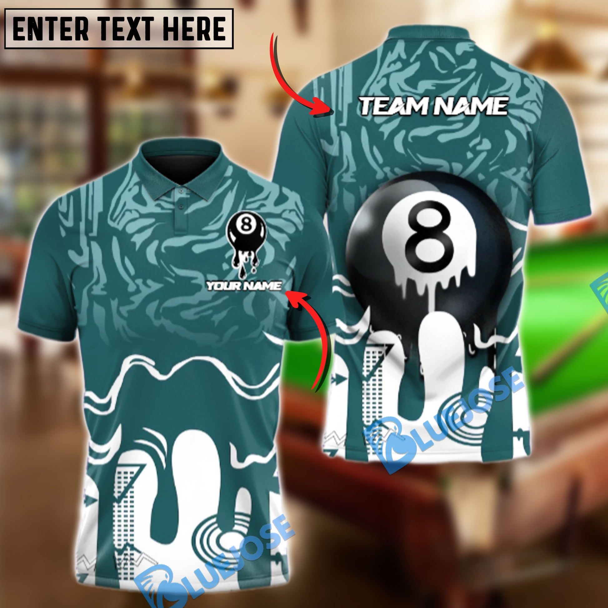 BlueJose Billiards Ball 8 Colorful Paint Personalized Name Shirt (4 Colors)
