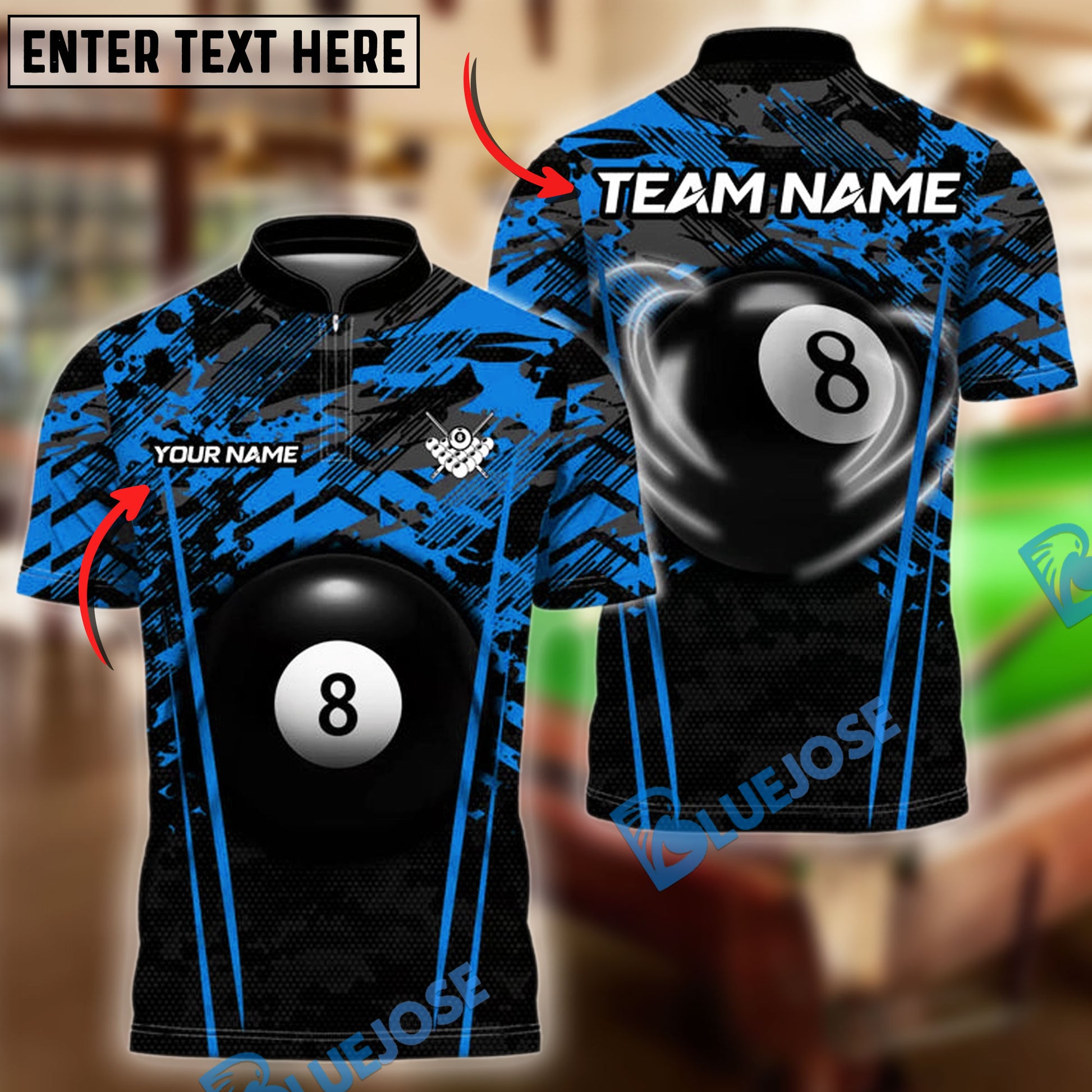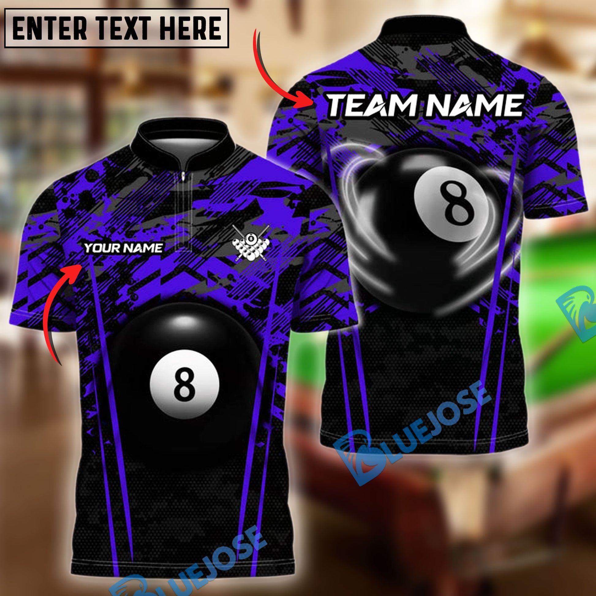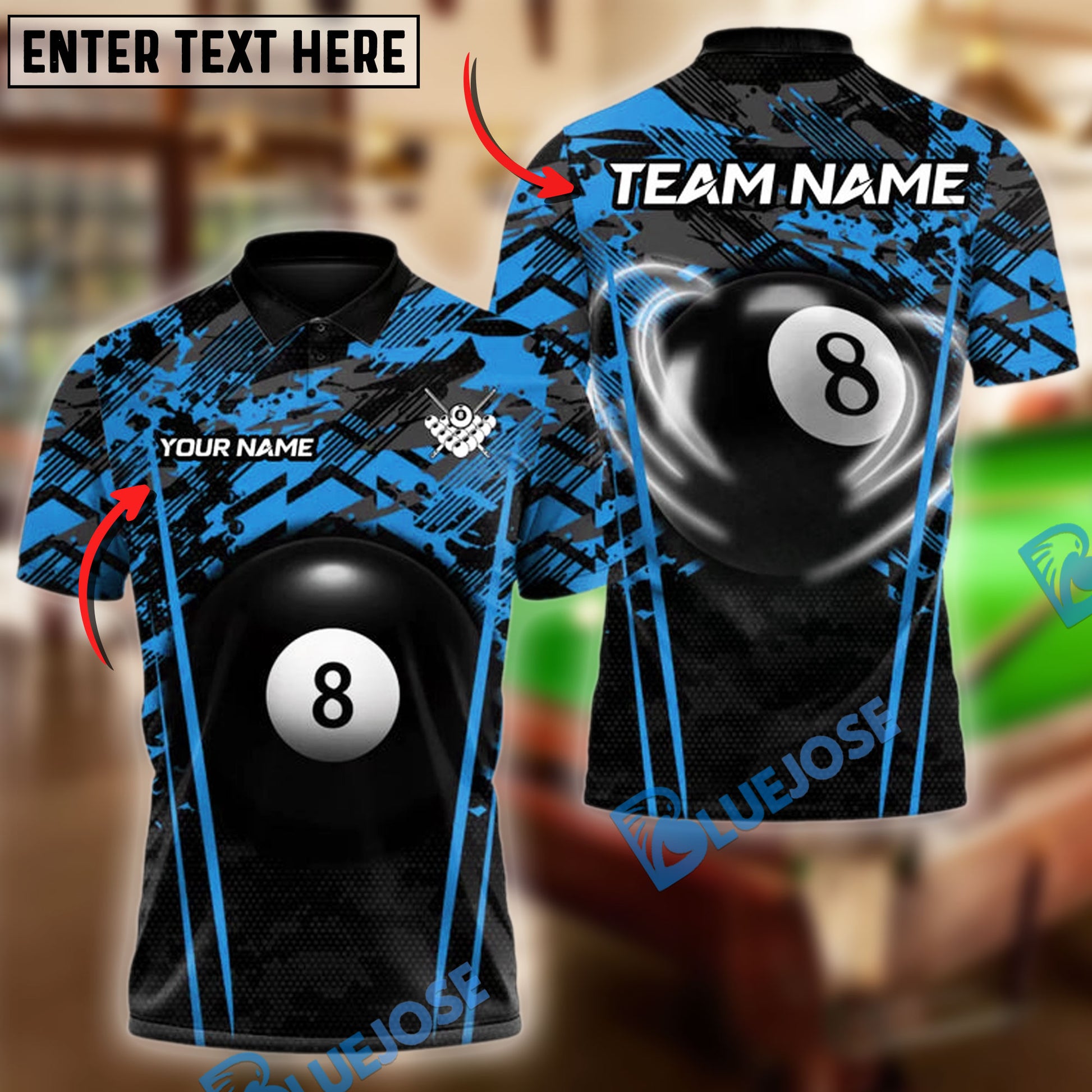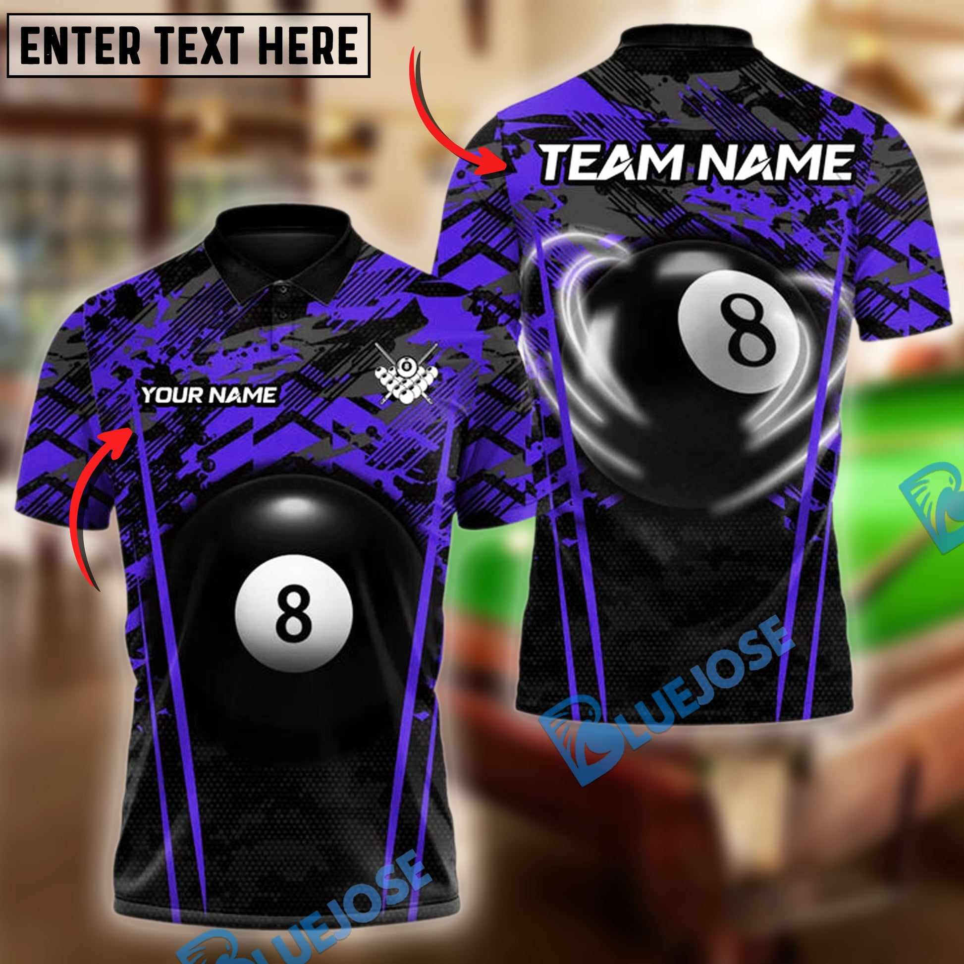 BlueJose Billiards Ball 8 Crimson Cue Clash Personalized Name & Team Name Shirt (4 Colors)