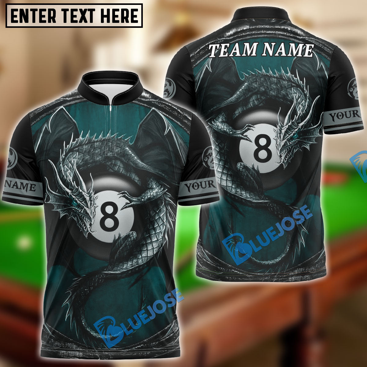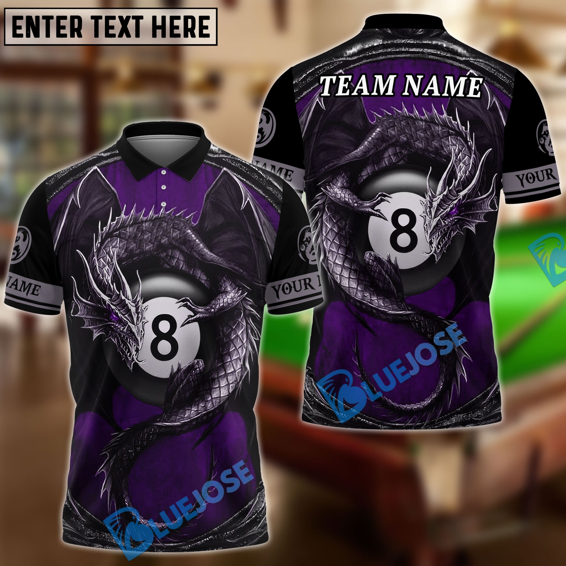 BlueJose Billiards Ball 8 Dragon Owner Personalized Name & Team Name Shirt (4 Colors)