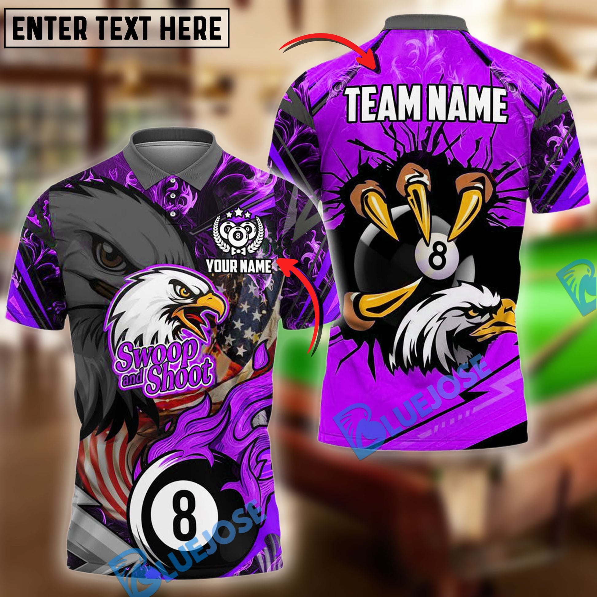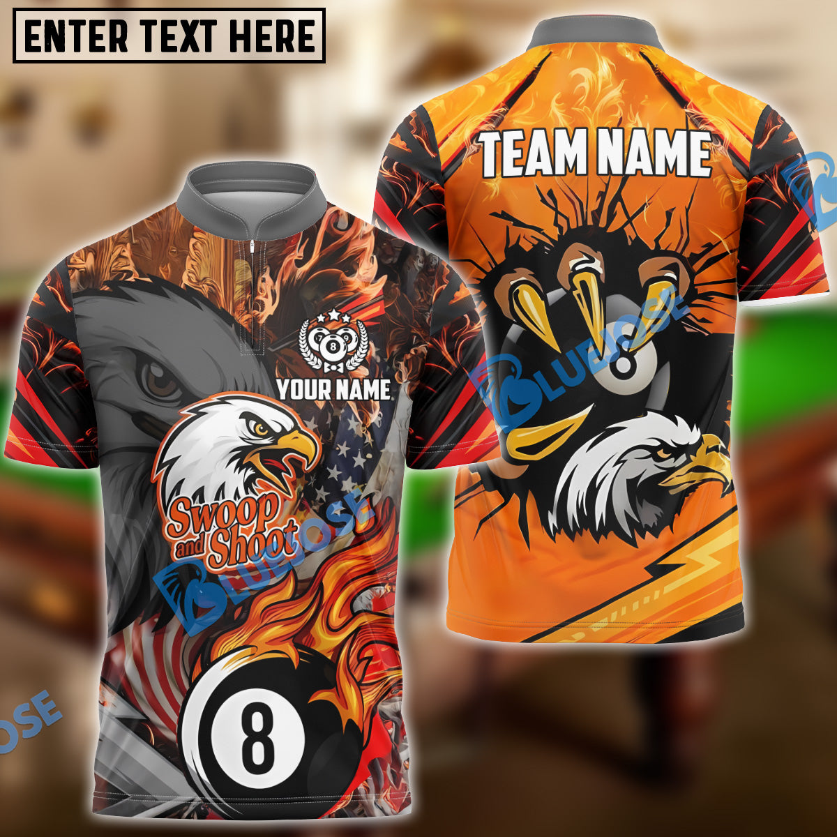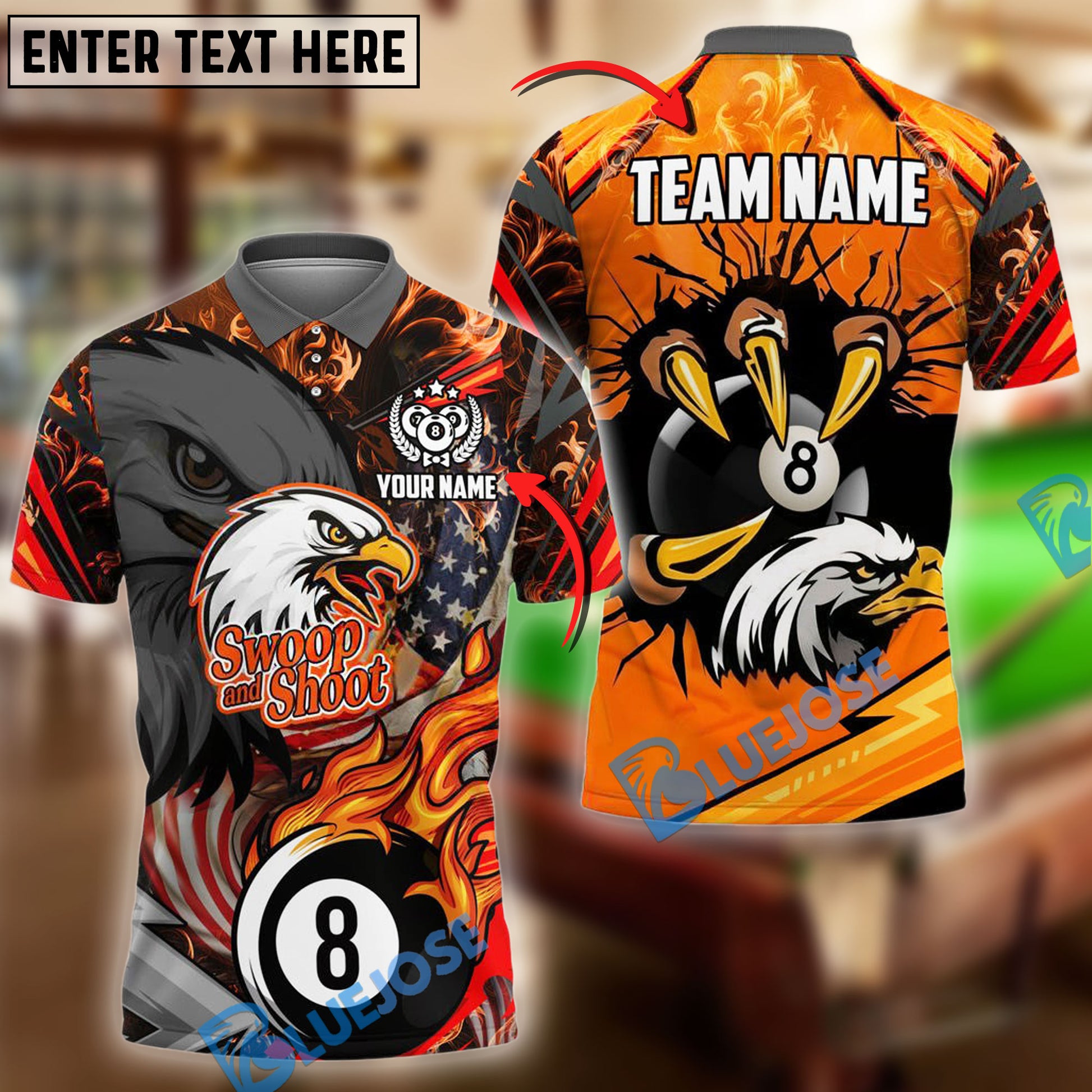 BlueJose Billiards Ball 8 Eagle Claw Firestorm American Flag Personalized Name Shirt (4 Colors)