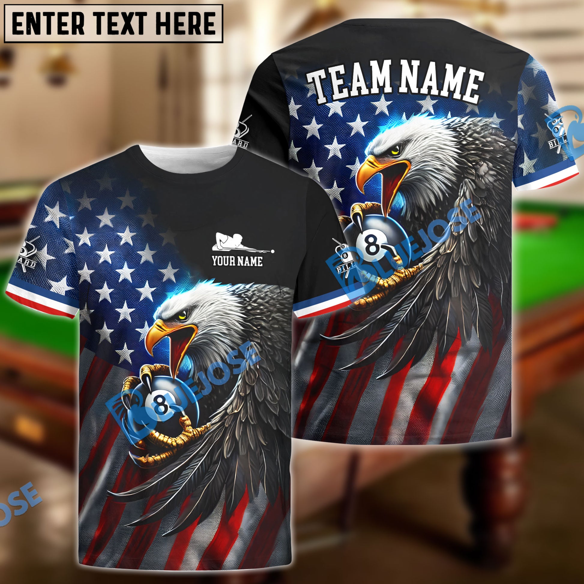 BlueJose Billiards Ball 8 Eagle Flag Of US Pattern Personalized Name, Team Name Unisex Shirt