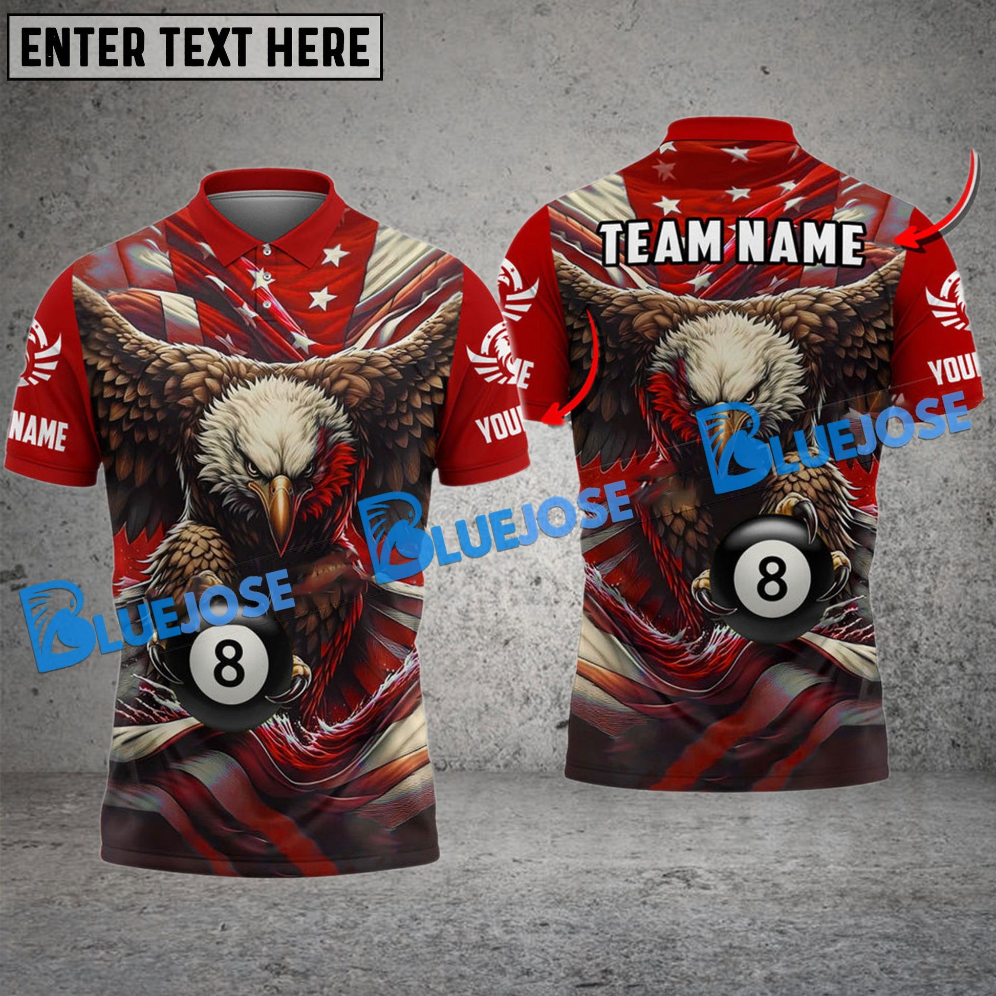 BlueJose Billiards Ball 8 Eagle Flag Premium Personalized Name Shirt (4 Colors)