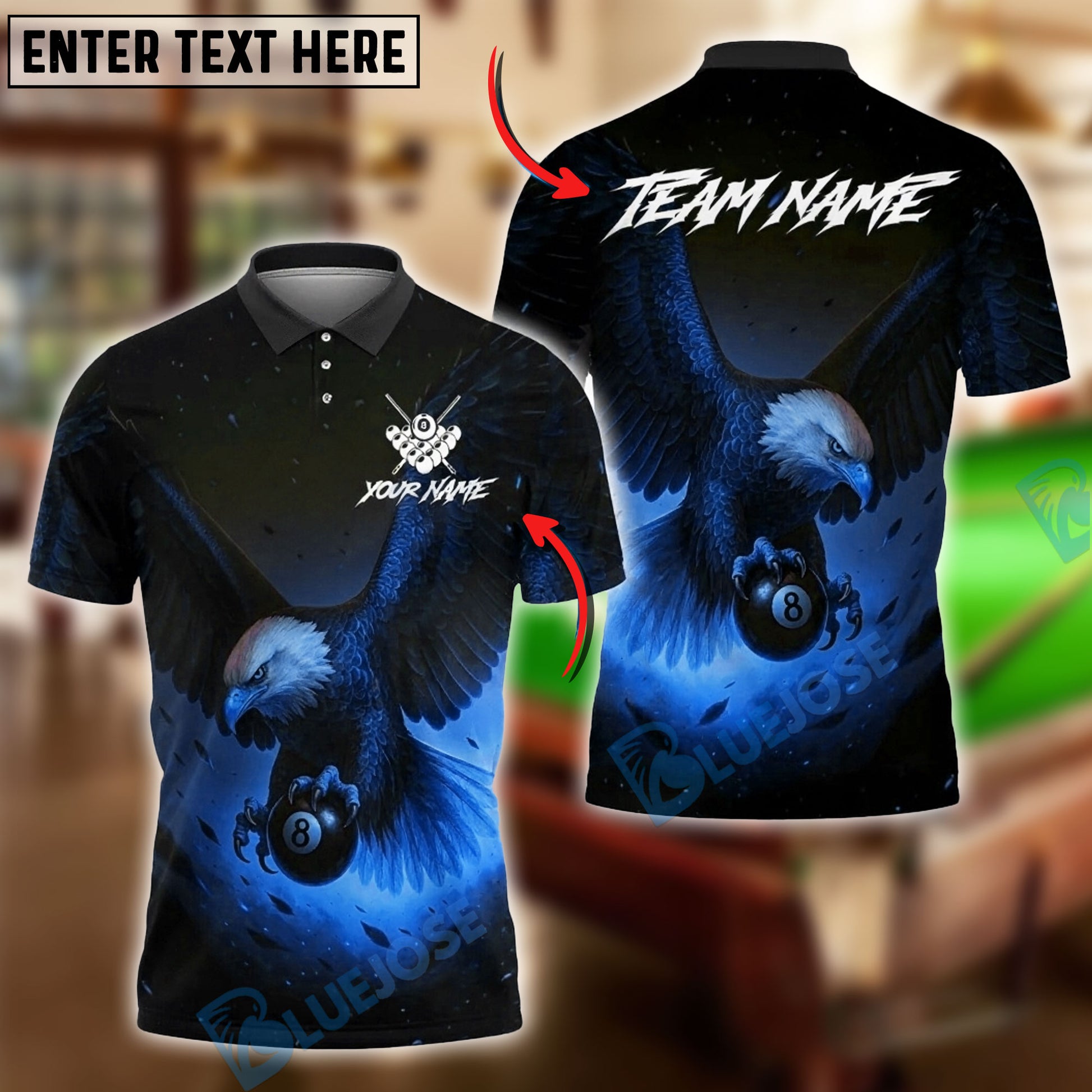 BlueJose Billiards Ball 8 Eagle Power Pool Personalized Name, Team Name Unisex Shirt (4 Colors)