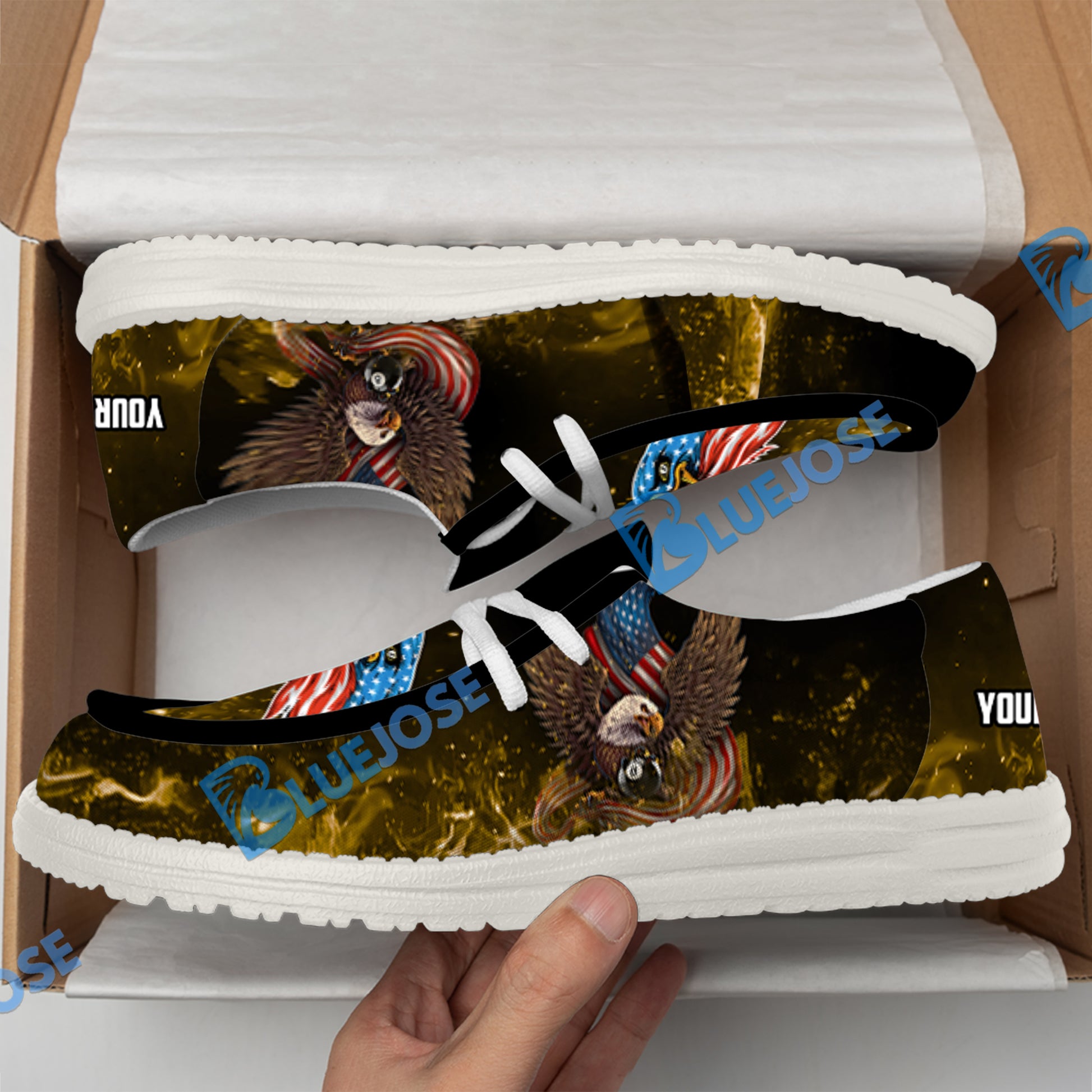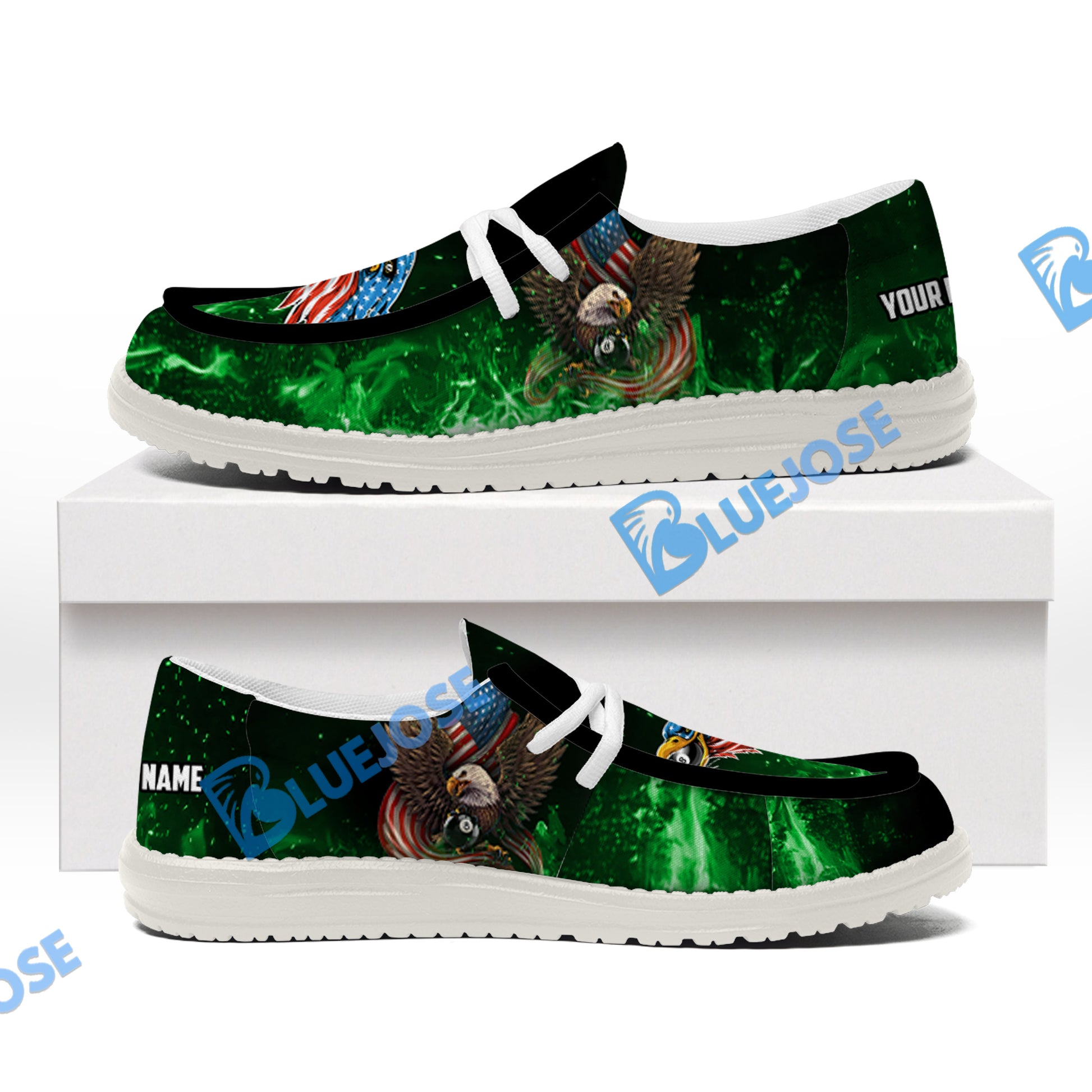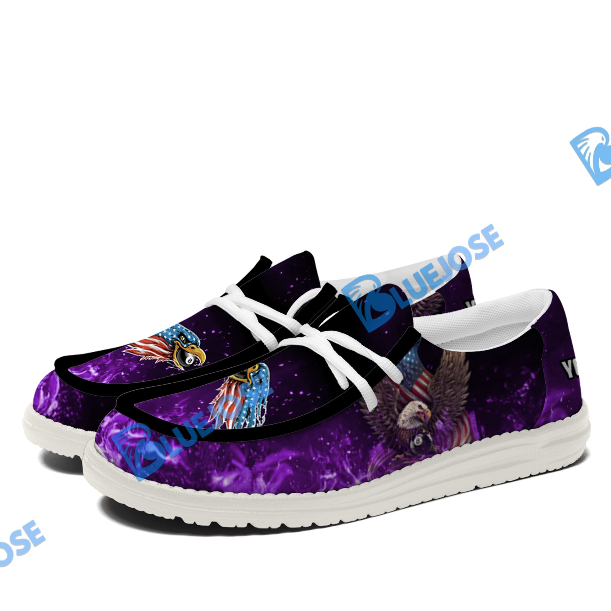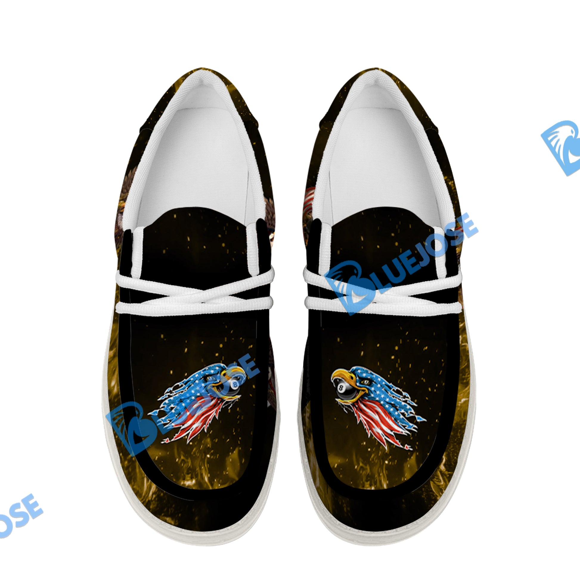 BlueJose Billiards Ball 8 Eagle US Flag Pattern 2 White Canvas Loafer Shoes (3 Colors)
