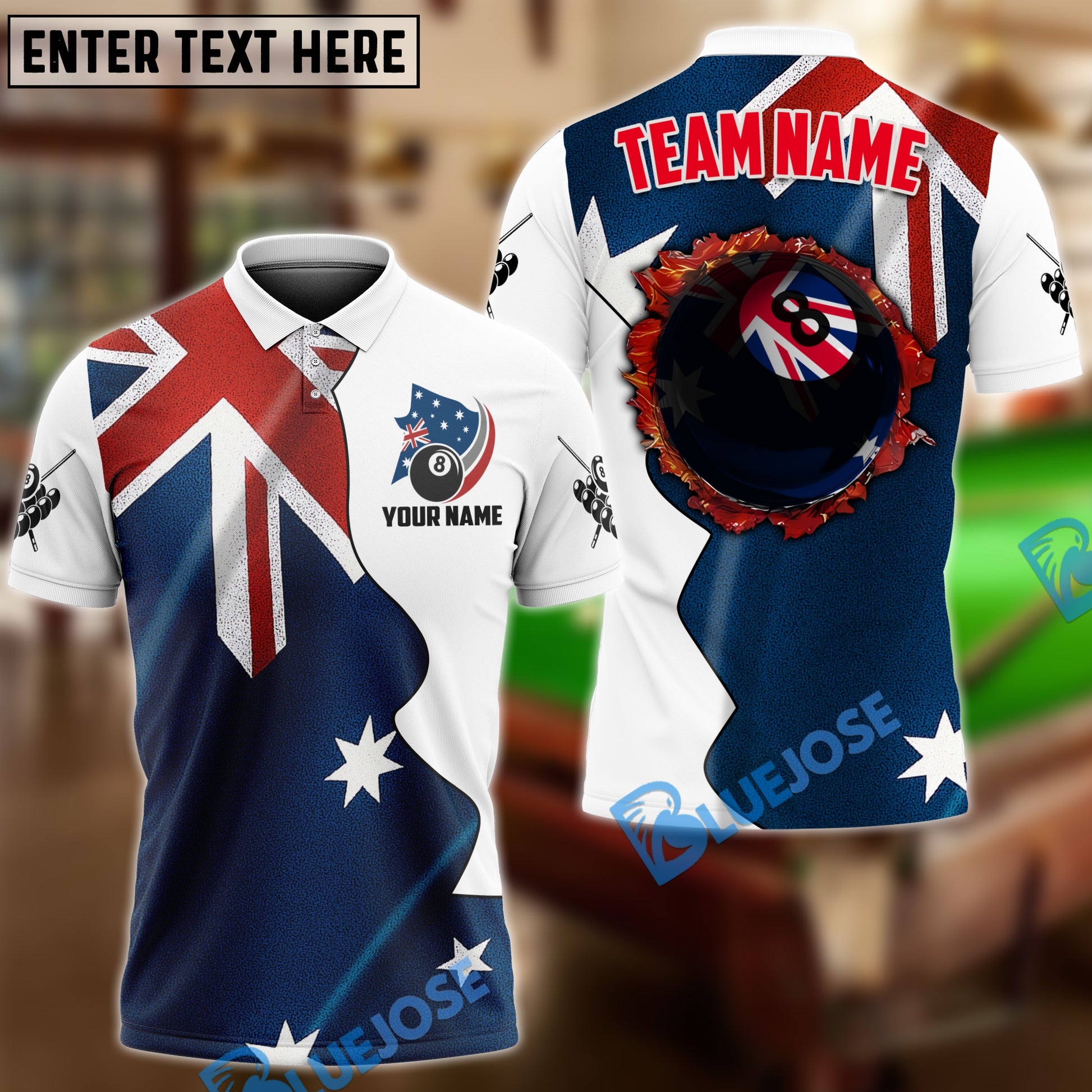 BlueJose Billiards Ball 8 Fire Autralian Flag Personalized Name, Team Name Unisex Shirt