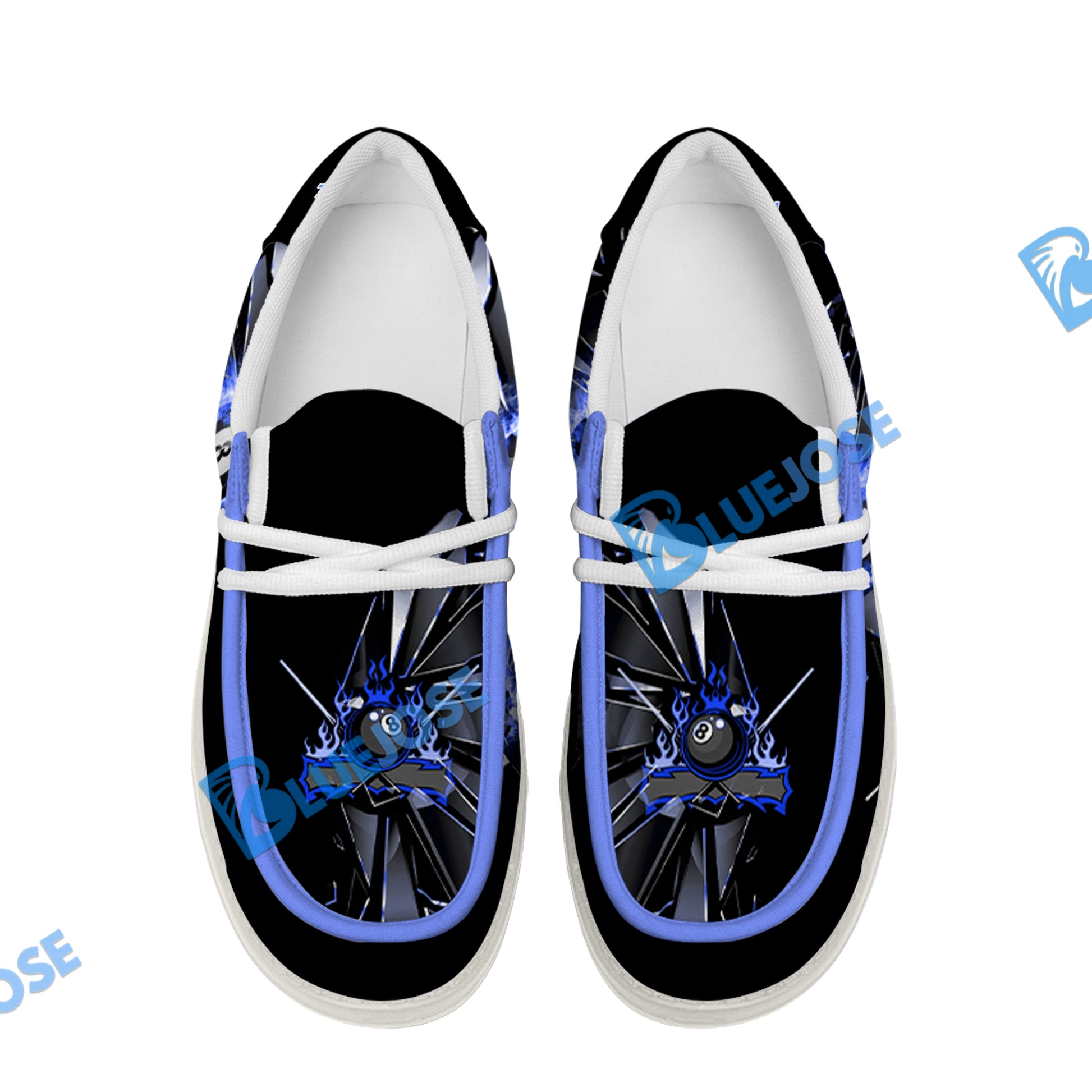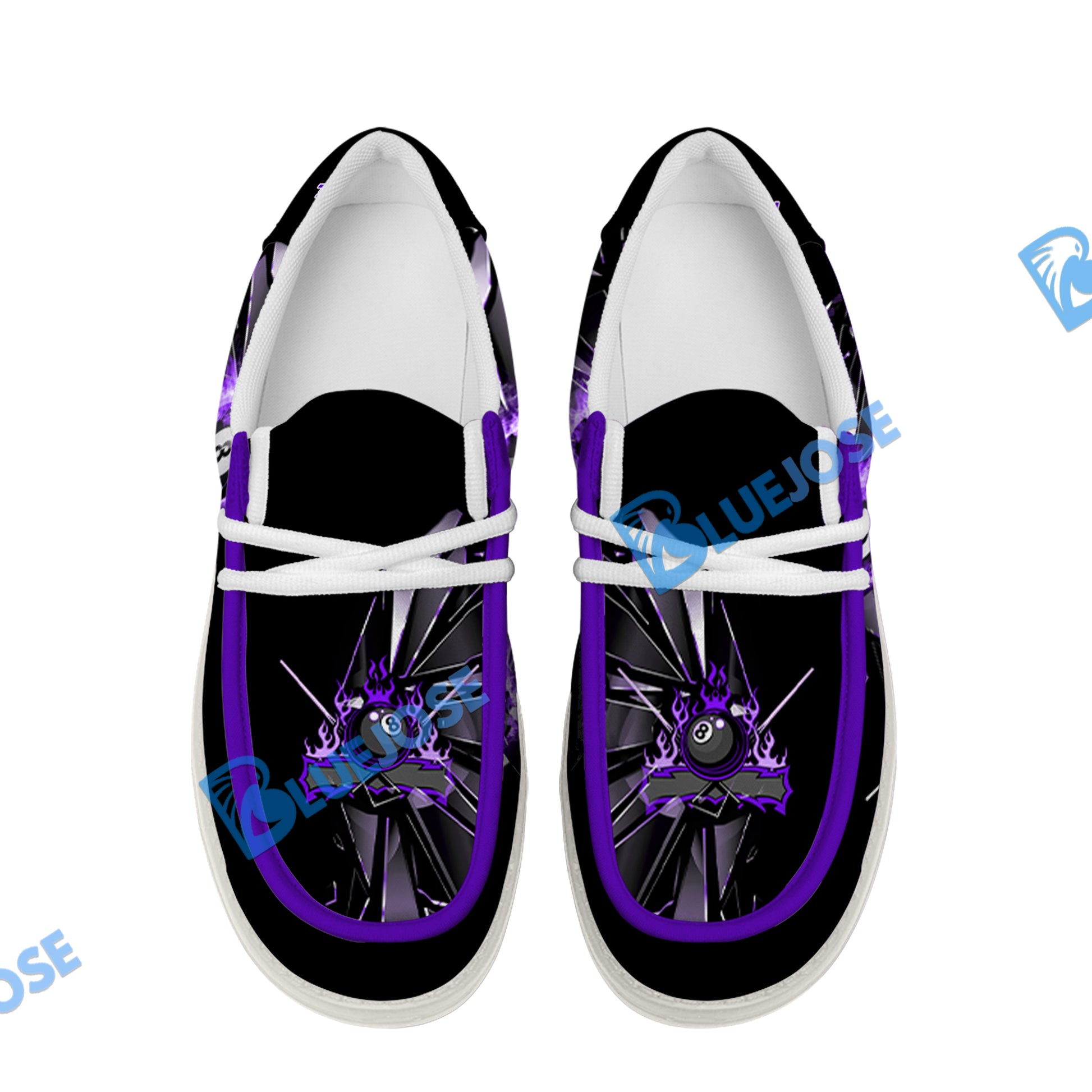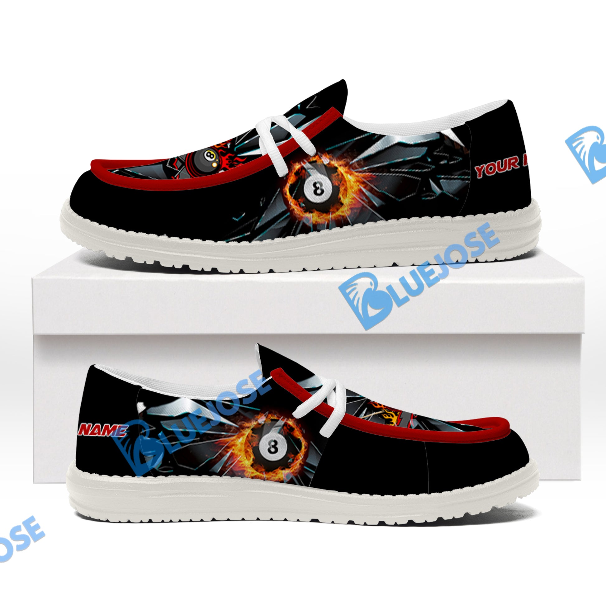 BlueJose Billiards Ball 8 Fire Broken Glass White Canvas Loafer Shoes (4 Colors)