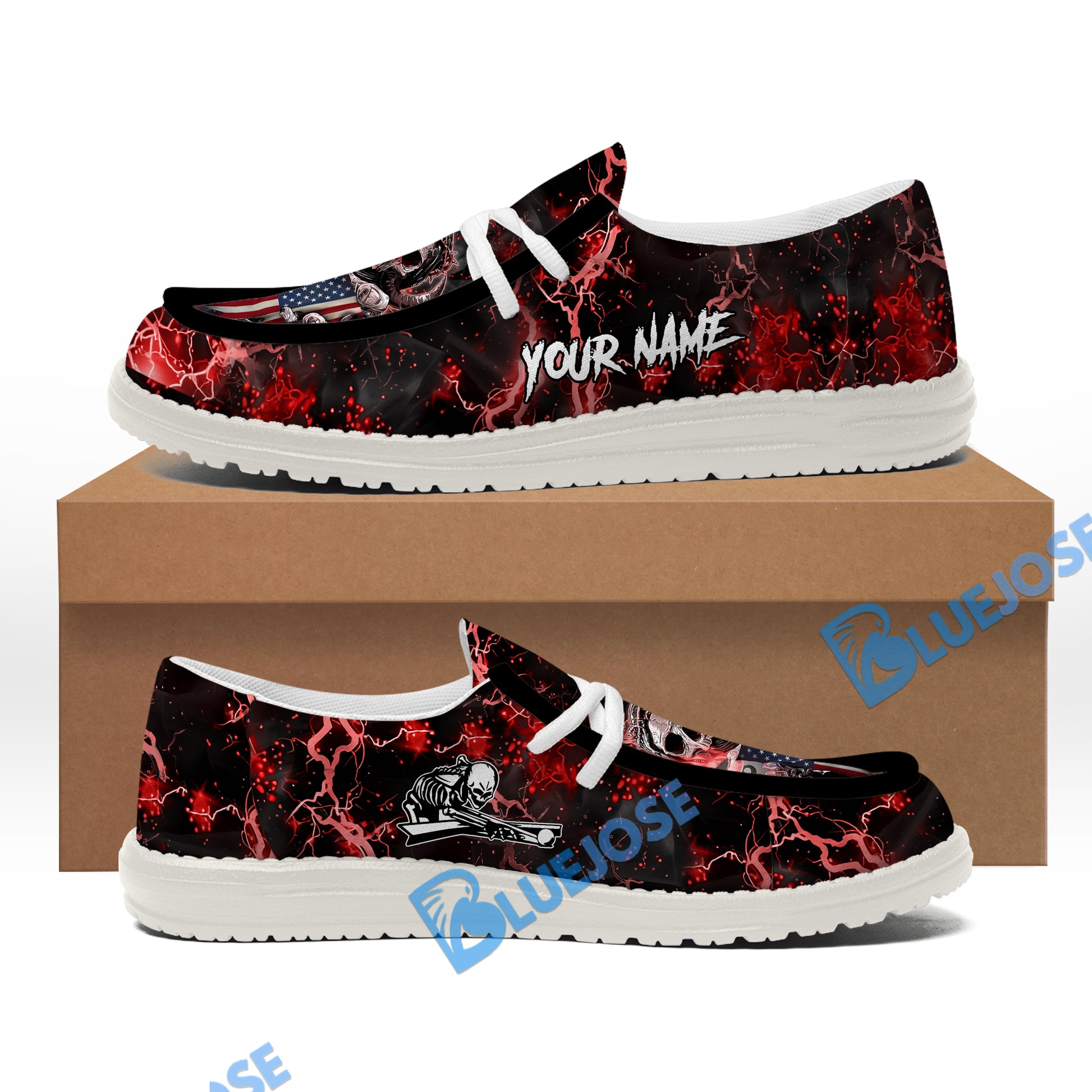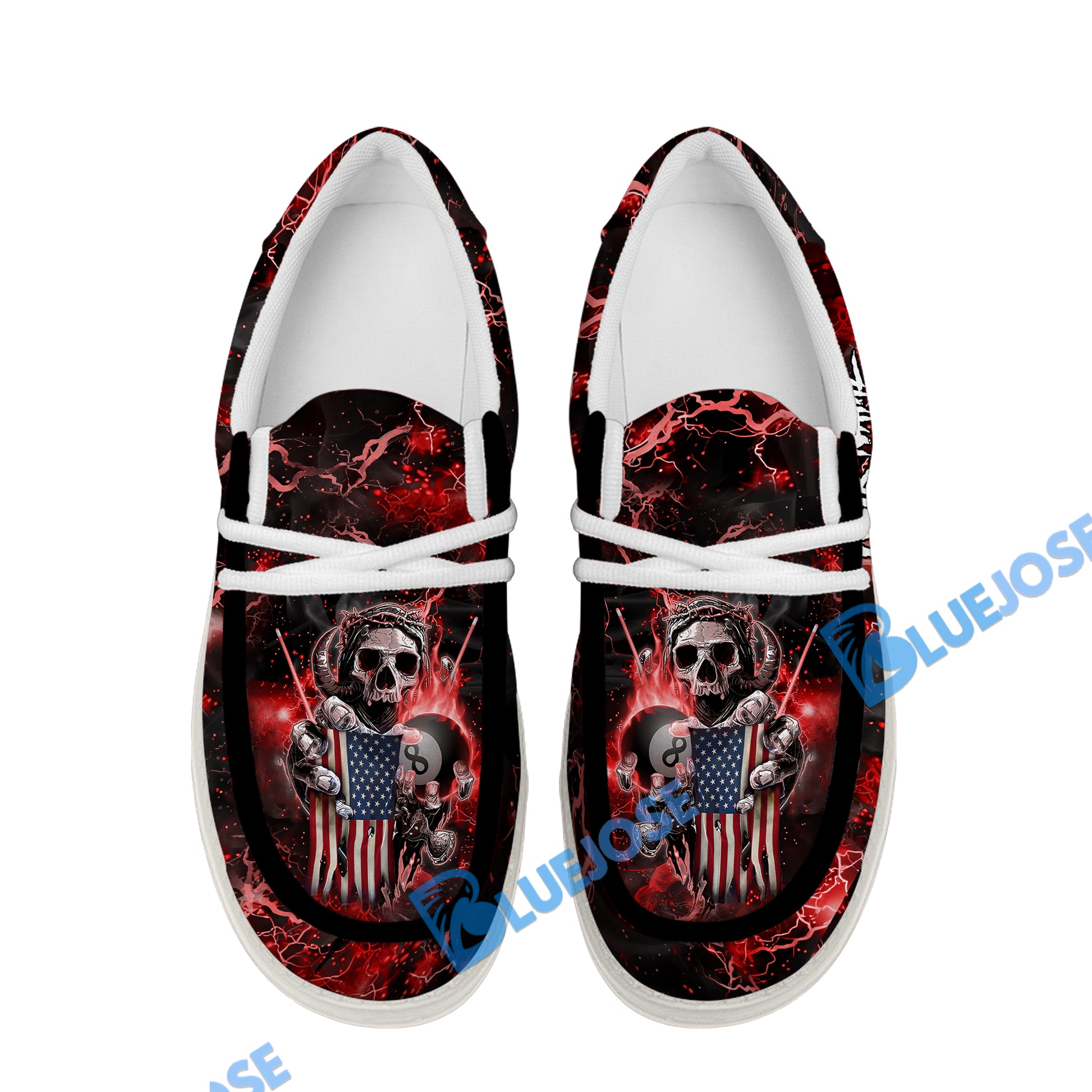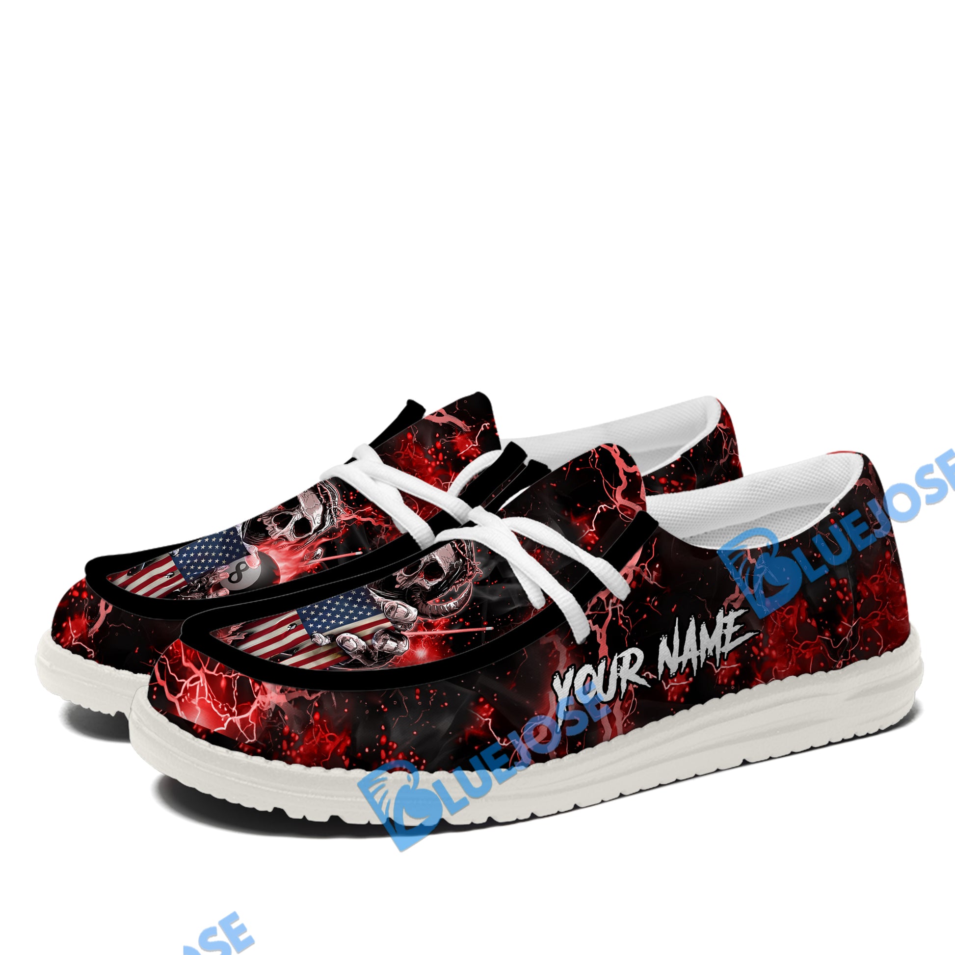 BlueJose Billiards Ball 8 Fire Skull US Flag Red White Canvas Loafer Shoes