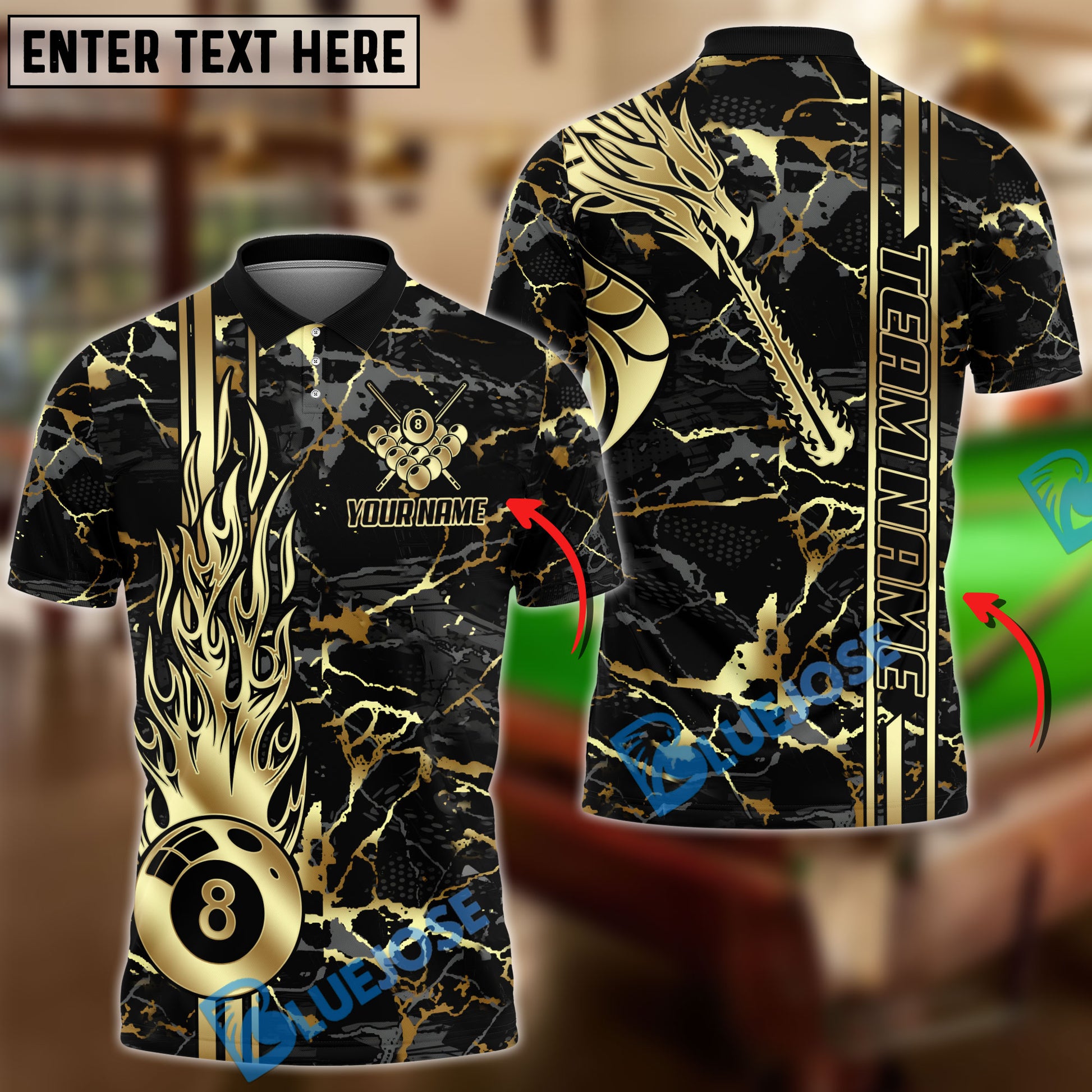 BlueJose Billiards Ball 8 Flame Golden Personalized Name Shirt (4 Colors)
