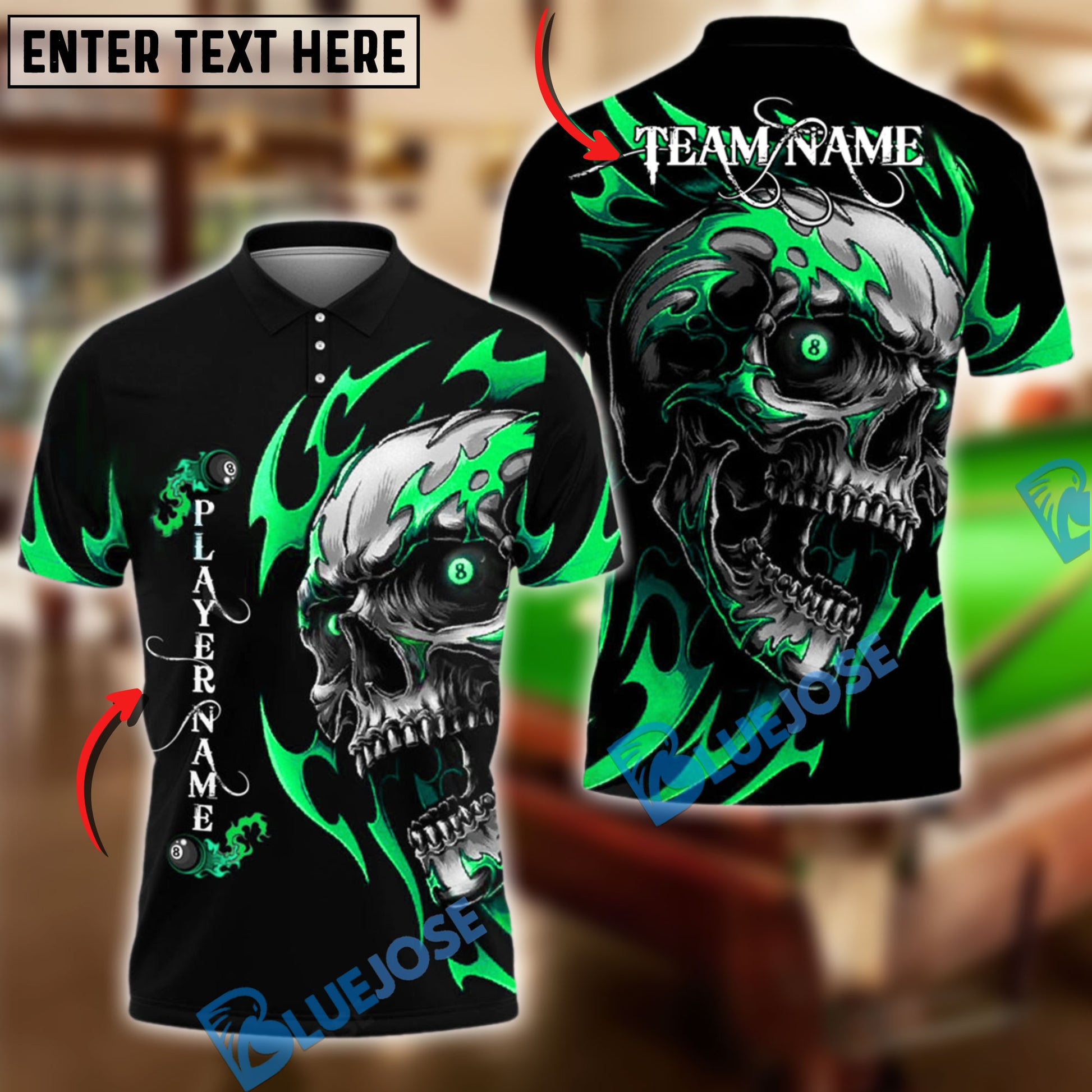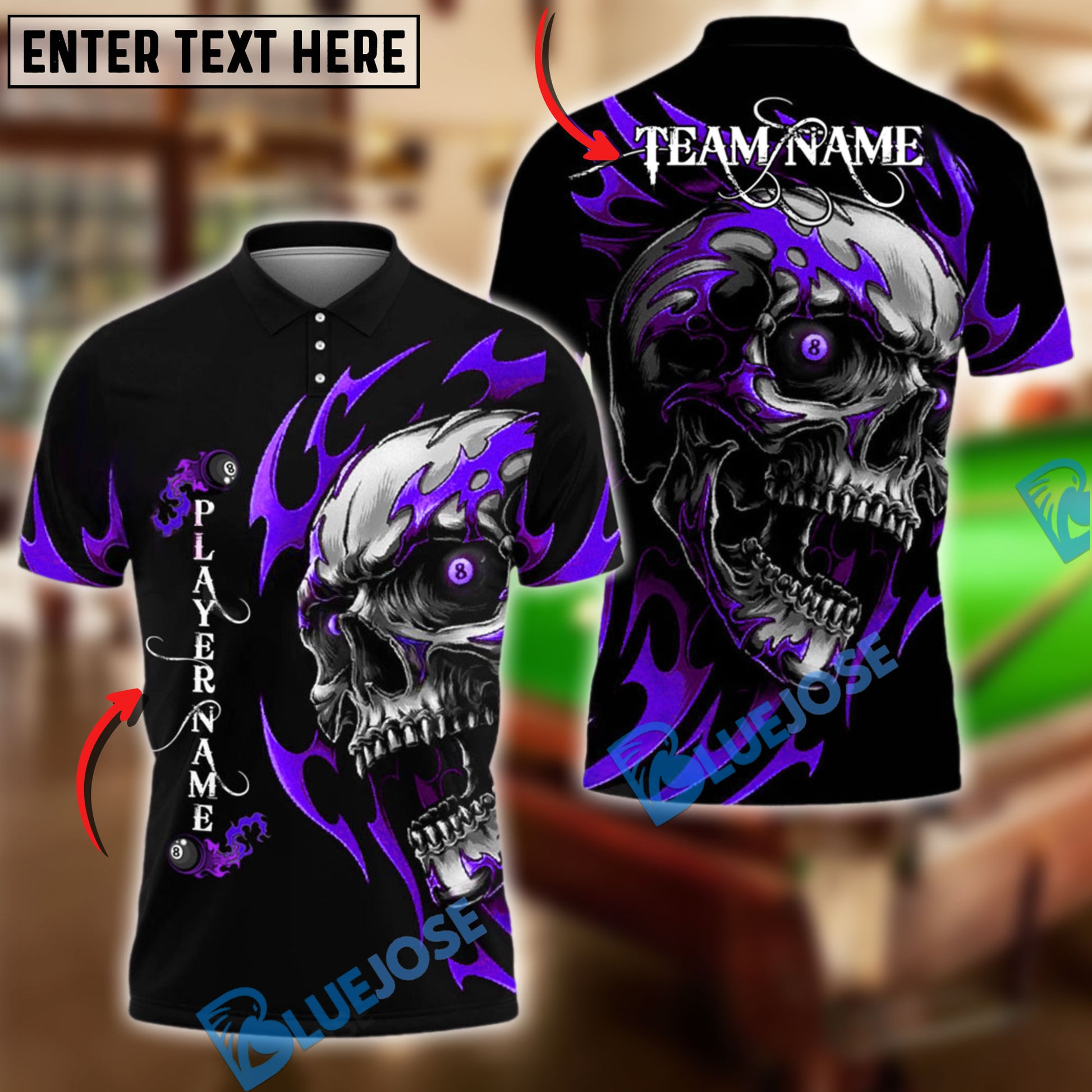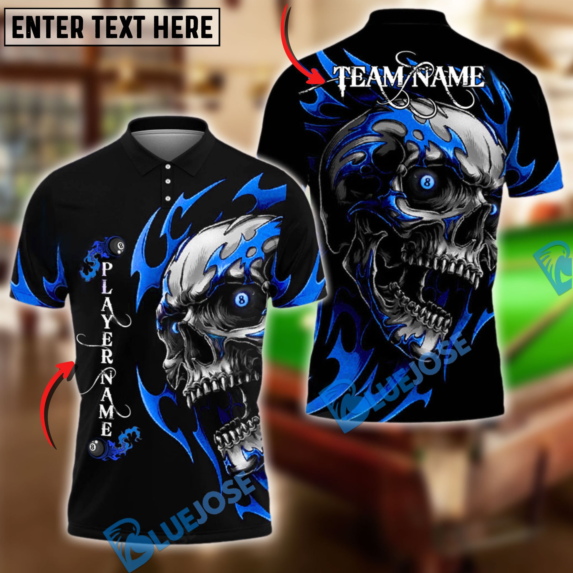 BlueJose Billiards Ball 8 Flame Skull Personalized Name Shirt (4 Colors)