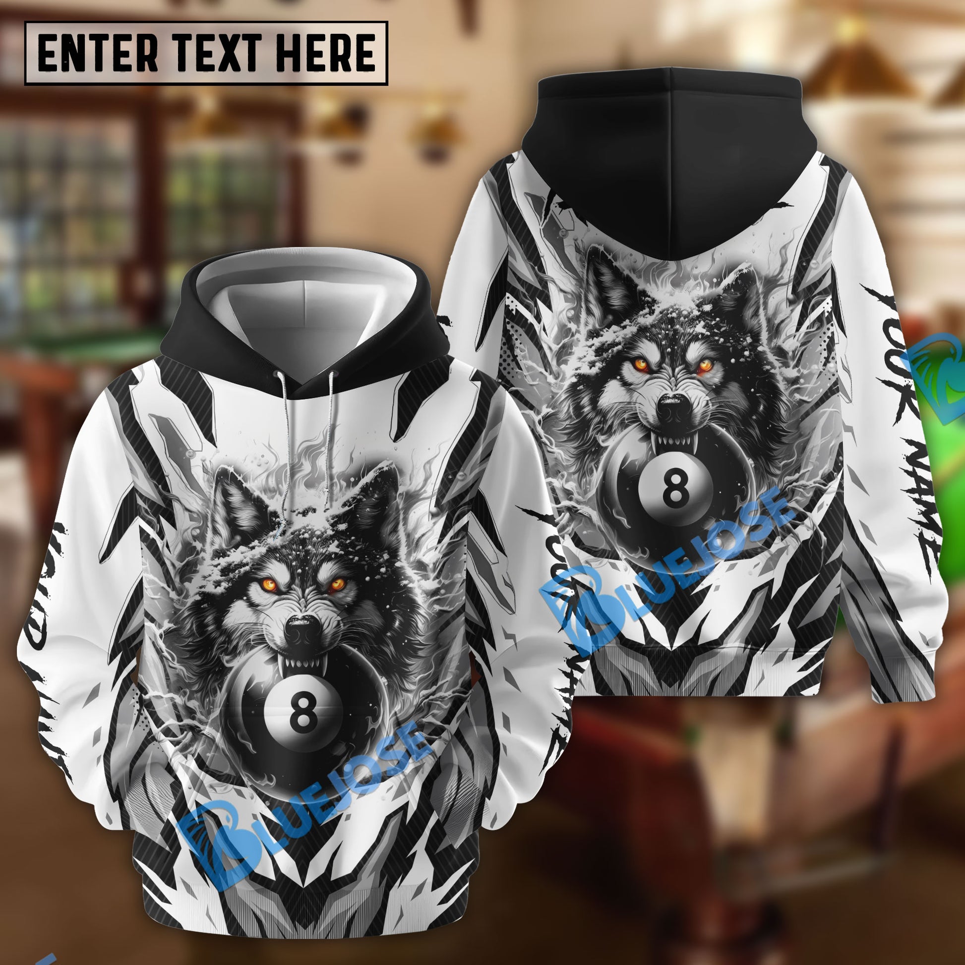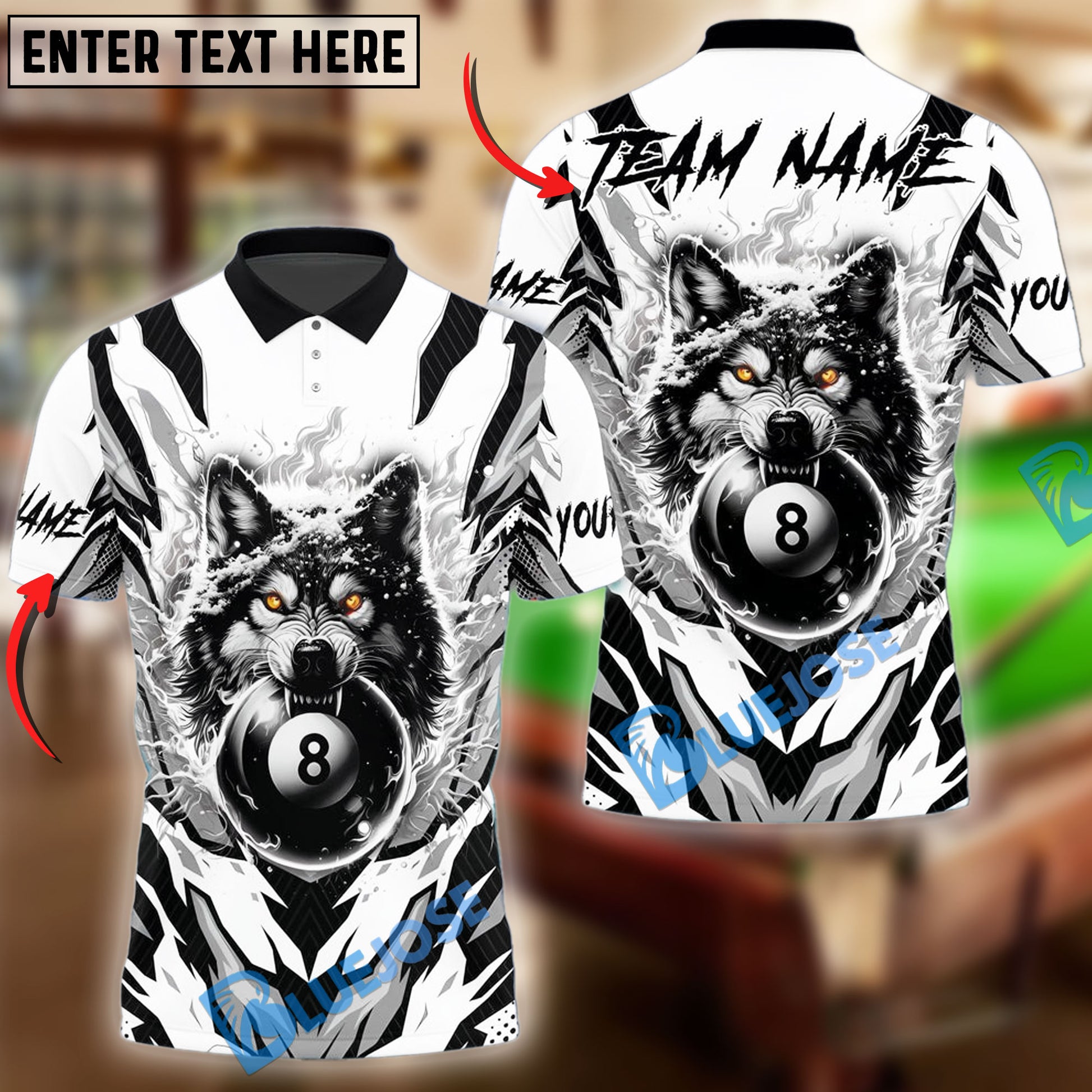 BlueJose Billiards Ball 8 Flame Wolf White Personalized Name, Team Name Unisex Shirt
