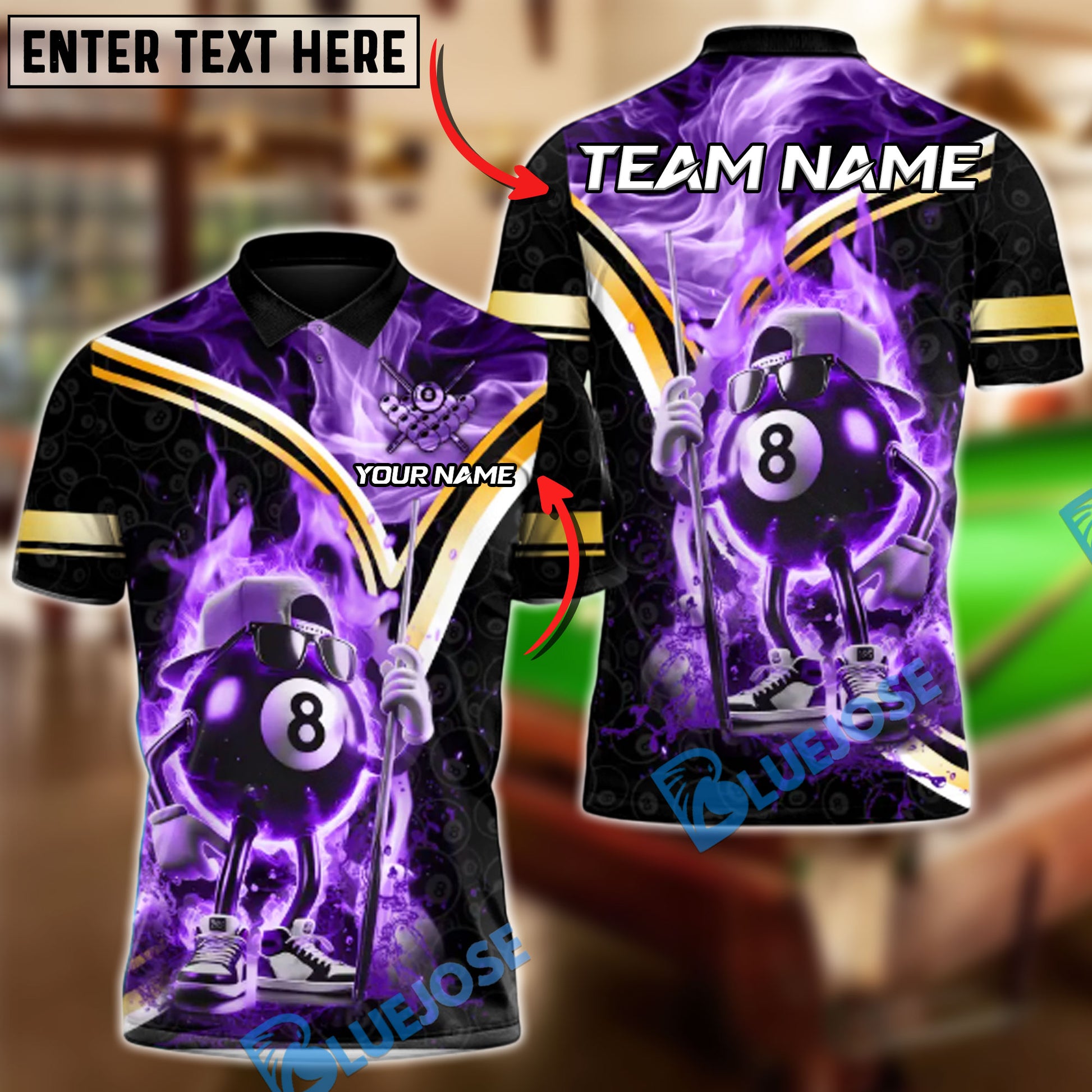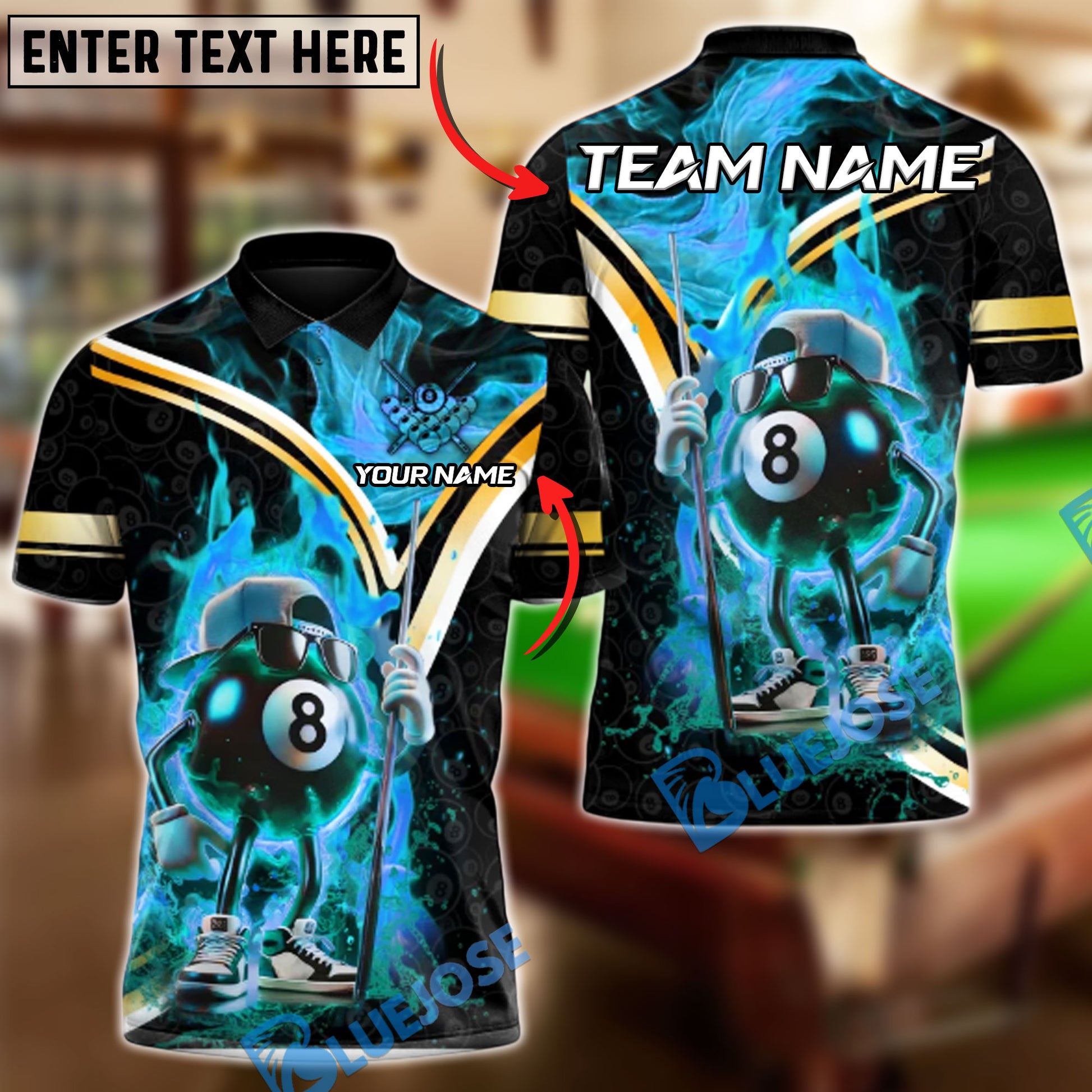 BlueJose Billiards Ball 8 Flaming Cool Personalized Name, Team Name Unisex Shirt (4 Colors)