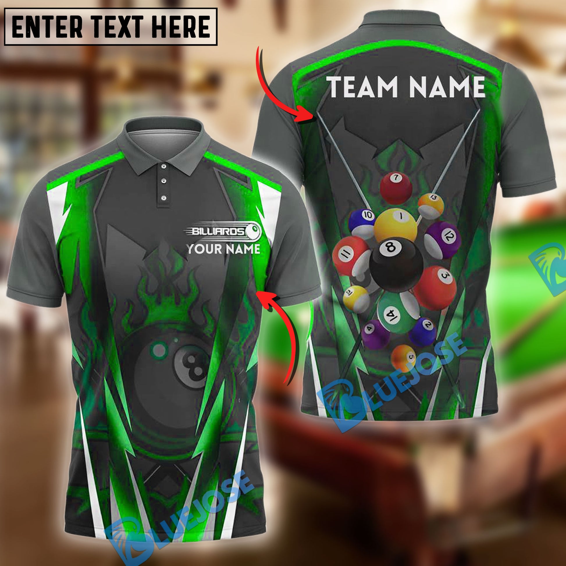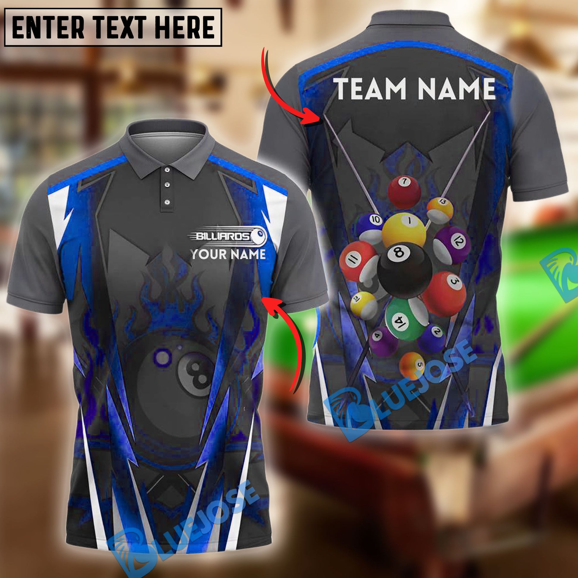 BlueJose Billiards Ball 8 Flaming Pool Balls Personalized Name, Team Name Unisex Shirt (4 Colors)