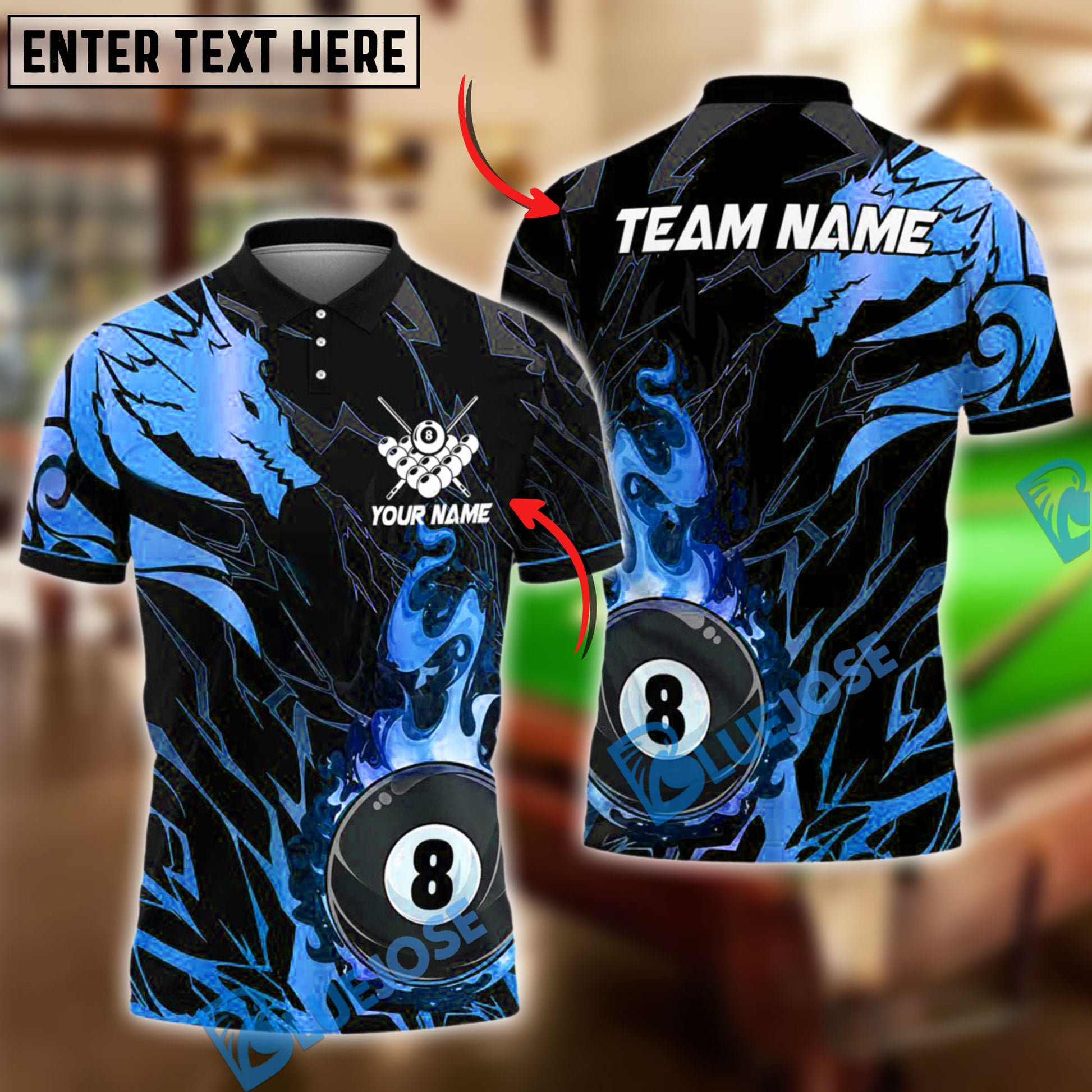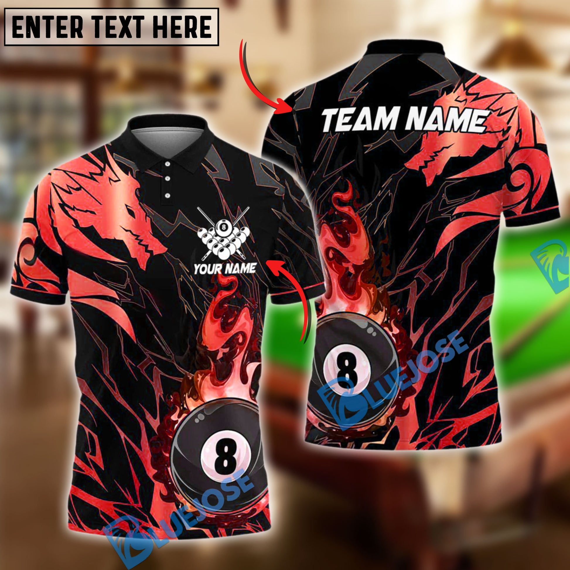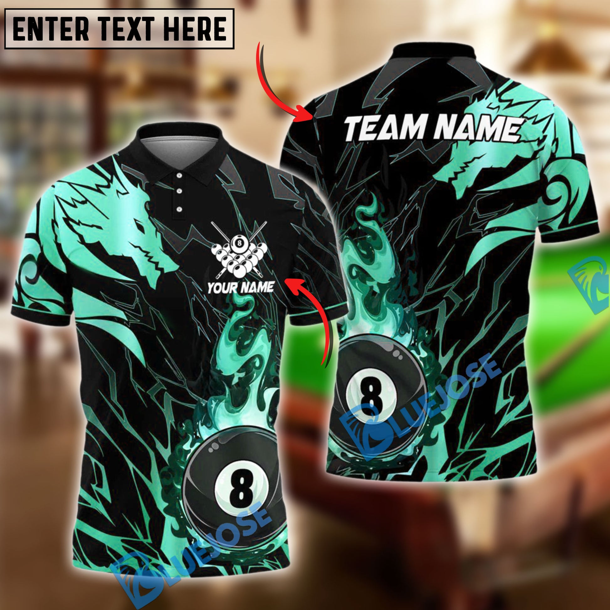 BlueJose Billiards Ball 8 Golden Dragon Personalized Name Shirt (4 Colors)
