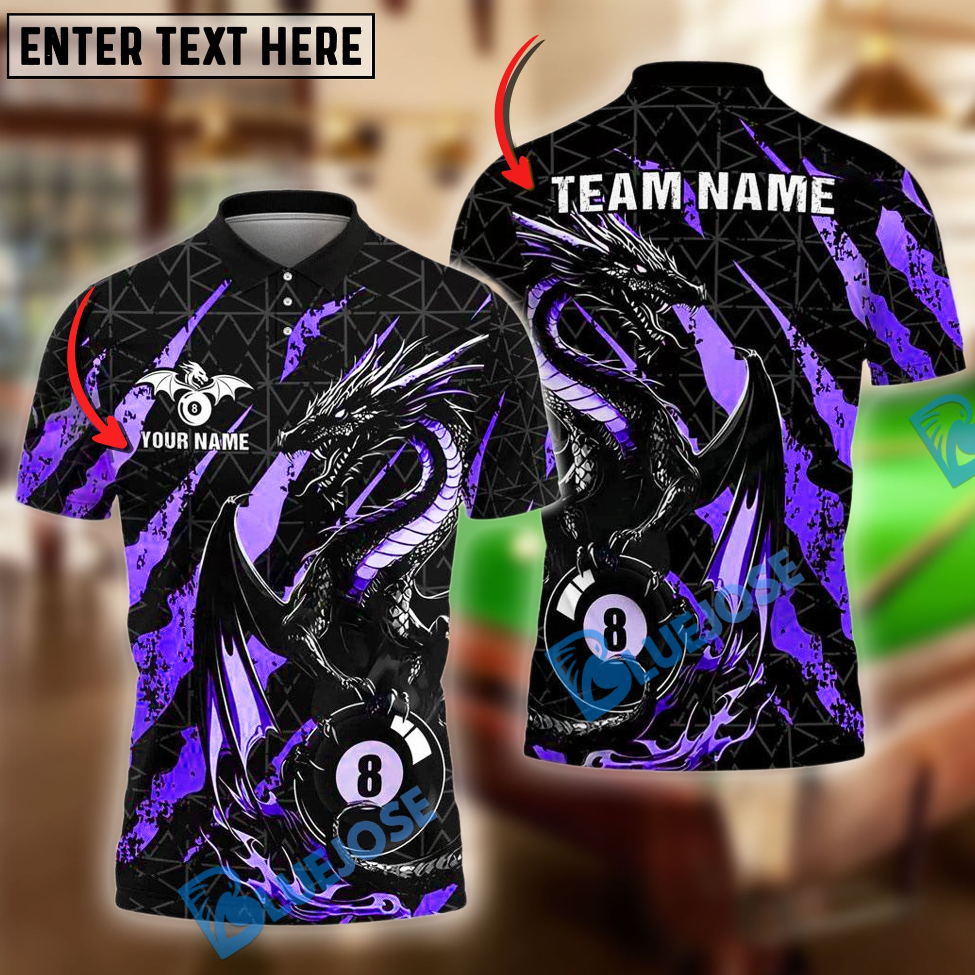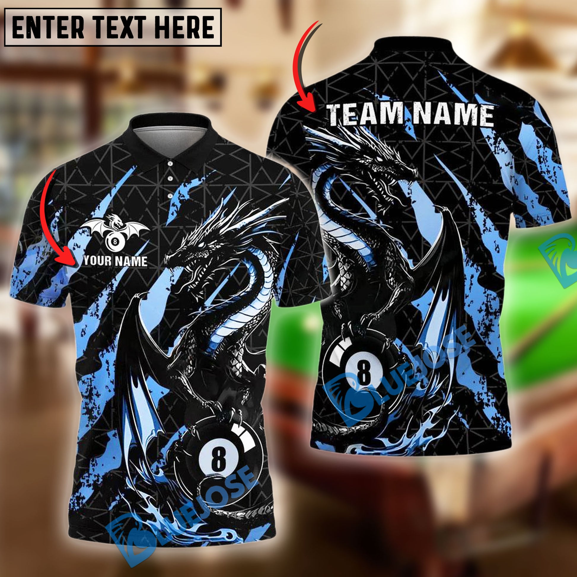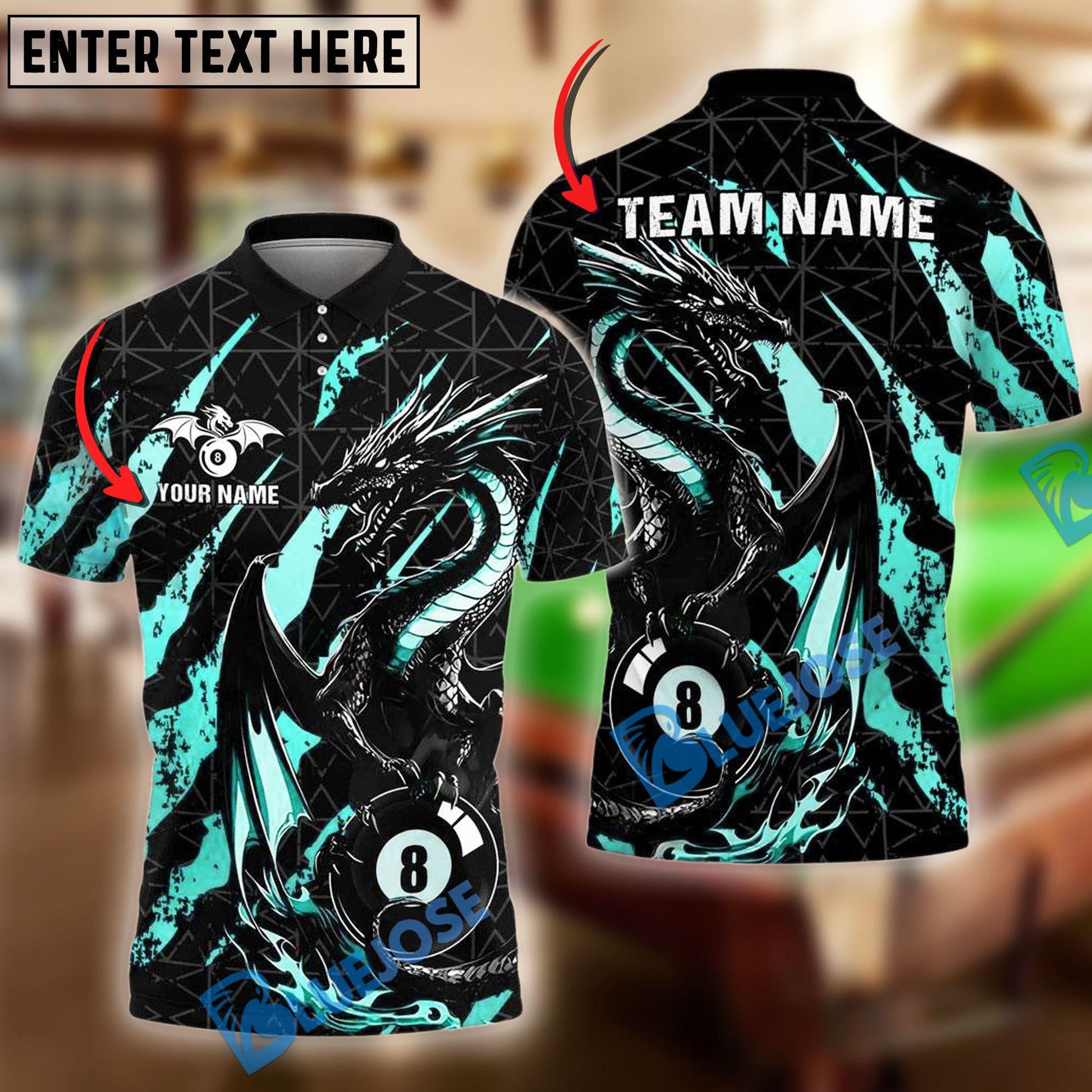 BlueJose Billiards Ball 8 Golden Fury Dragon Personalized Name Shirt (4 Colors)