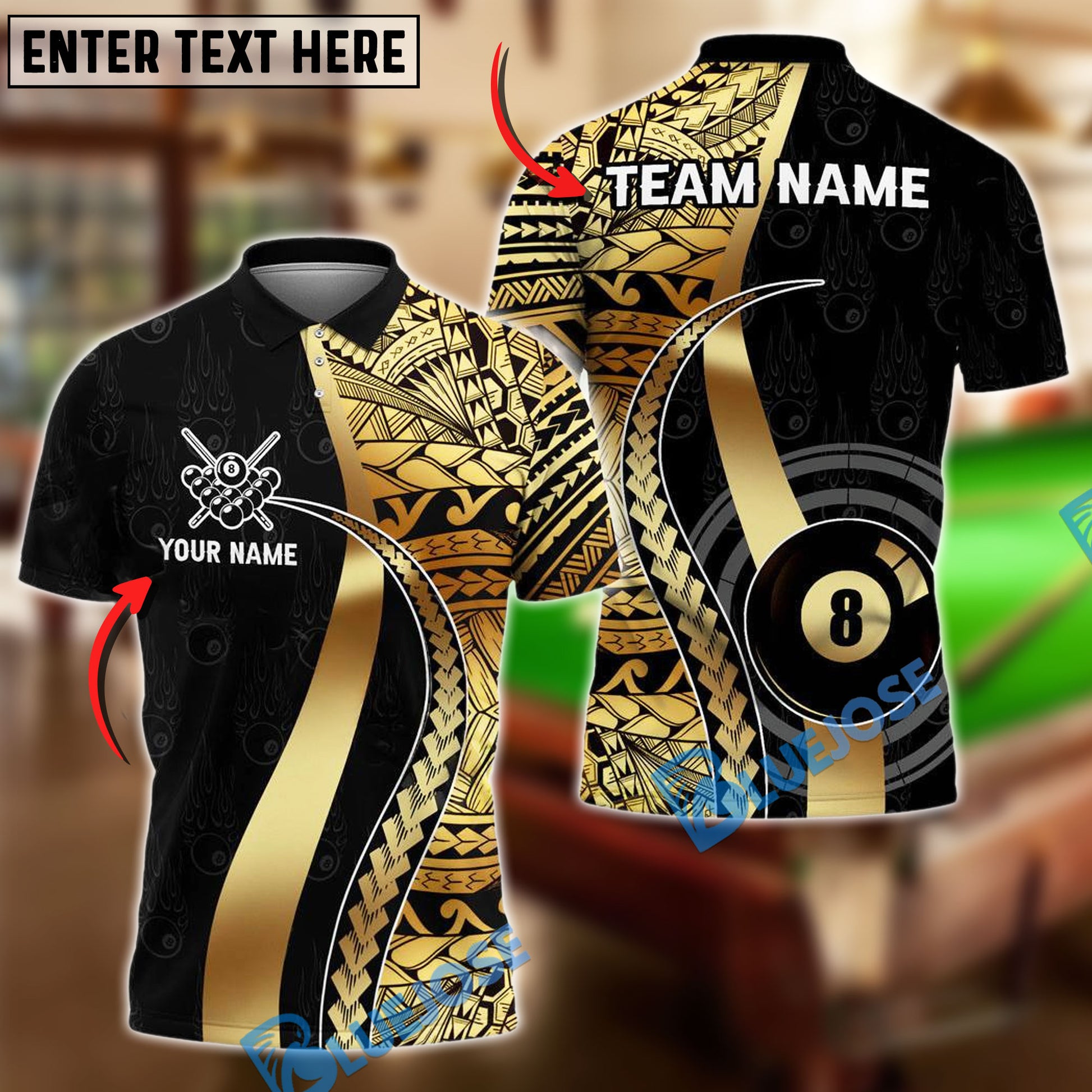 BlueJose Billiards Ball 8 Golden Tribal Personalized Name Shirt (4 Colors)