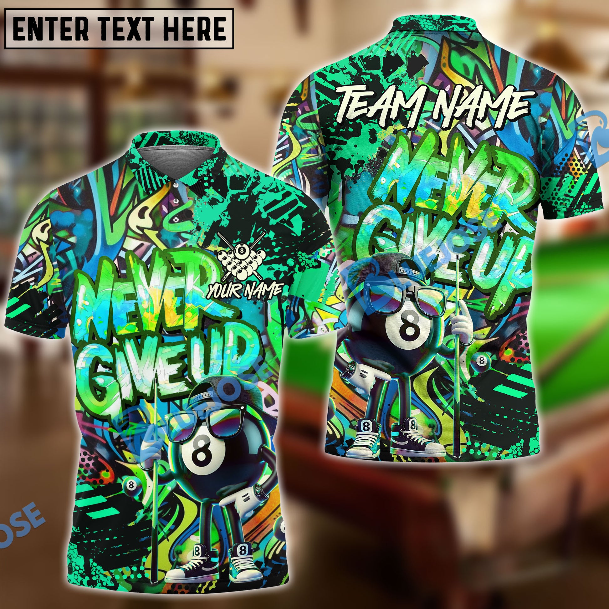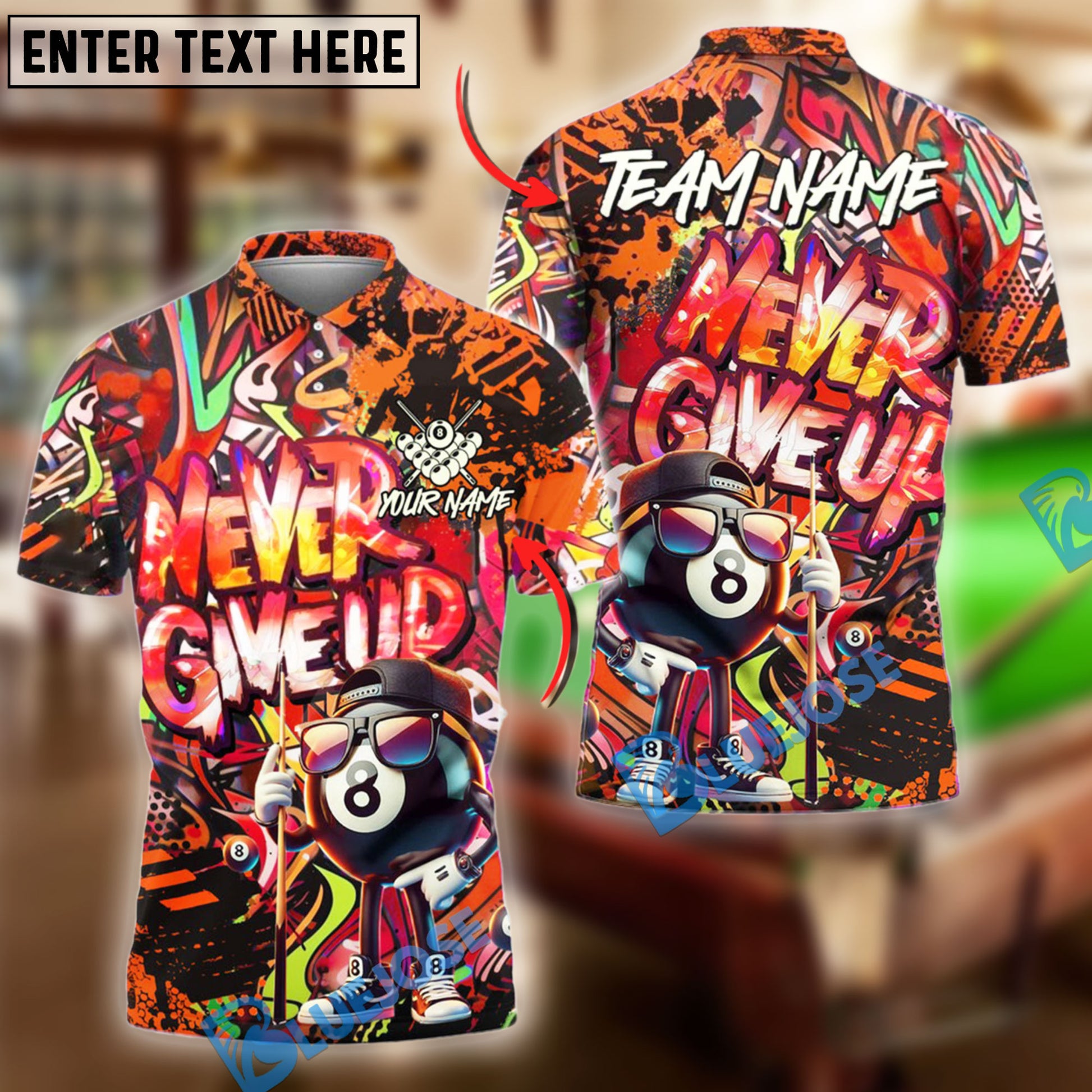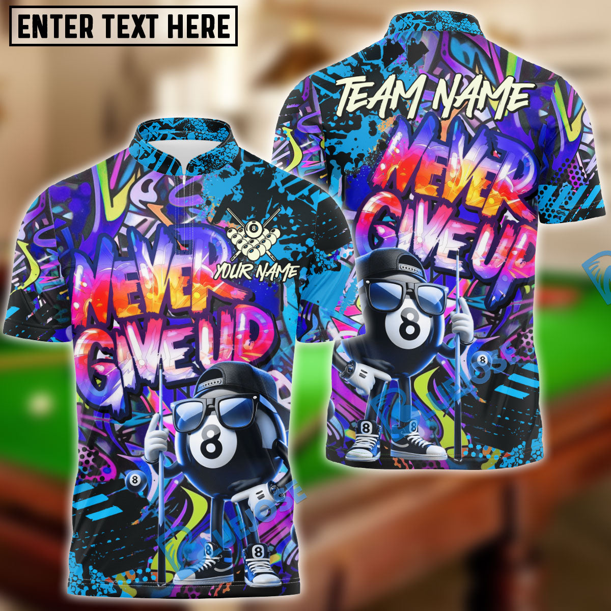 BlueJose Billiards Ball 8 Graffiti Pattern Never Give Up Personalized Name & Team Name Shirt (4 Colors)