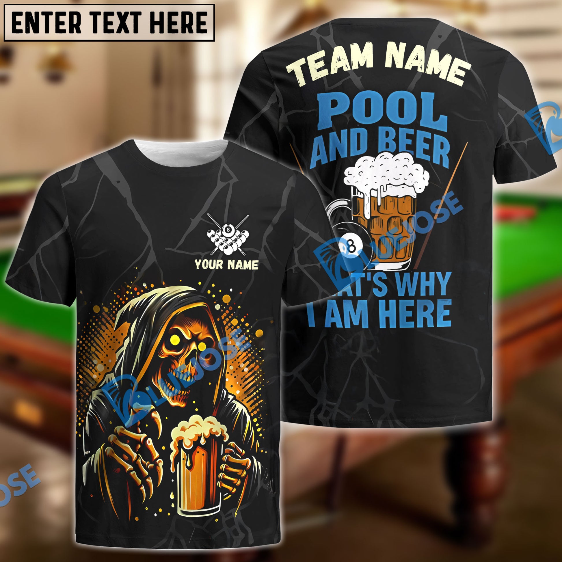 BlueJose Billiards Ball 8 Grim Reaper Beer Customized Name, Team Name 3D Shirt