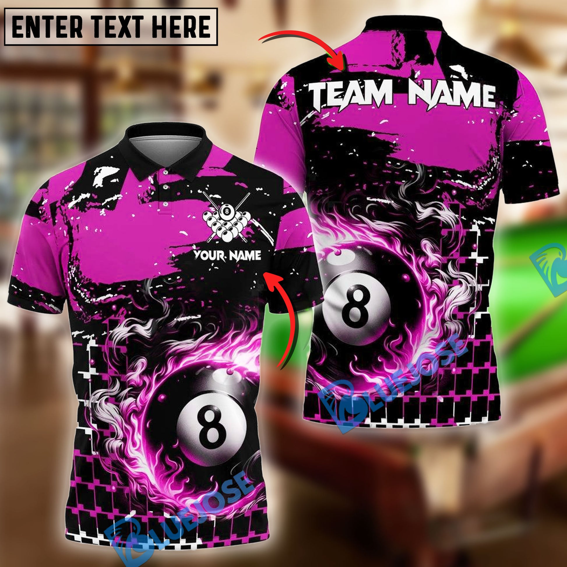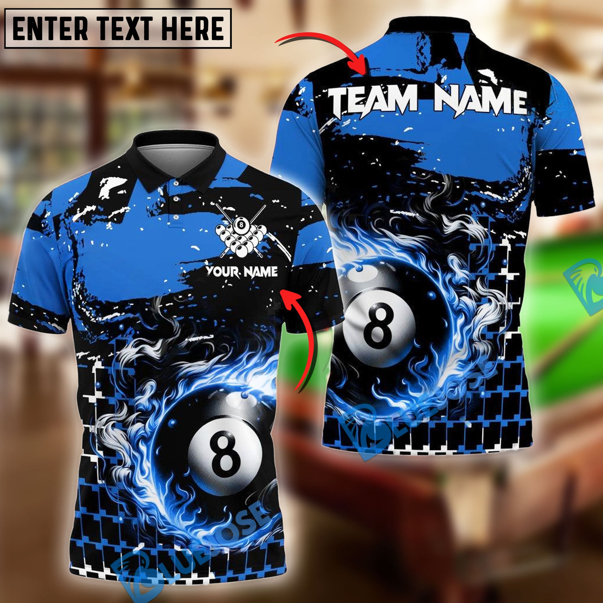 BlueJose Billiards Ball 8 Grunge And Abstract Pattern Personalized Name, Team Name Unisex Shirt (4 Colors)