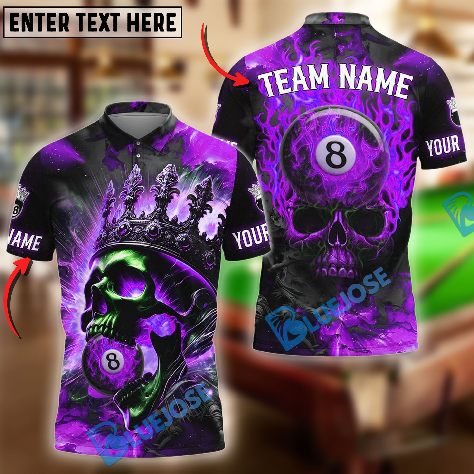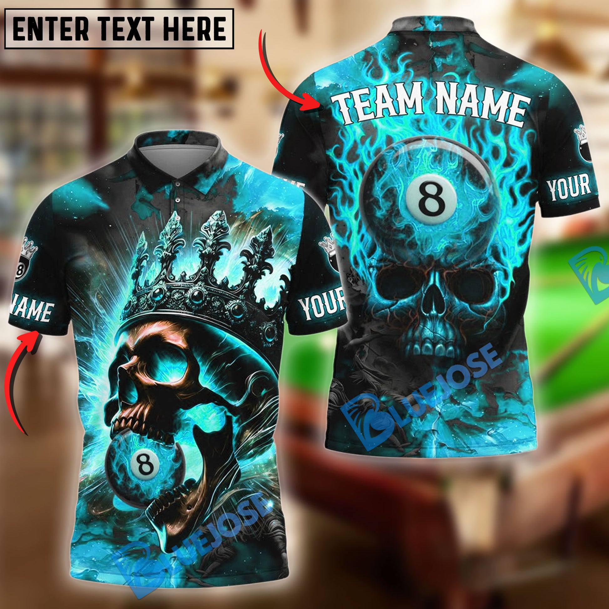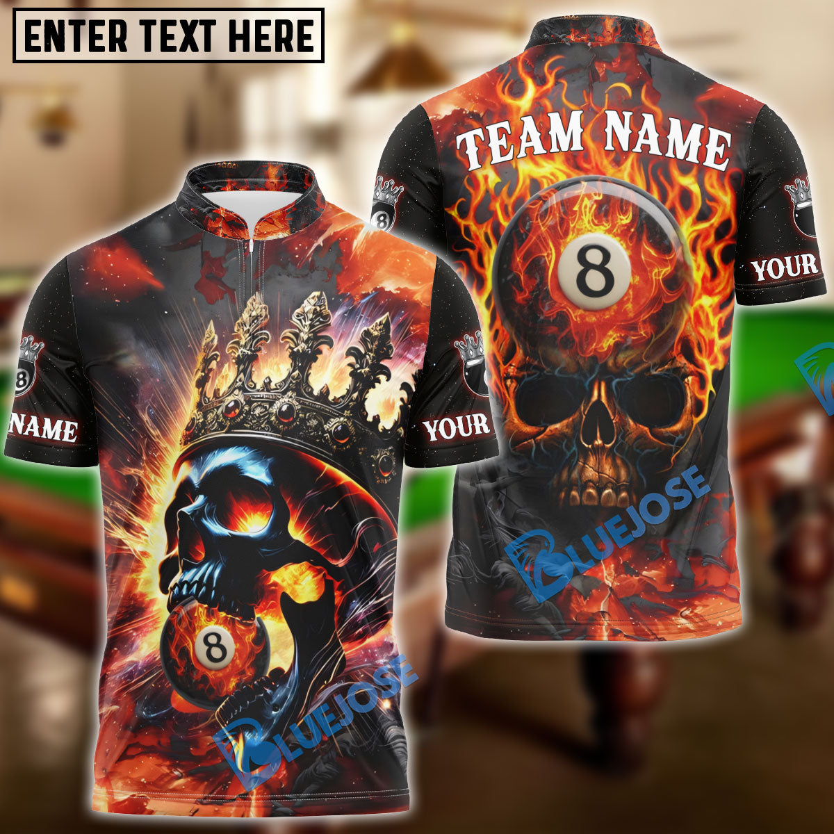 BlueJose Billiards Ball 8 Inferno Skull King Personalized Name Shirt (4 Colors)