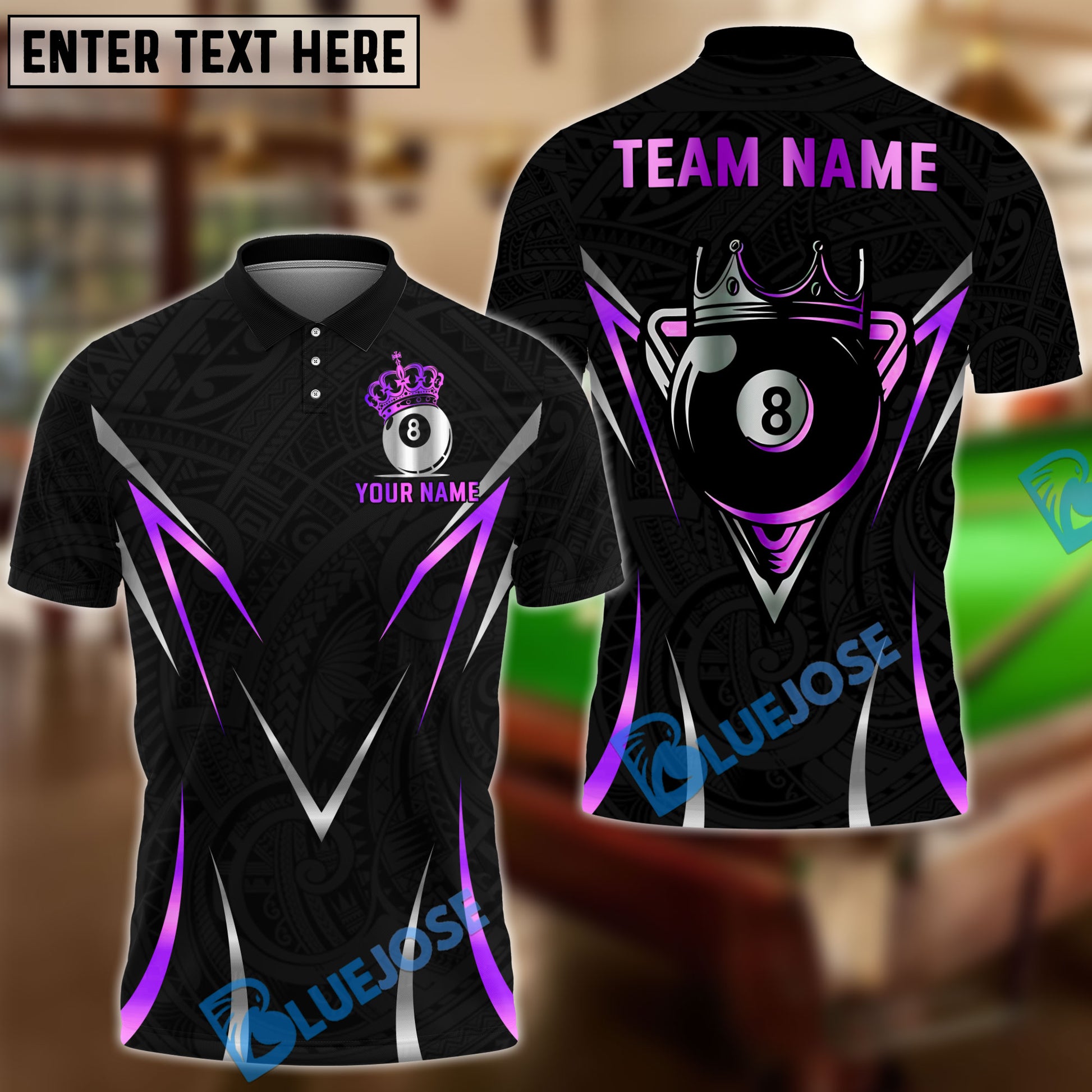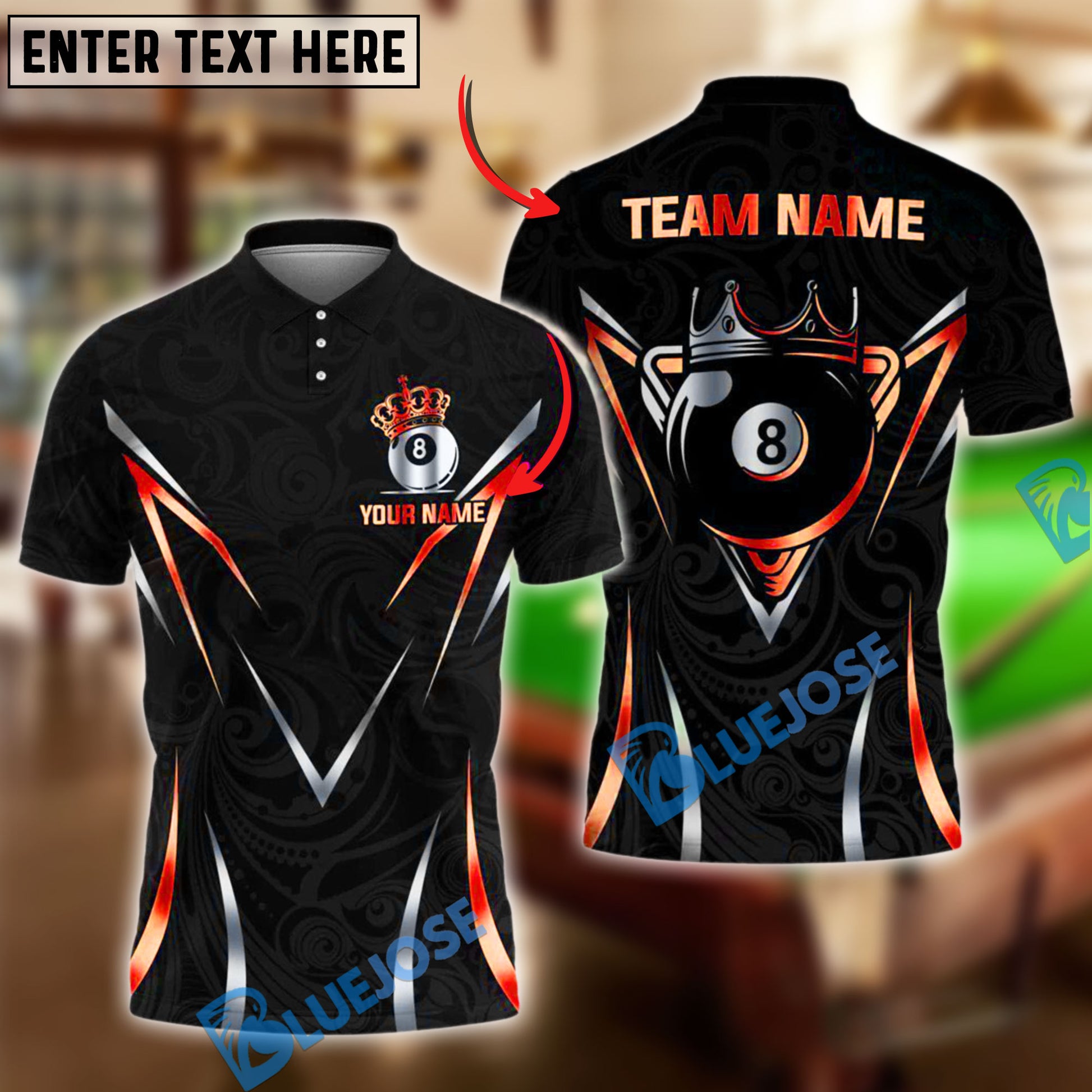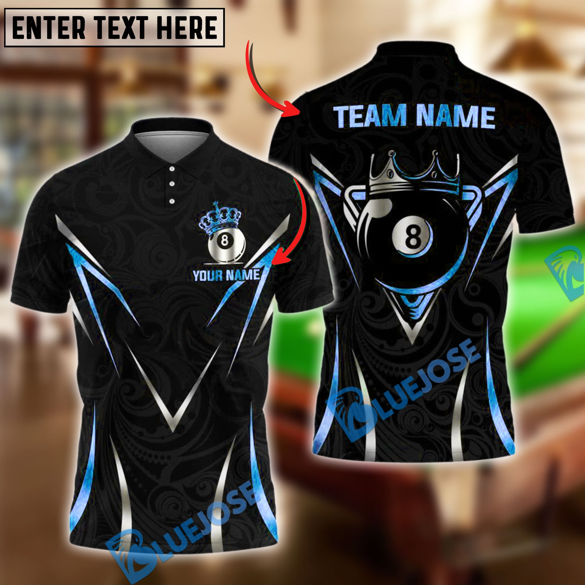 BlueJose Billiards Ball 8 King Crown Design Personalized Name, Team Name Shirt (6 Colors)