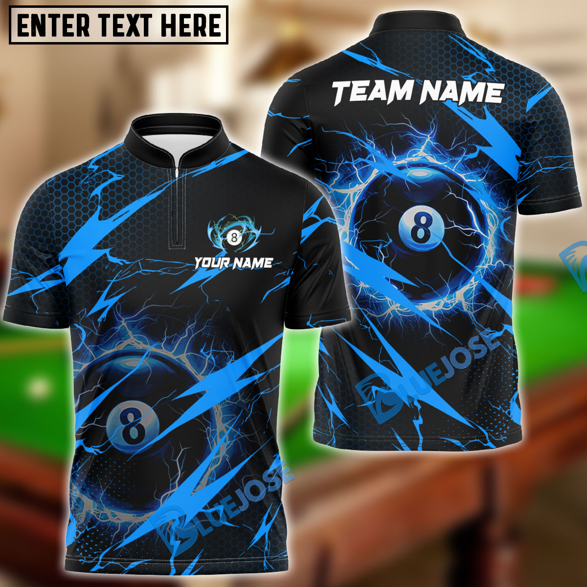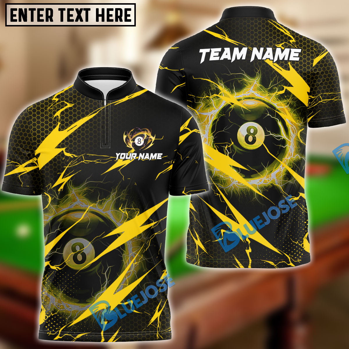 BlueJose Billiards Ball 8 Lightning Hexagon Pattern Personalized Name & Team Name Shirt (4 Colors)
