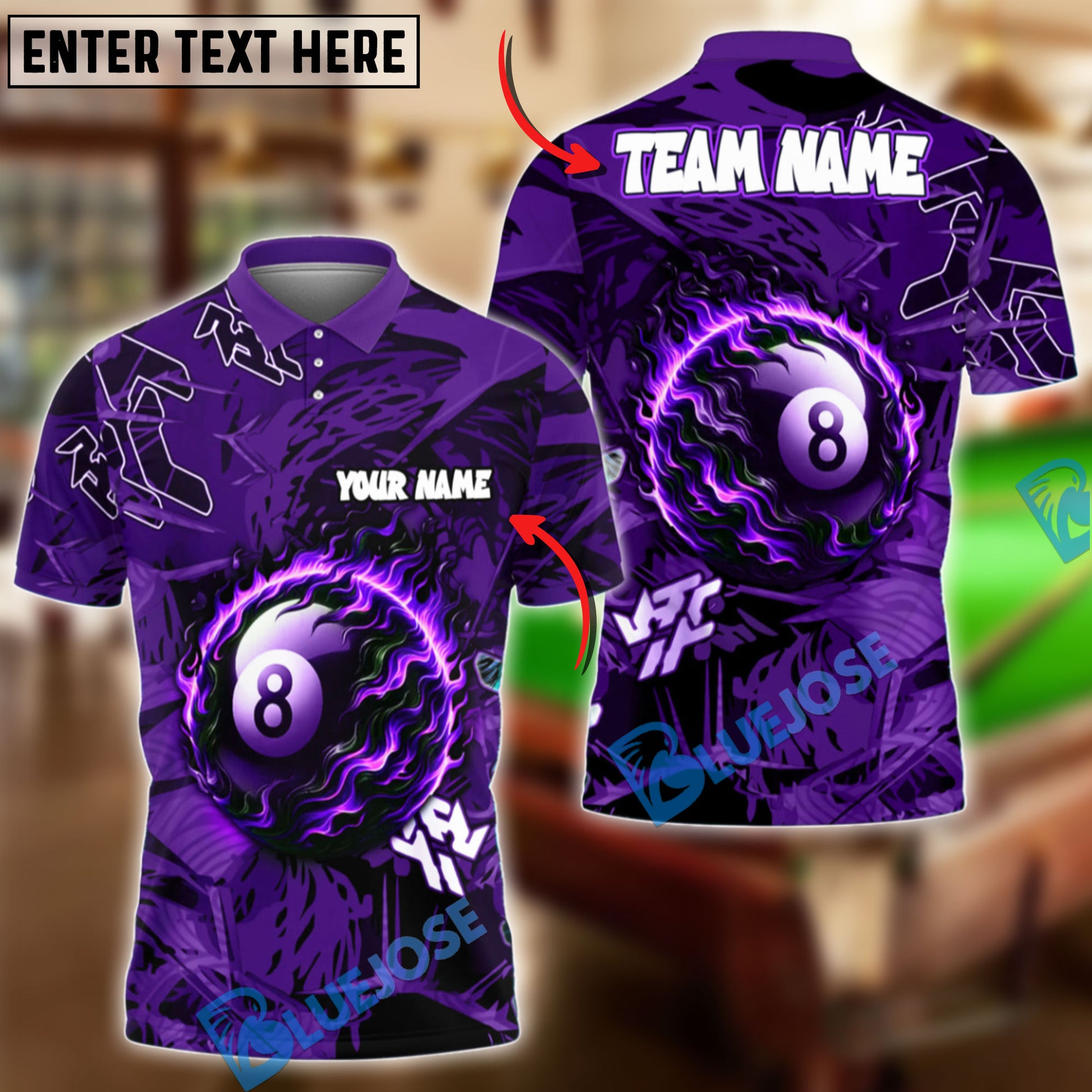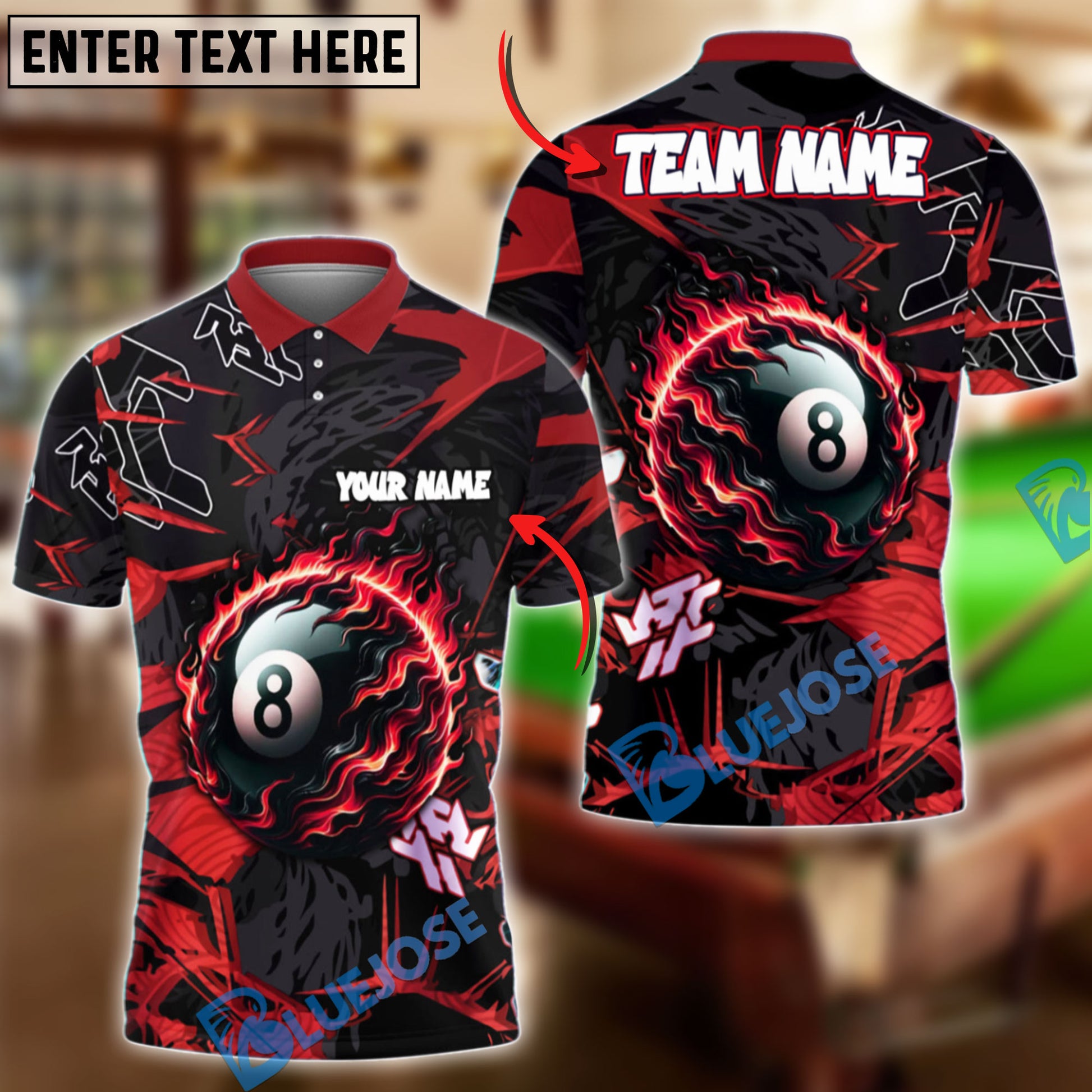BlueJose Billiards Ball 8 Pool Flame Personalized Name & Team Name Shirt (4 Colors)