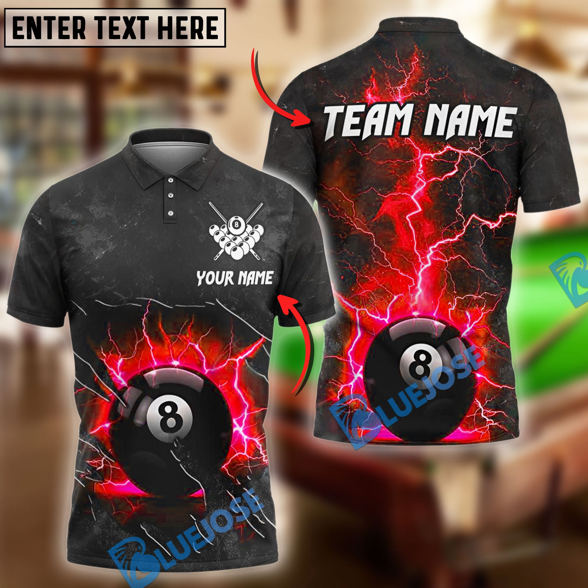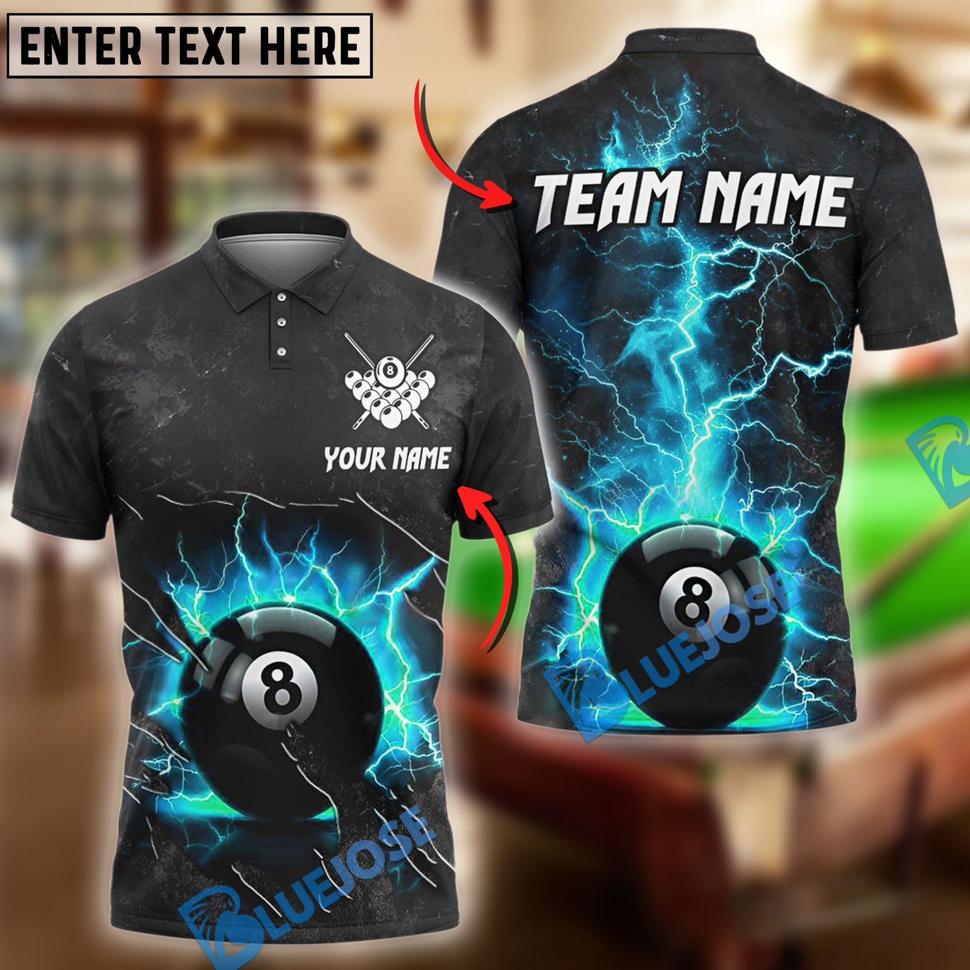 BlueJose Billiards Ball 8 Pool Thunder Lightning Personalized Name, Team Name Unisex Shirt (4 Colors)