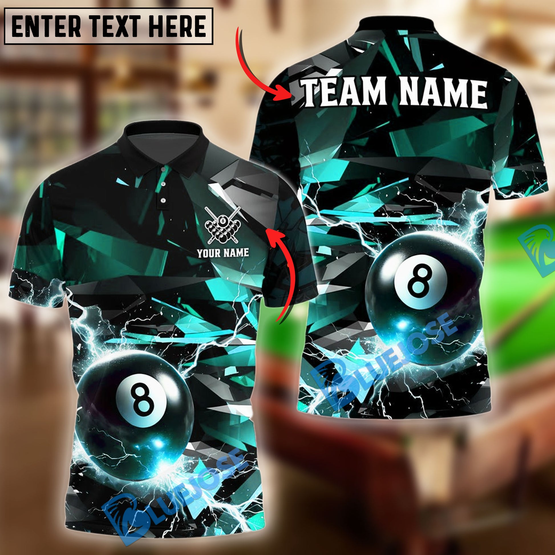 BlueJose Billiards Ball 8 Thunder Glass Personalized Name Shirt (4 Colors)