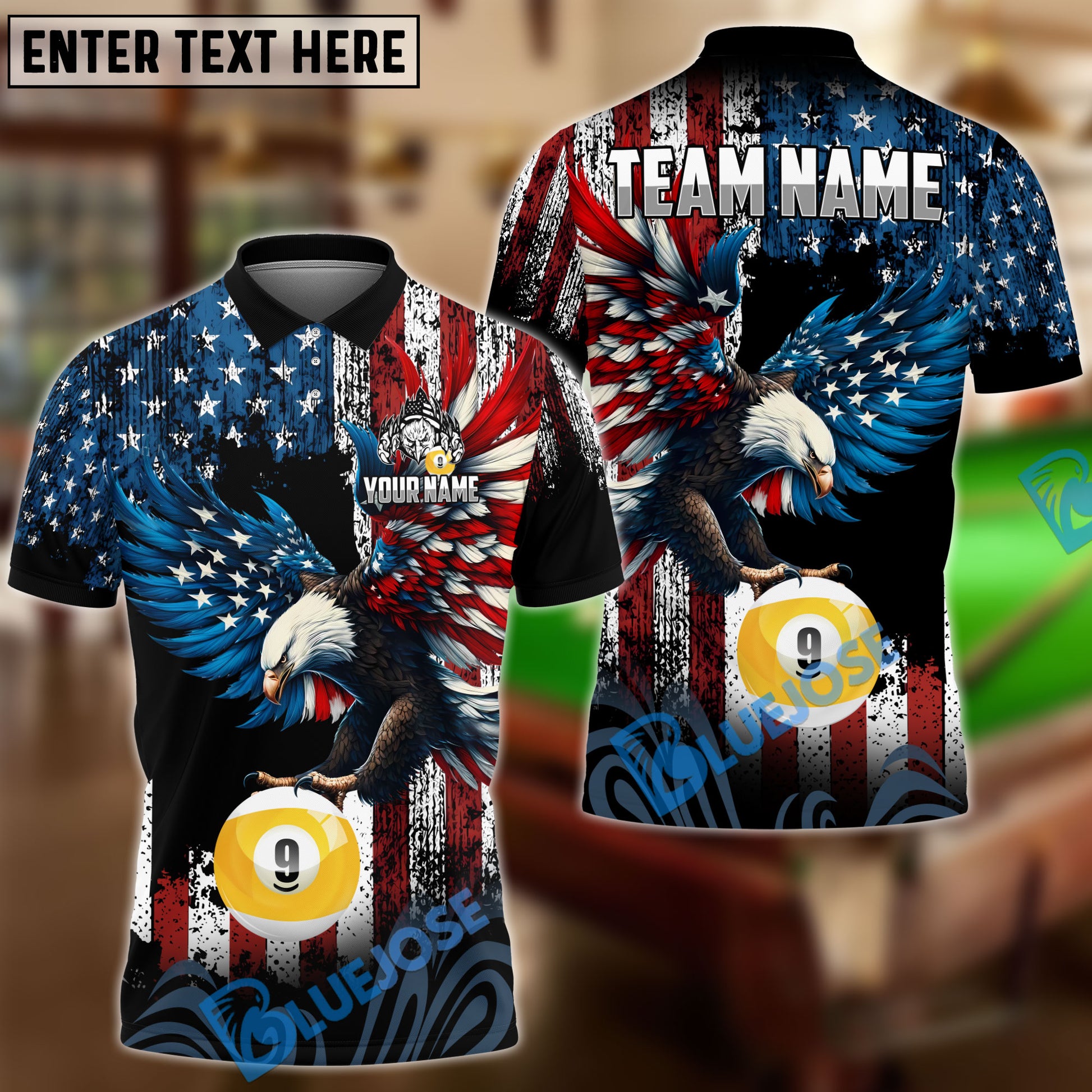 BlueJose Billiards Ball 9 American Eagle Customized Name, Team Name 3D Shirt