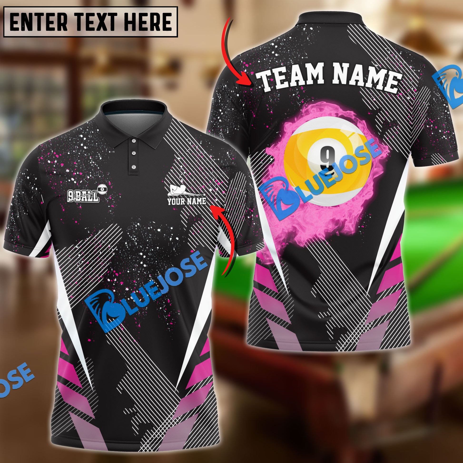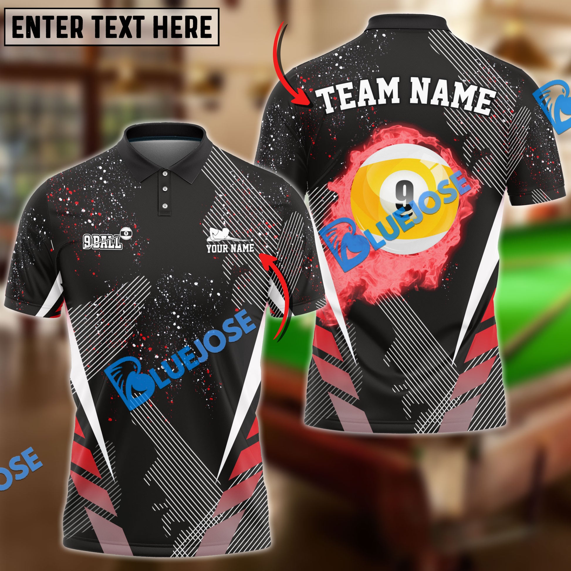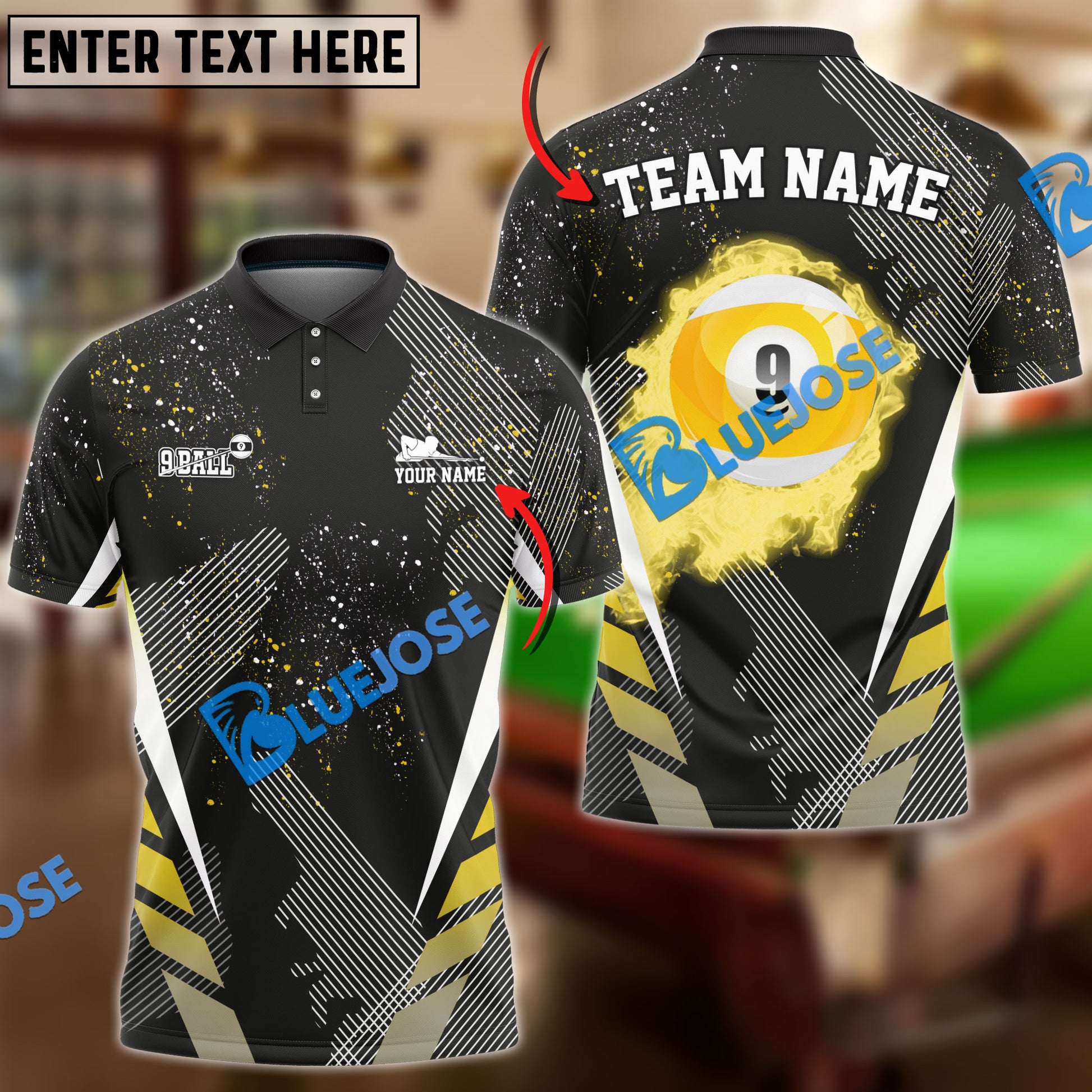 BlueJose Billiards Ball 9 Dream Tournament Personalized Name, Team Name Shirt (6 Colors)