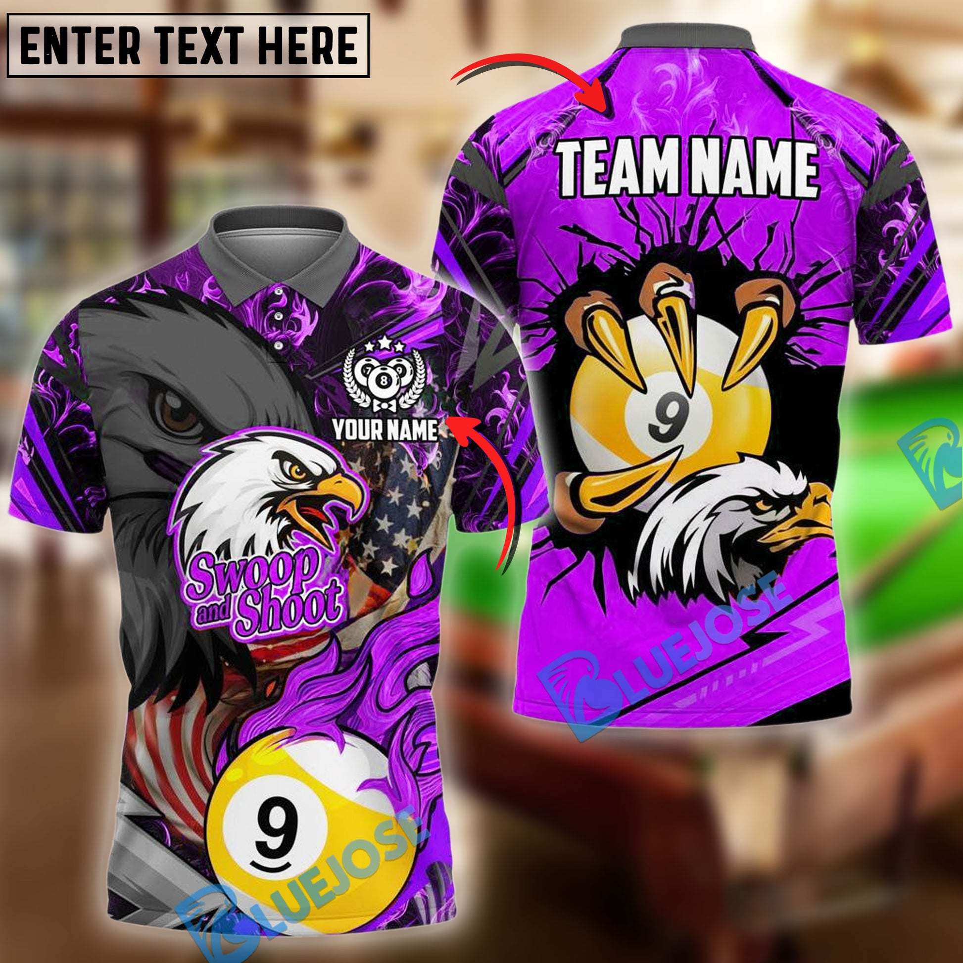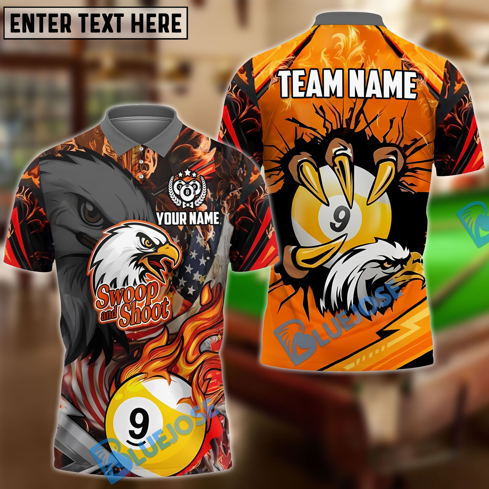 BlueJose Billiards Ball 9 Eagle Claw Firestorm American Flag Personalized Name Shirt (4 Colors)