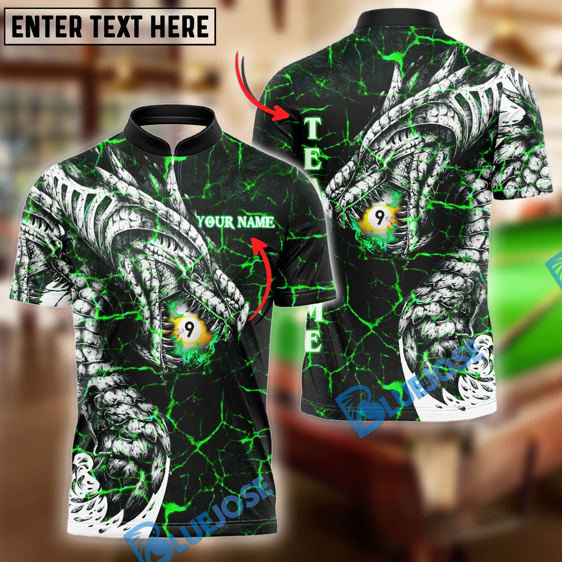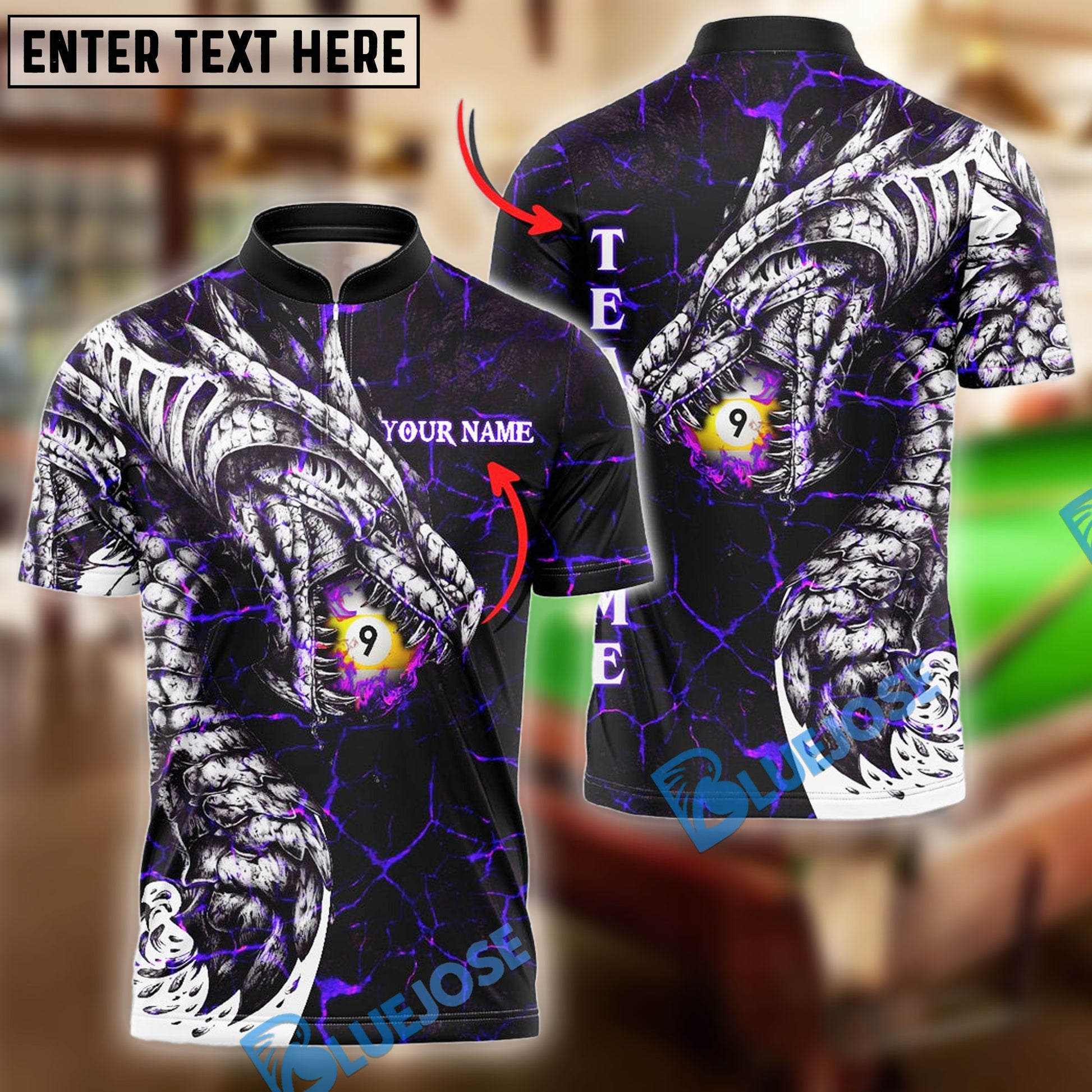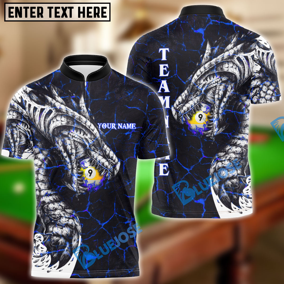 BlueJose Billiards Ball 9 Fire Dragon Personalized Name, Team Name Unisex Shirt ( 3 Colors )