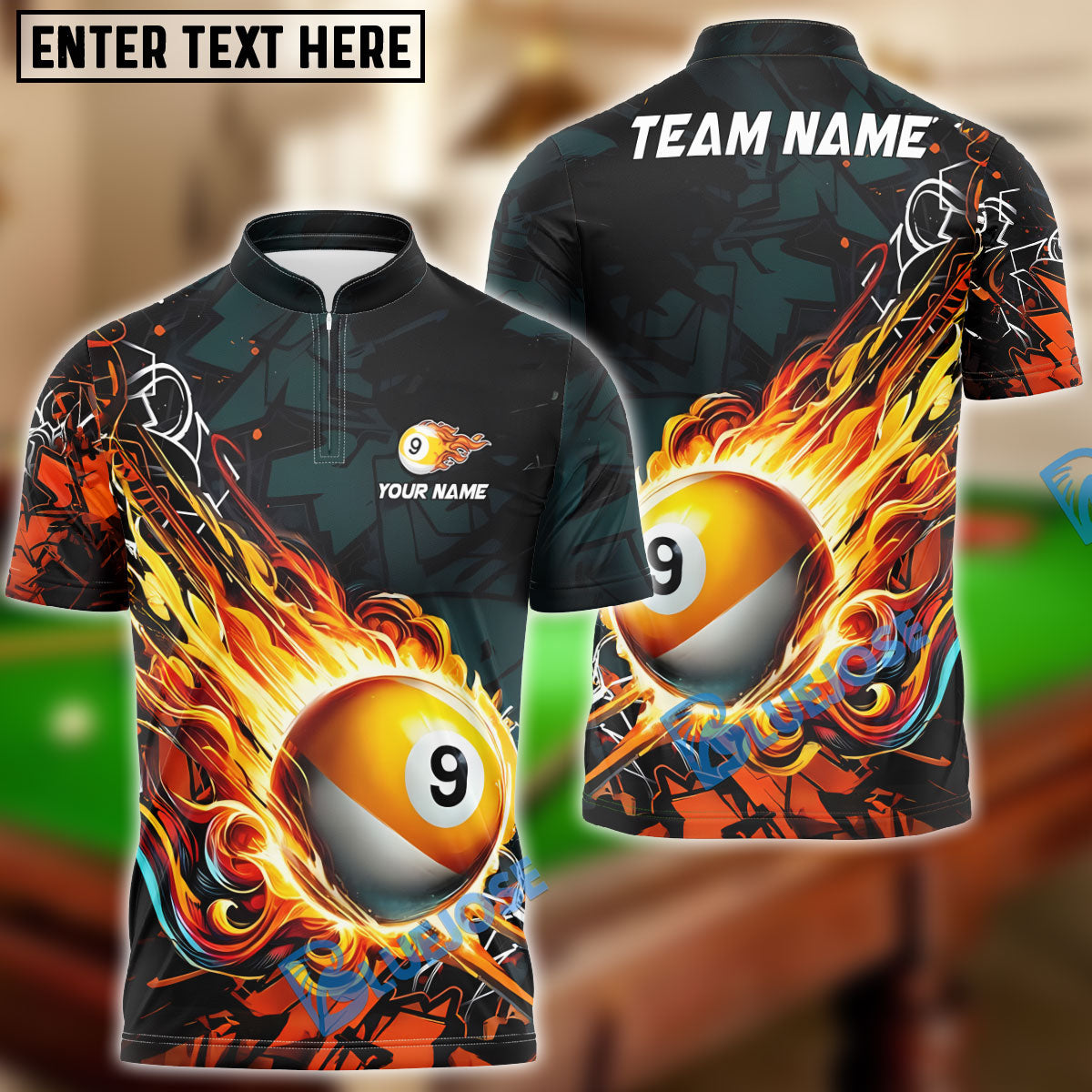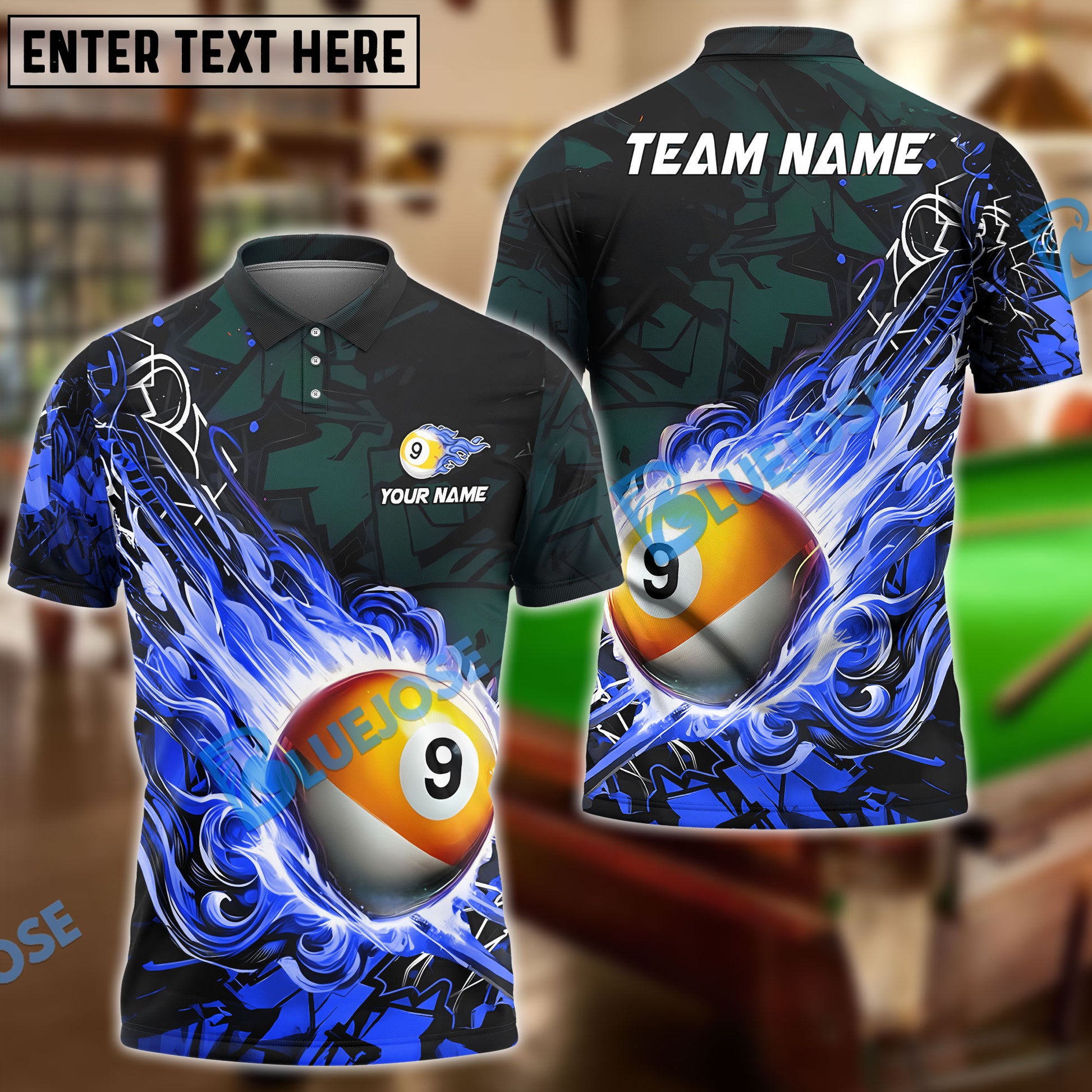 BlueJose Billiards Ball 9 Fireball Magic Personalized Name Shirt (4 Colors)