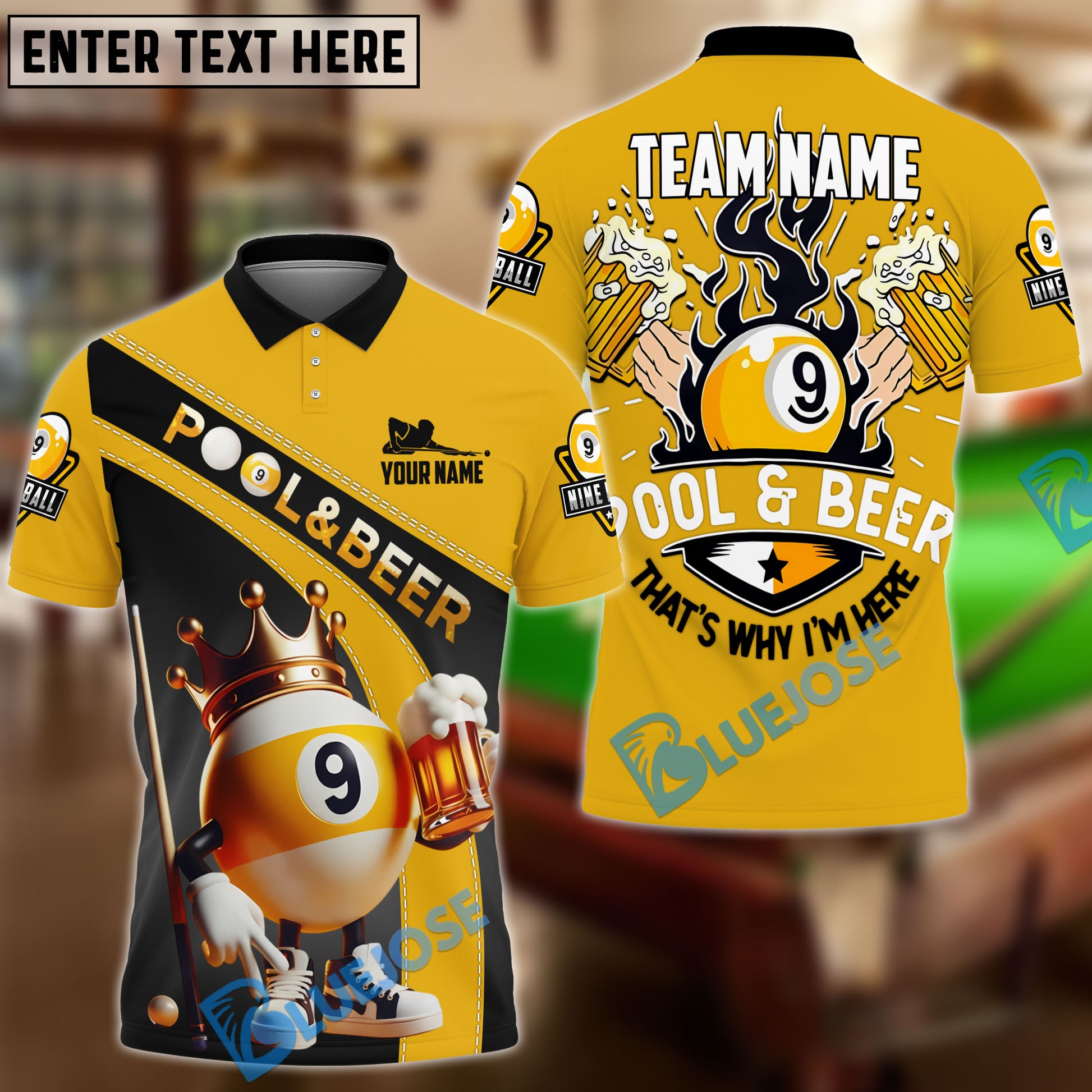 BlueJose Billiards Ball 9 Funny Pool And Beer Customized Name, Team Name 3D Shirt