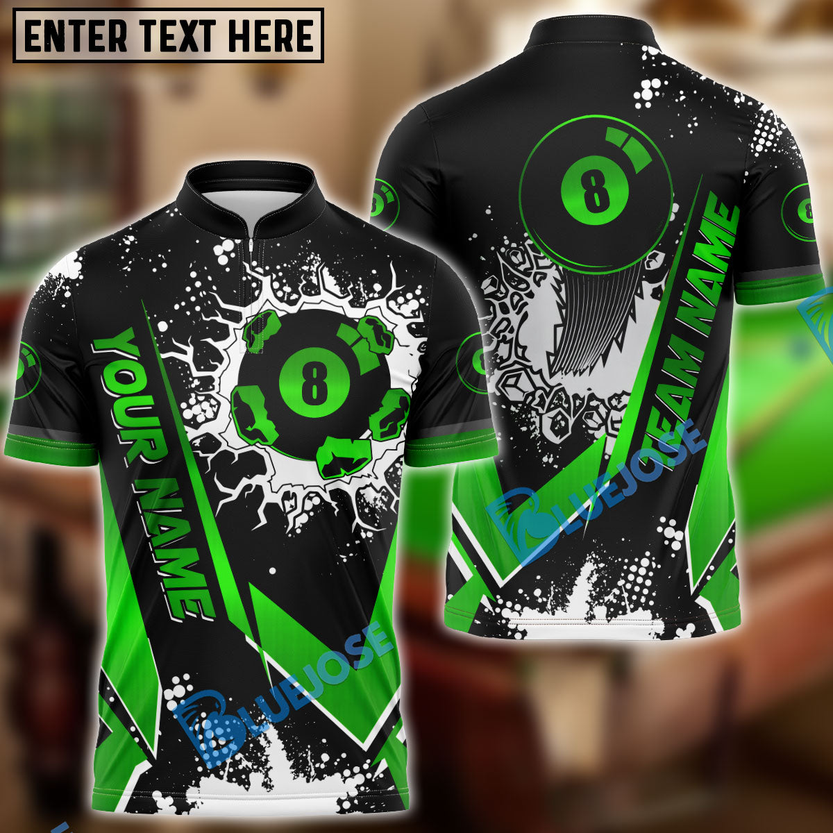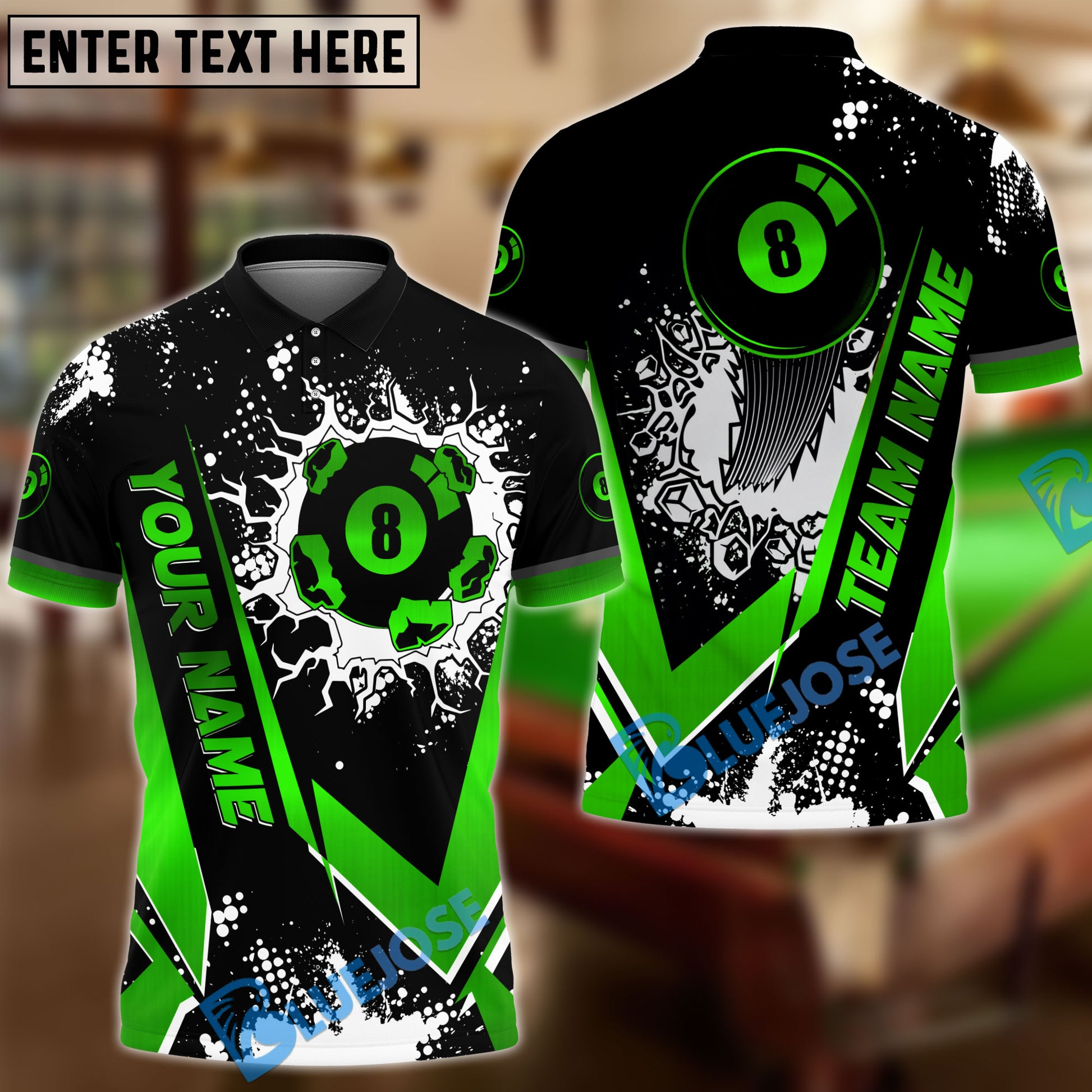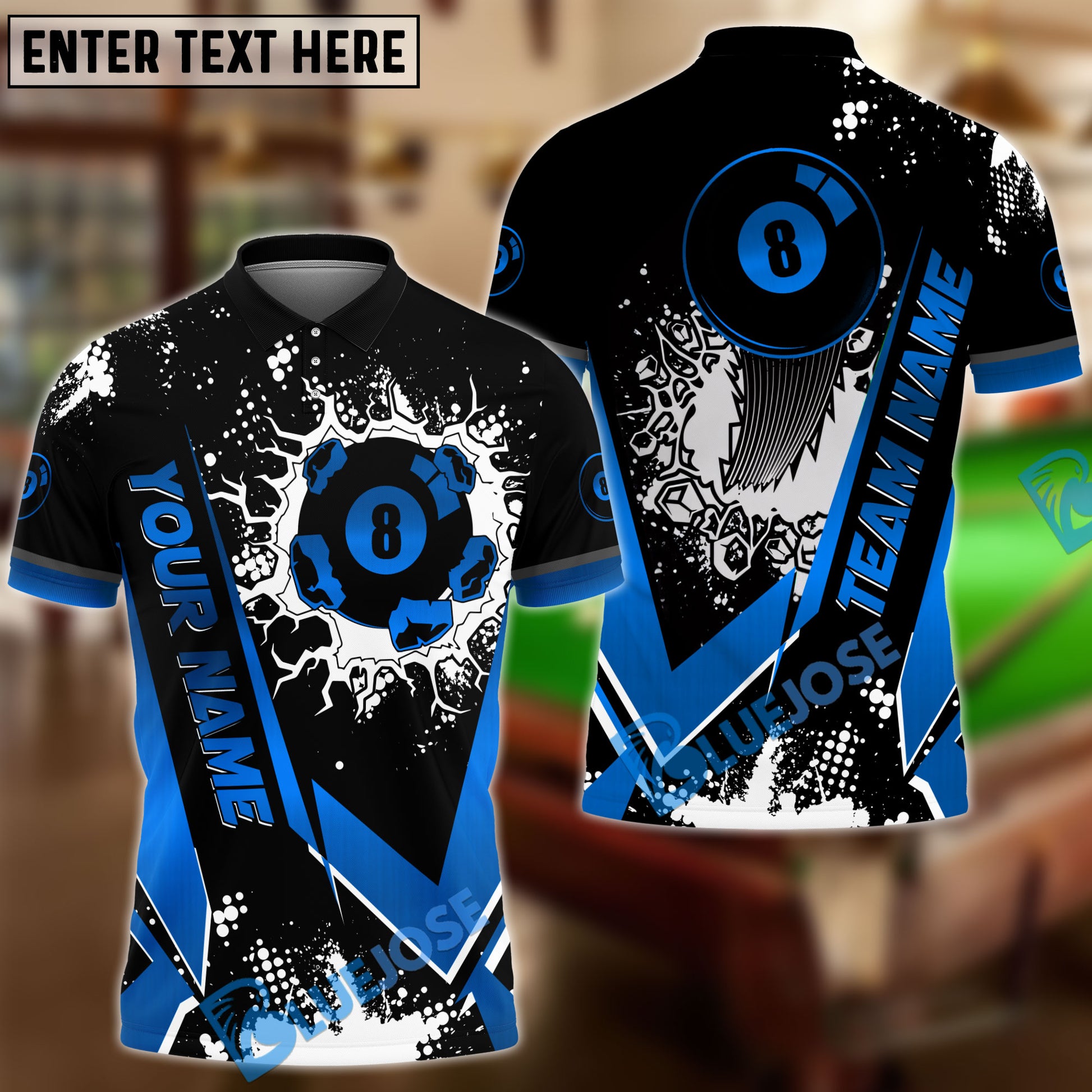 BlueJose Billiards Black Gold 8 Ball Design Personalized Name Shirt (4 Colors)