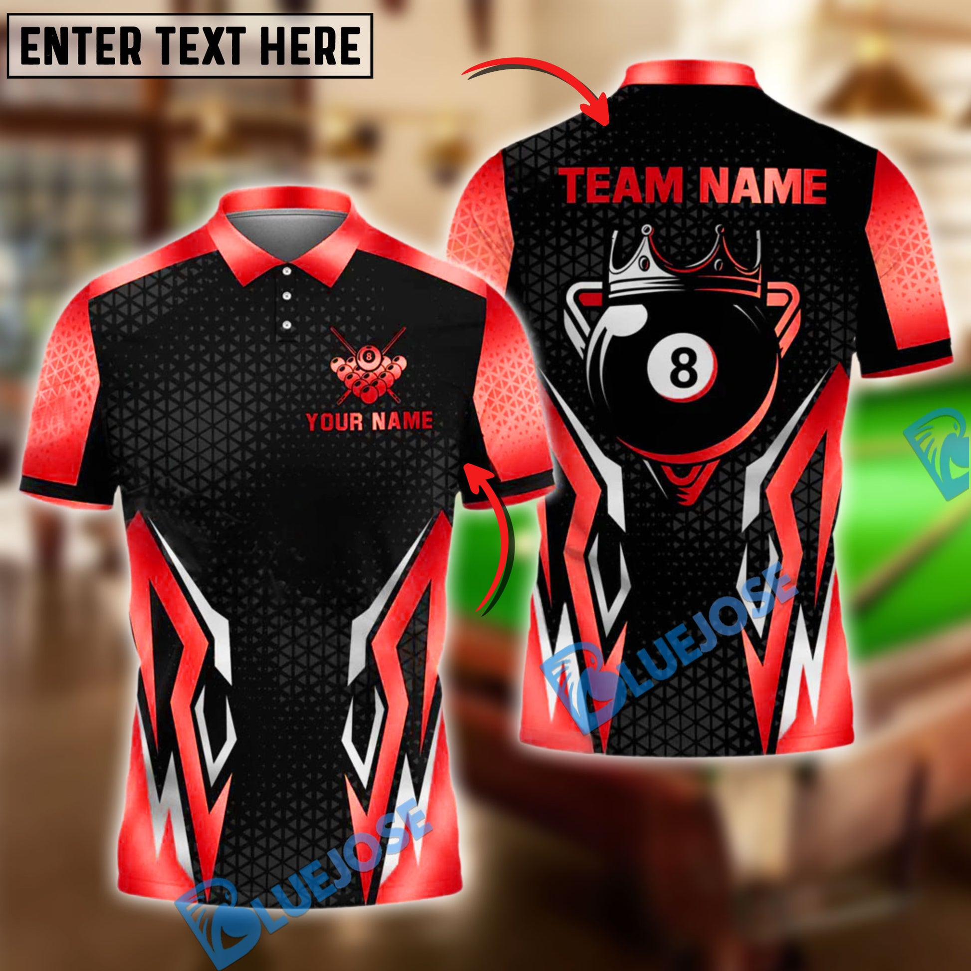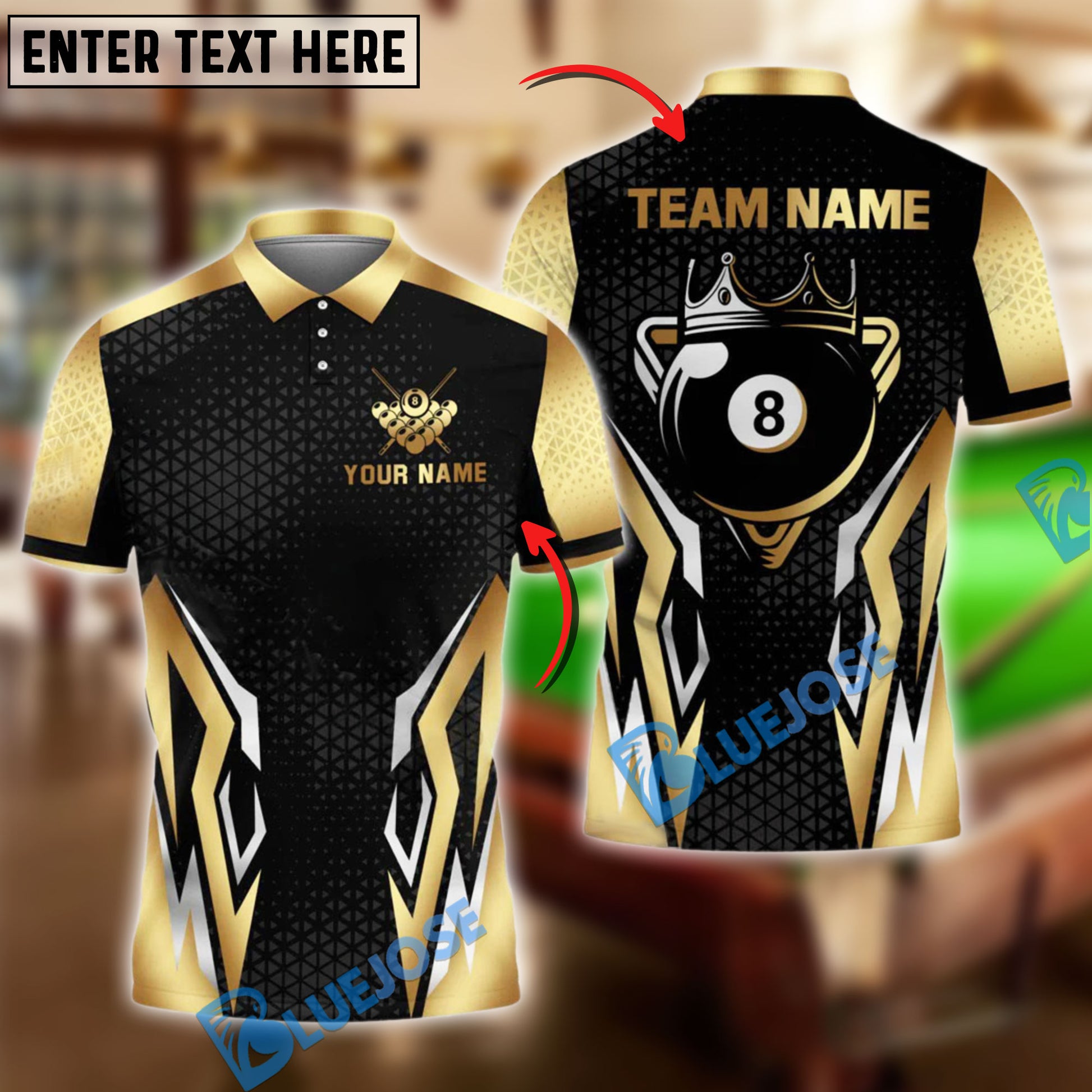 BlueJose Billiards Crown 8 Ball Design Personalized Name Shirt (4 Colors)