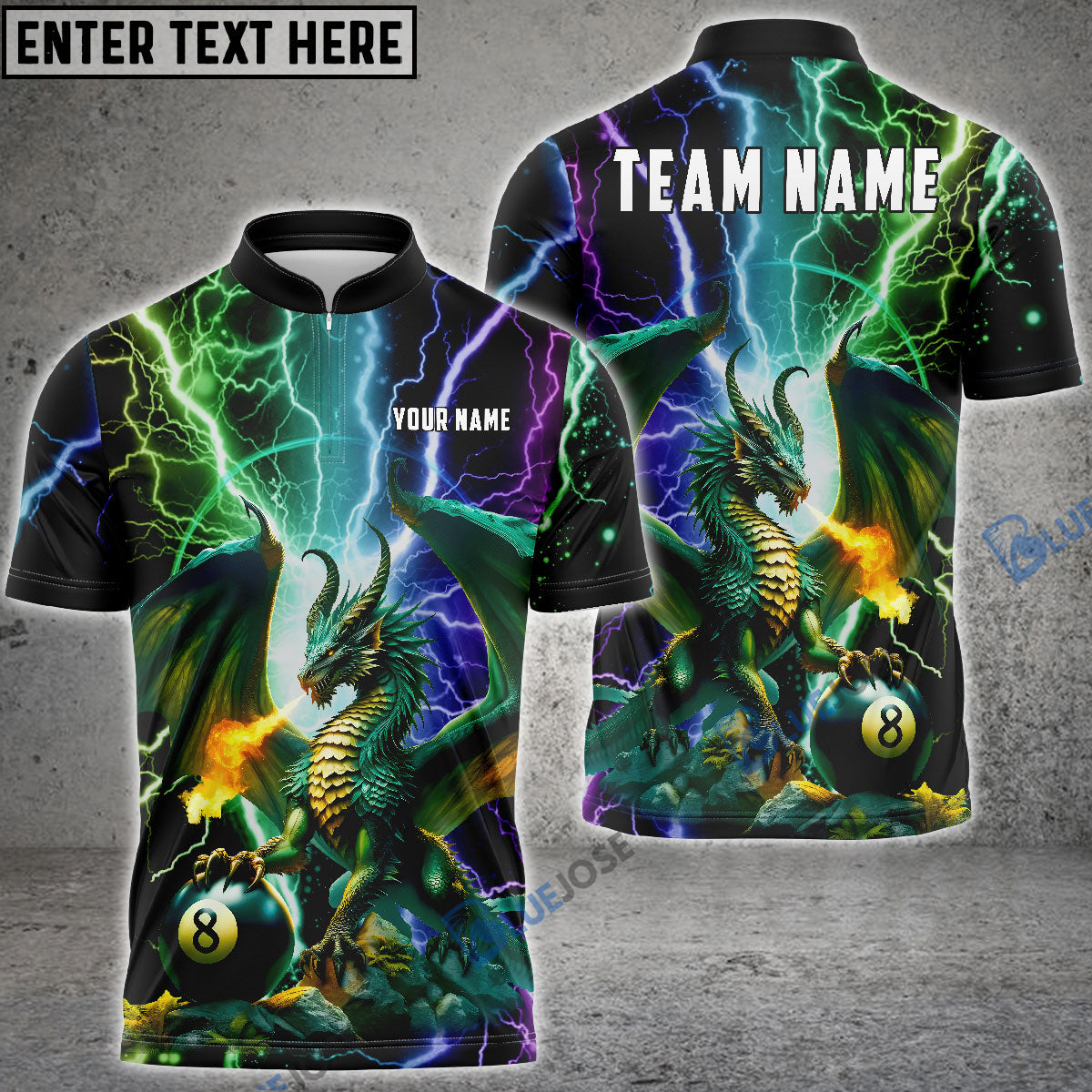 BlueJose Billiards Dragon Lighting Personalized Name, Team Name Shirt