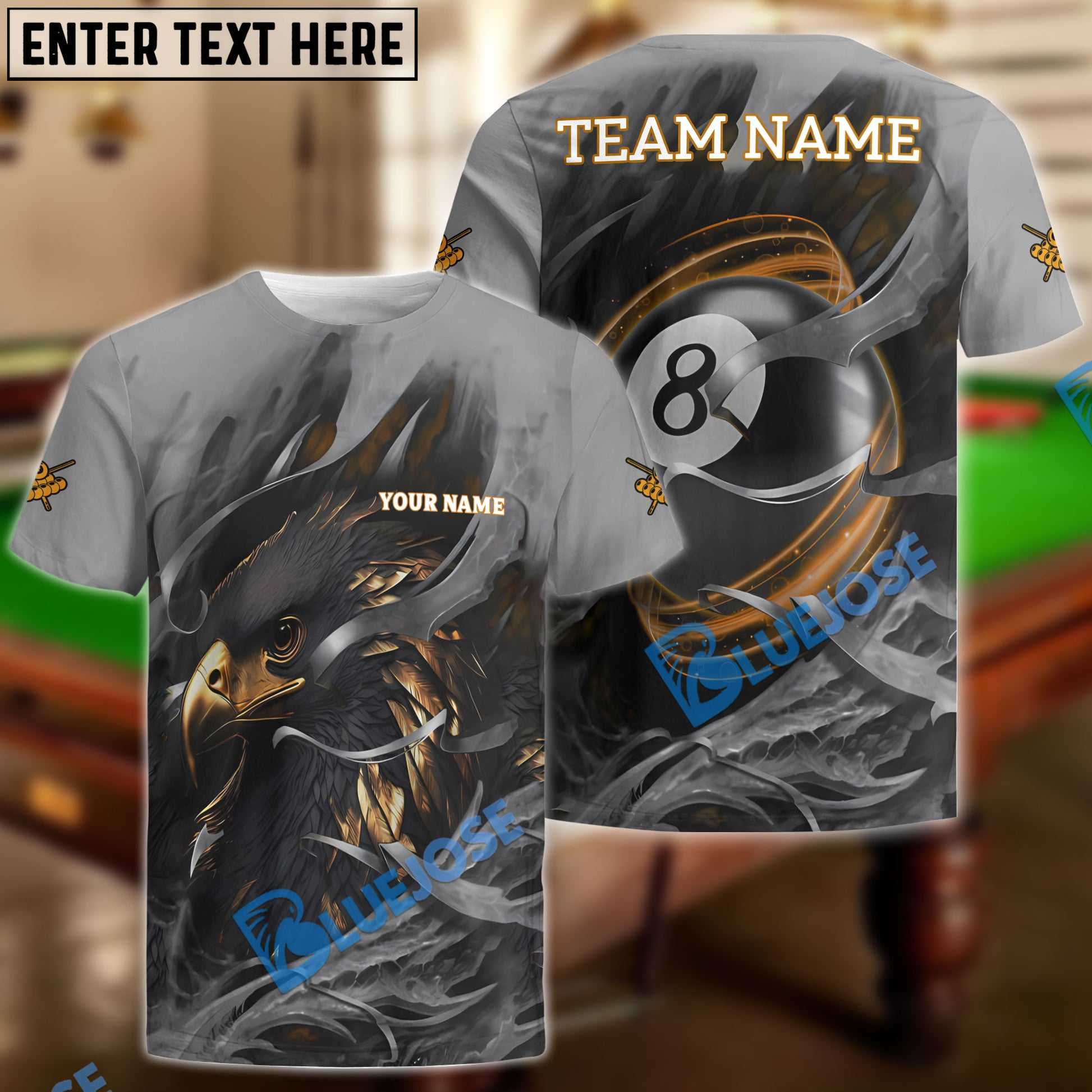 BlueJose Billiards Eagle Pool 8 Personalized Name, Team Name Unisex Shirt (4 Colors)
