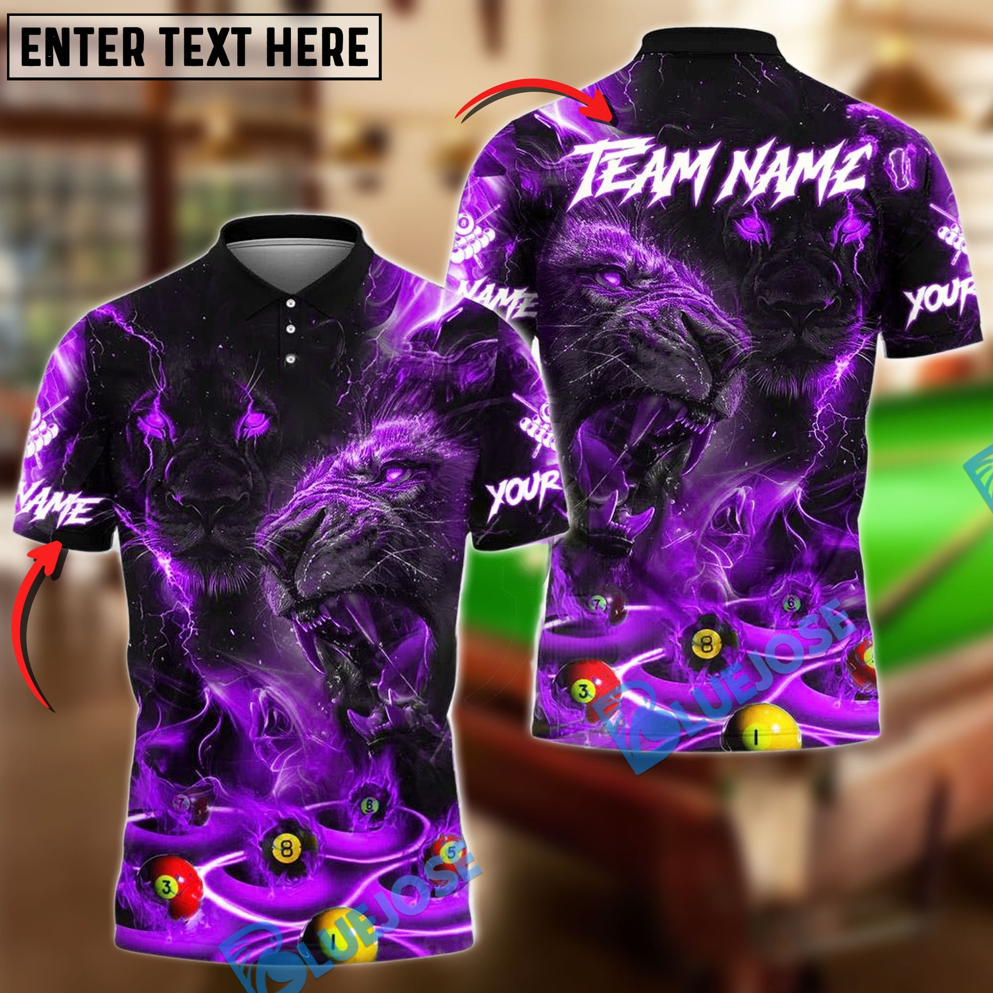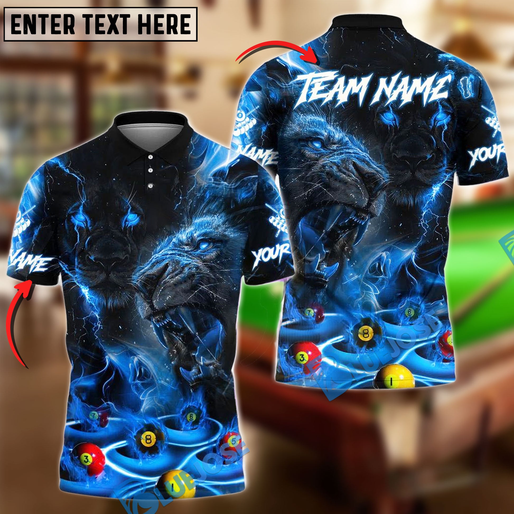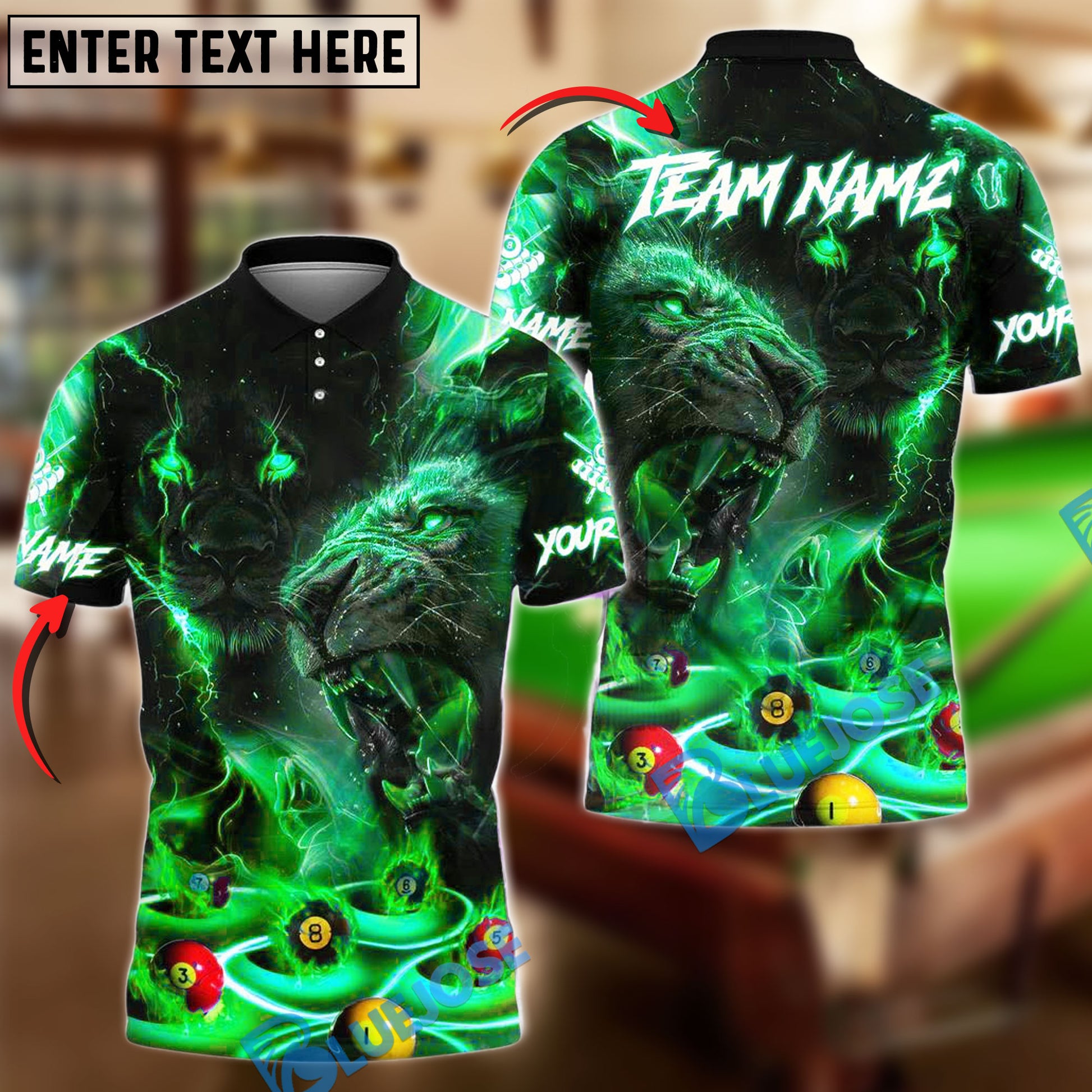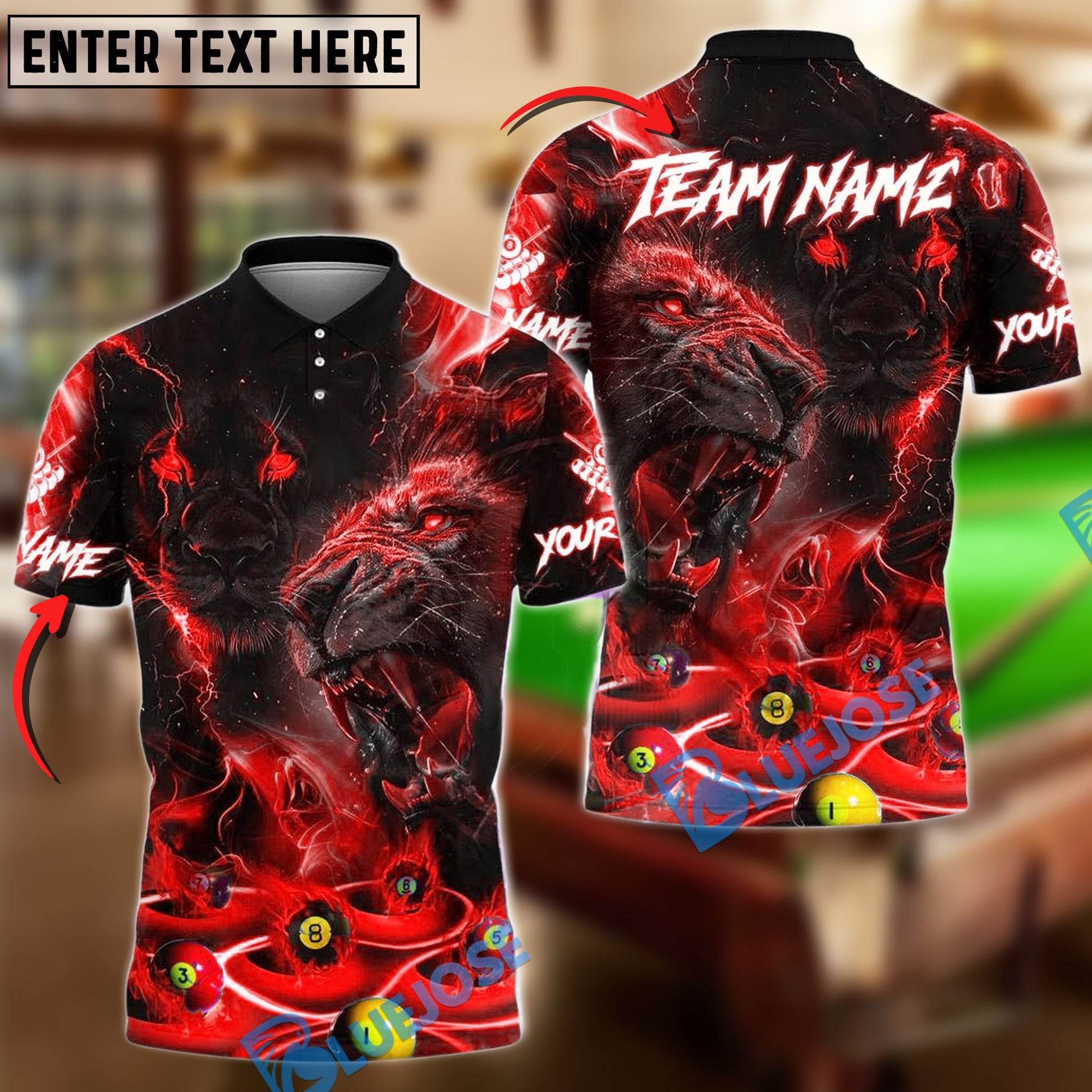 BlueJose Billiards Fierce Lion Flames Personalized Name Shirt (4 Colors)
