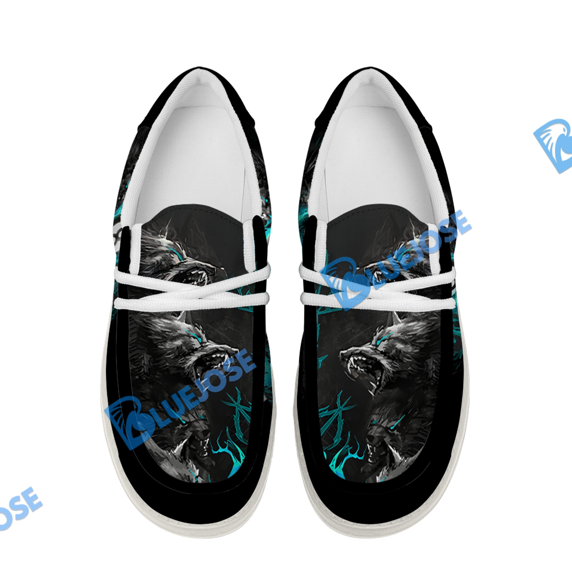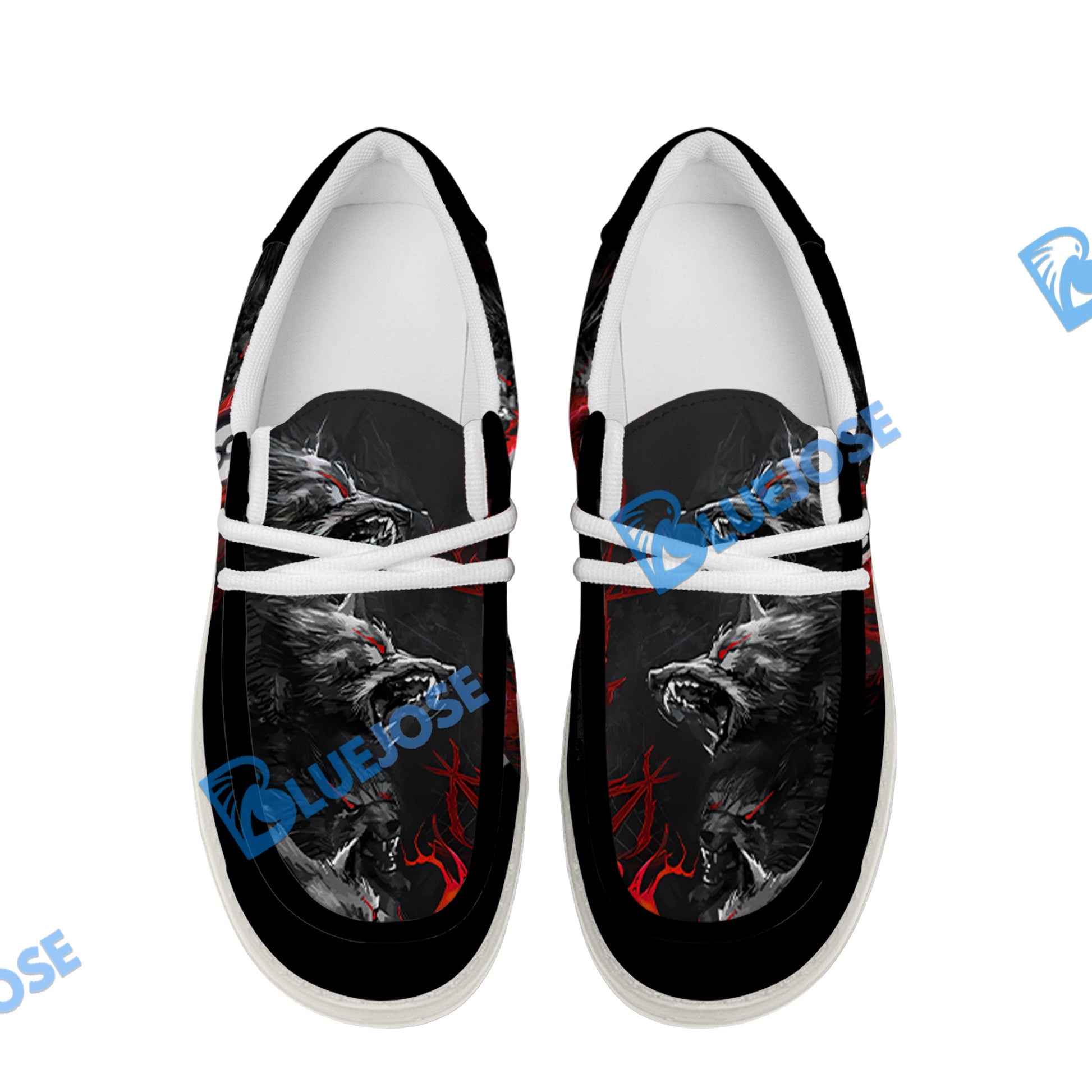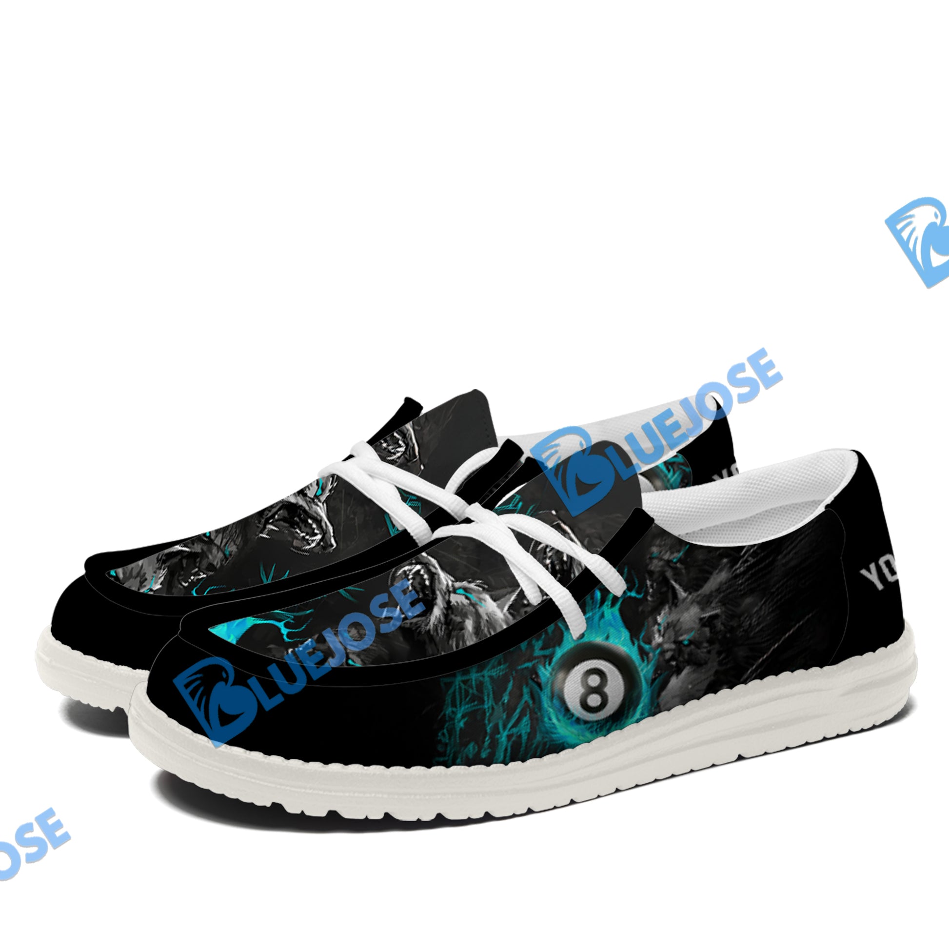 BlueJose Billiards Flame Wolf White Canvas Loafer Shoes (4 Colors)