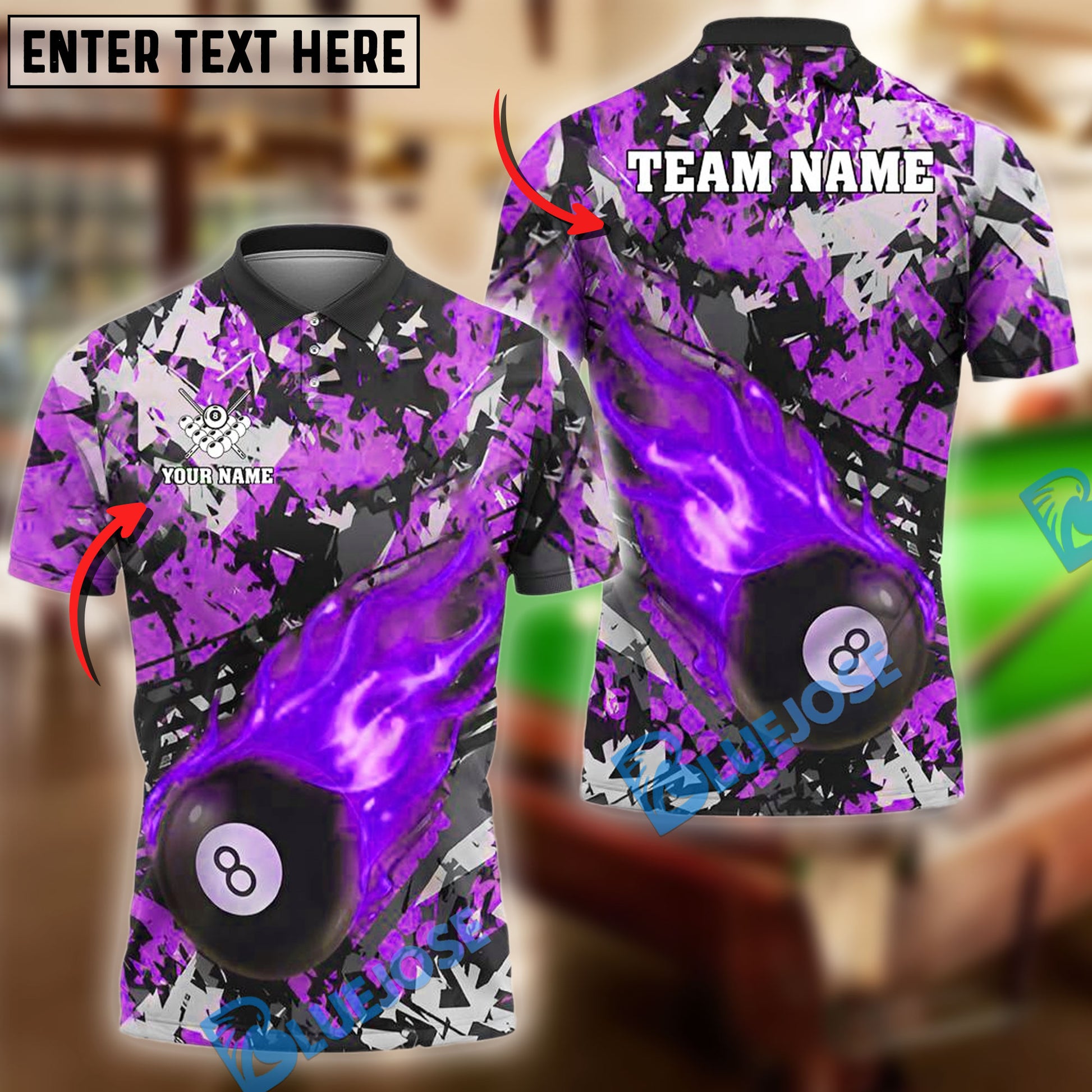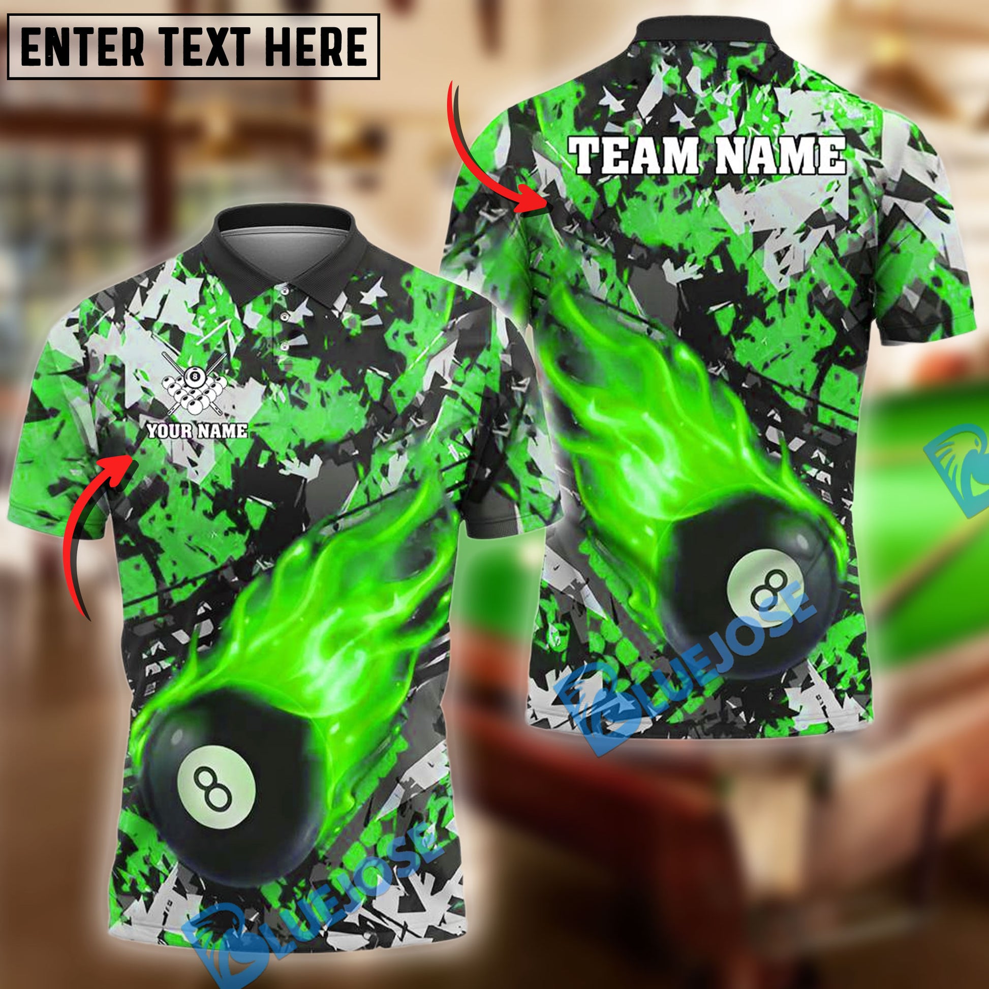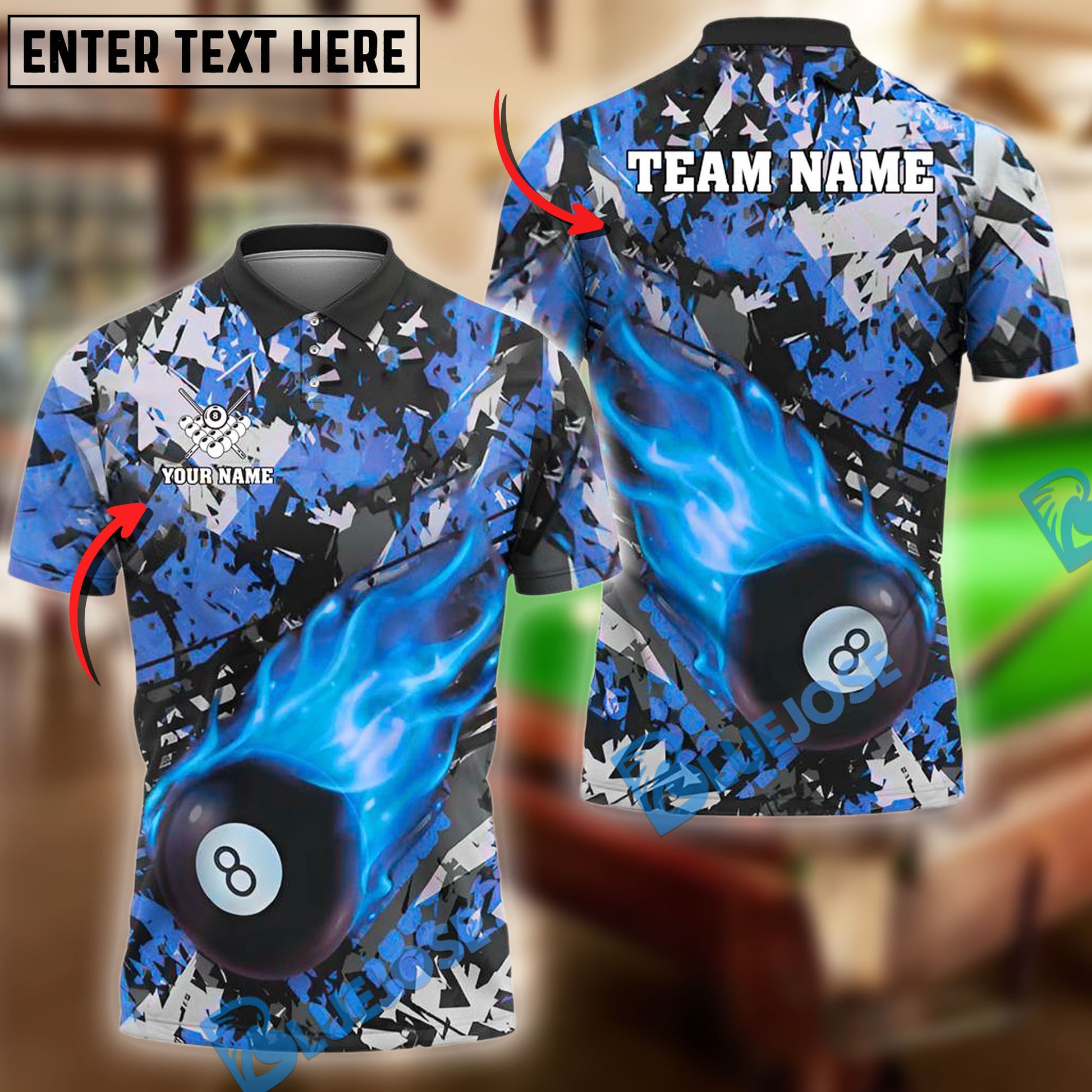 BlueJose Billiards Flaming 8-Ball Personalized Name, Team Name Unisex Shirt (4 Colors)