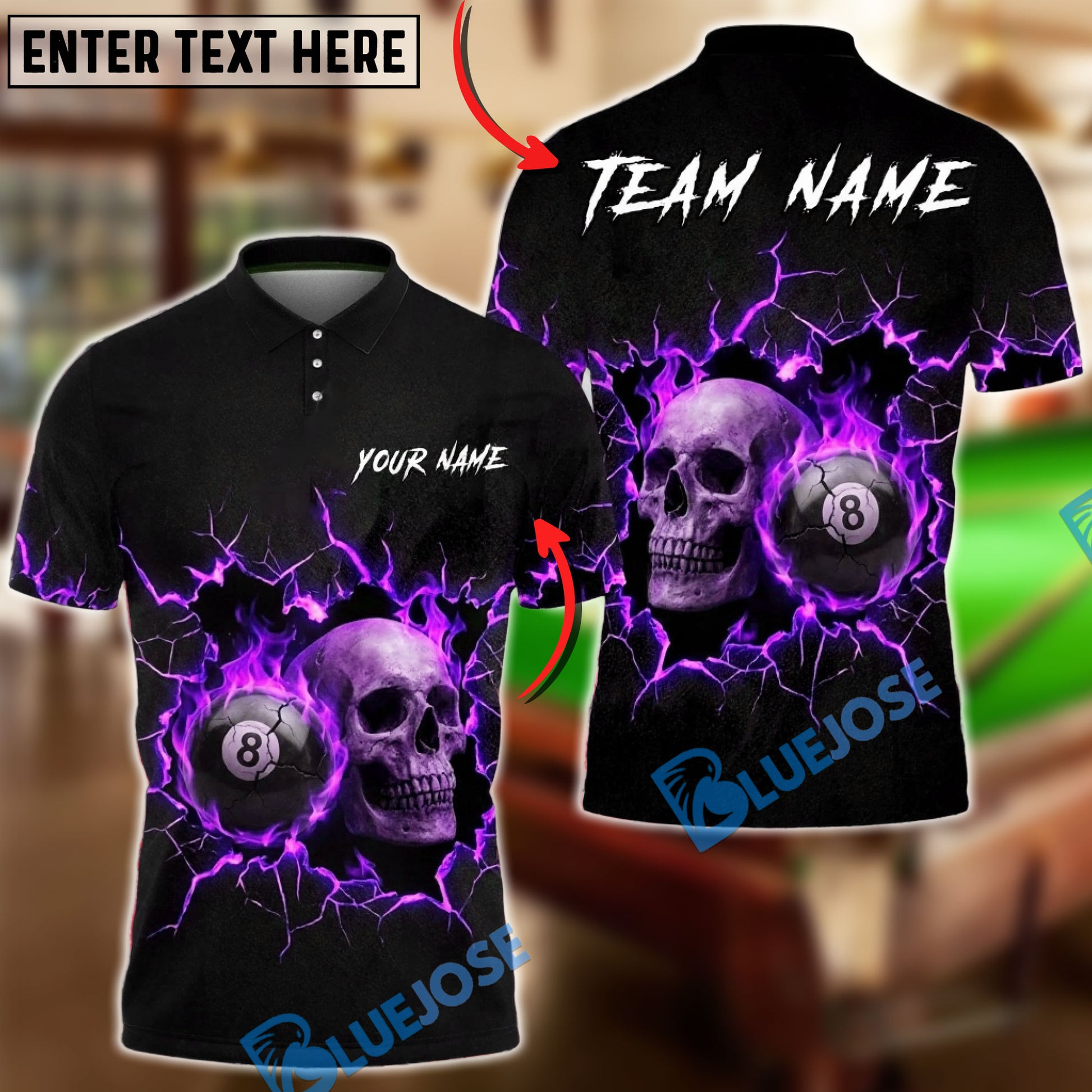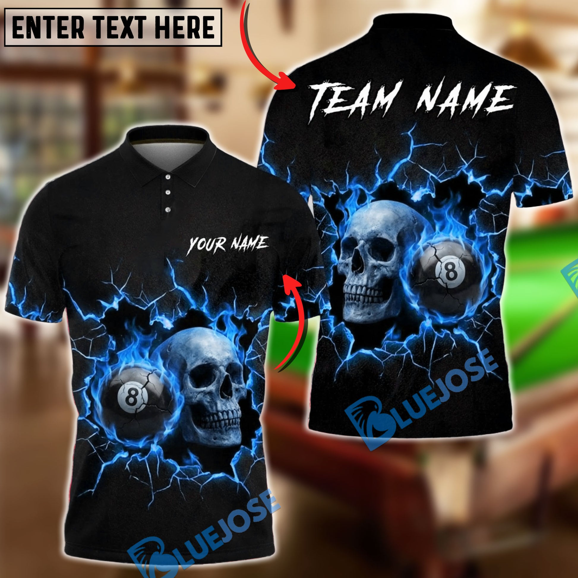 BlueJose Billiards Flaming 8 Ball Skull Black Personalized Name, Team Name Unisex Shirt (4 Colors)