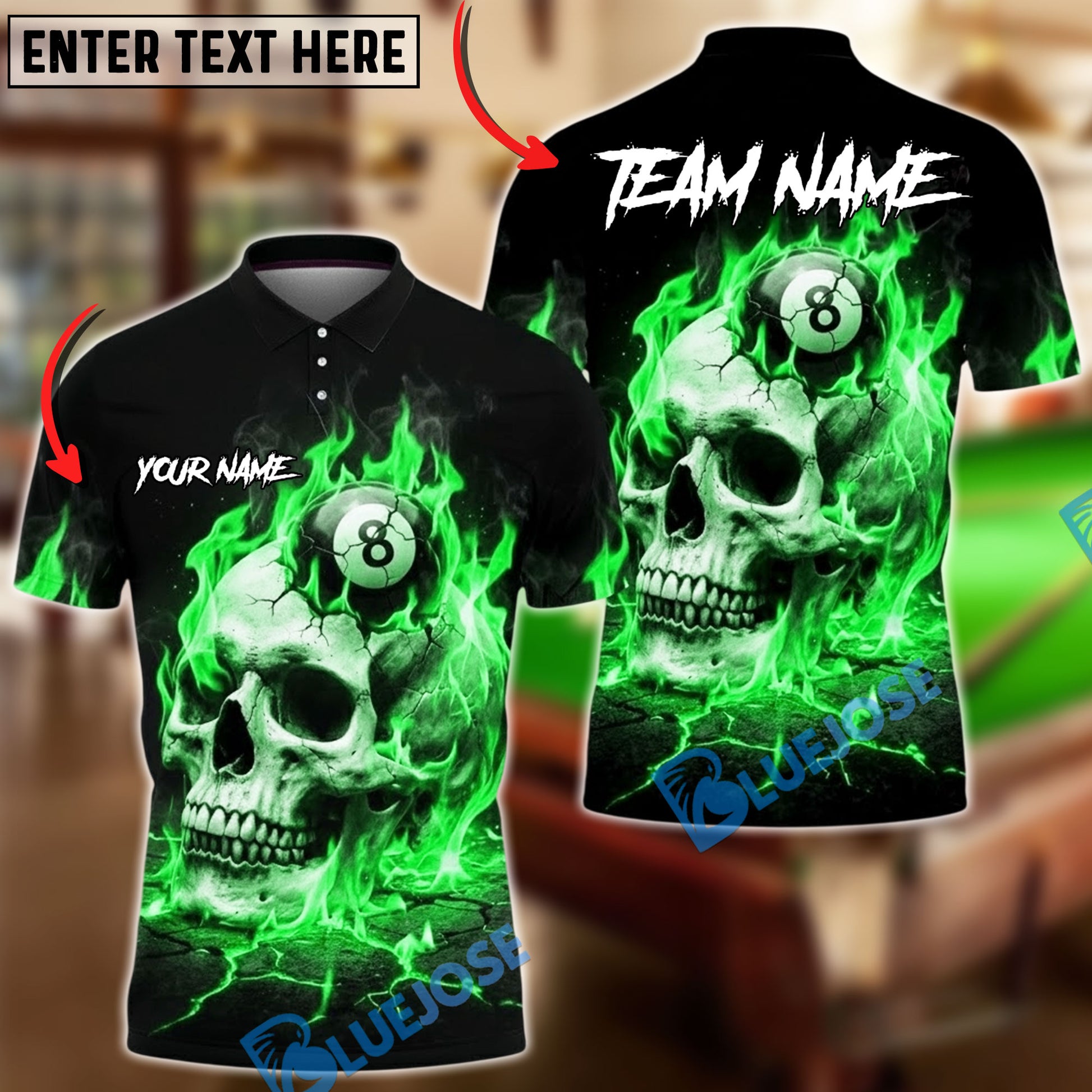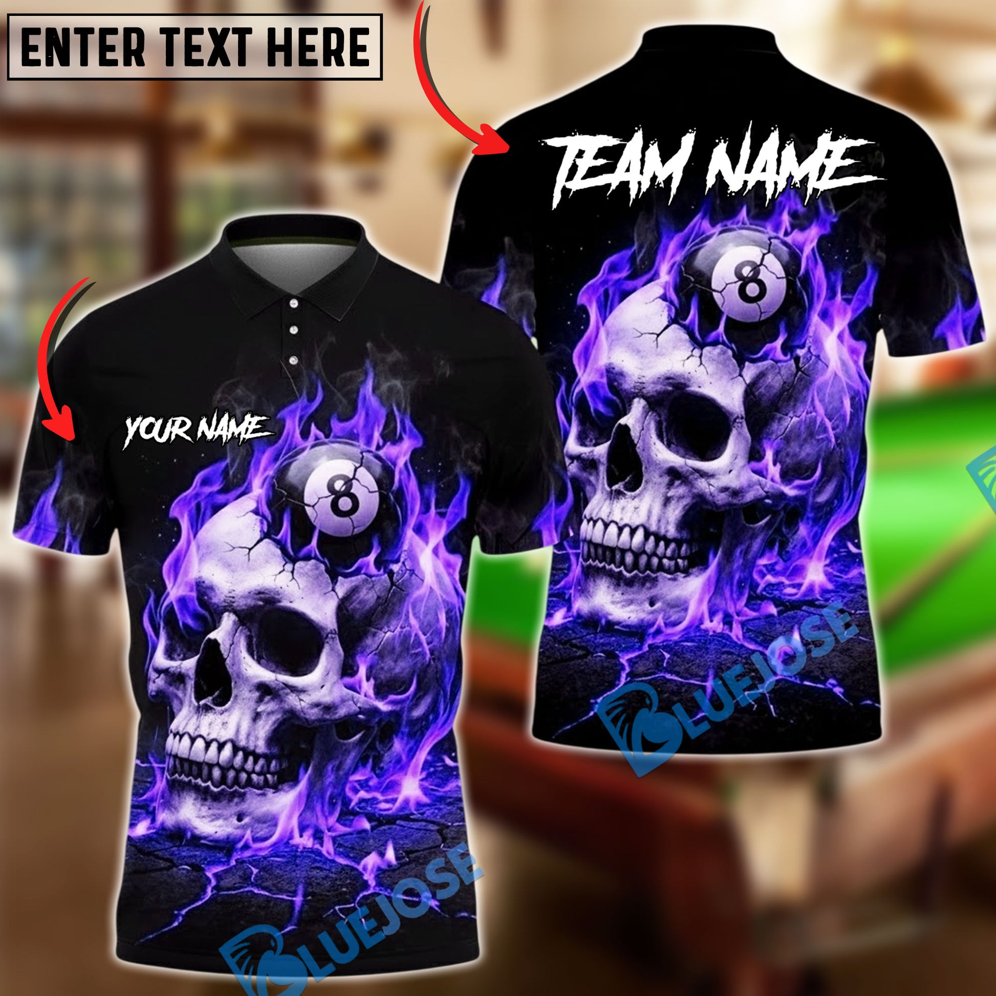 BlueJose Billiards Flaming Skull 8 Ball Design Personalized Name, Team Name Unisex Shirt (4 Colors)