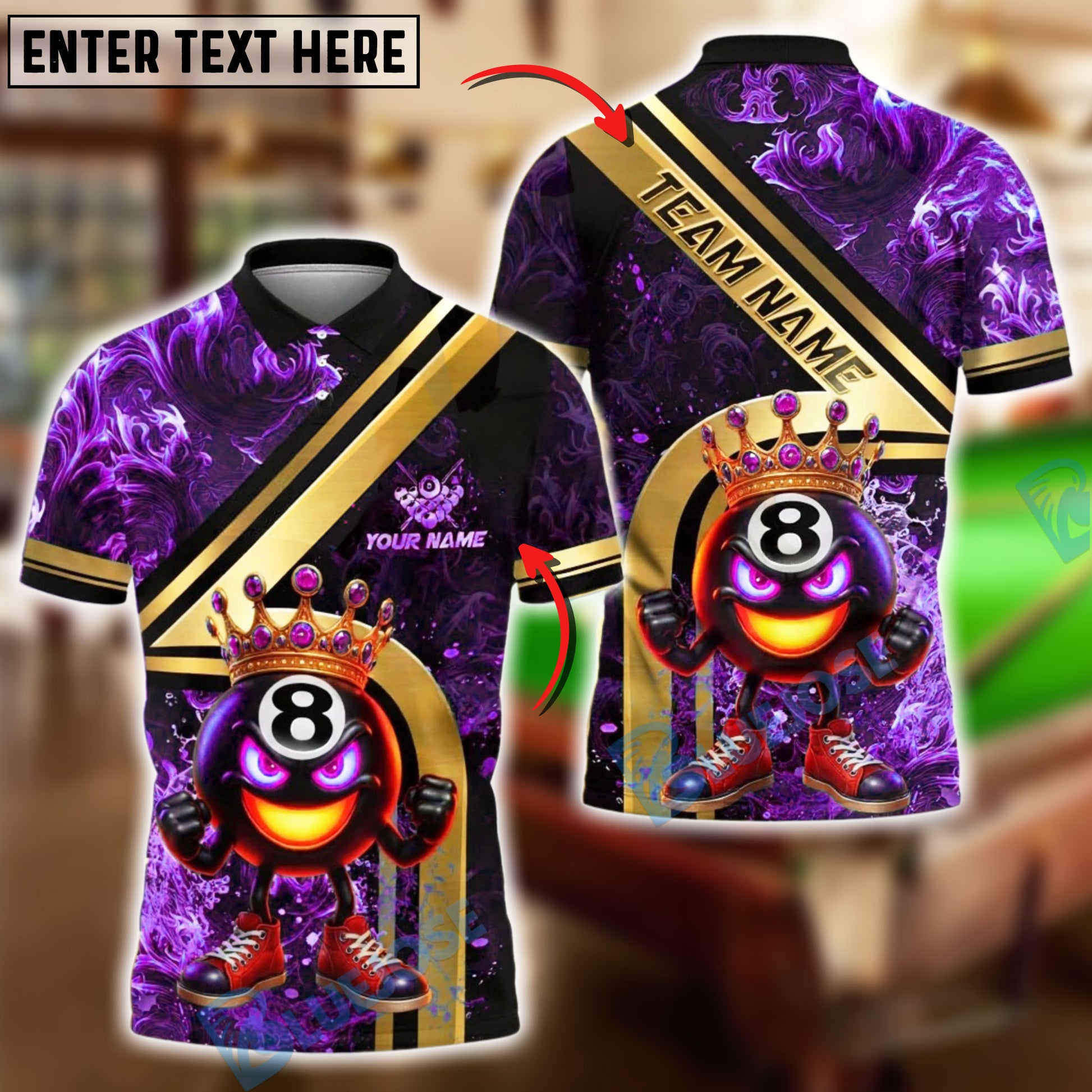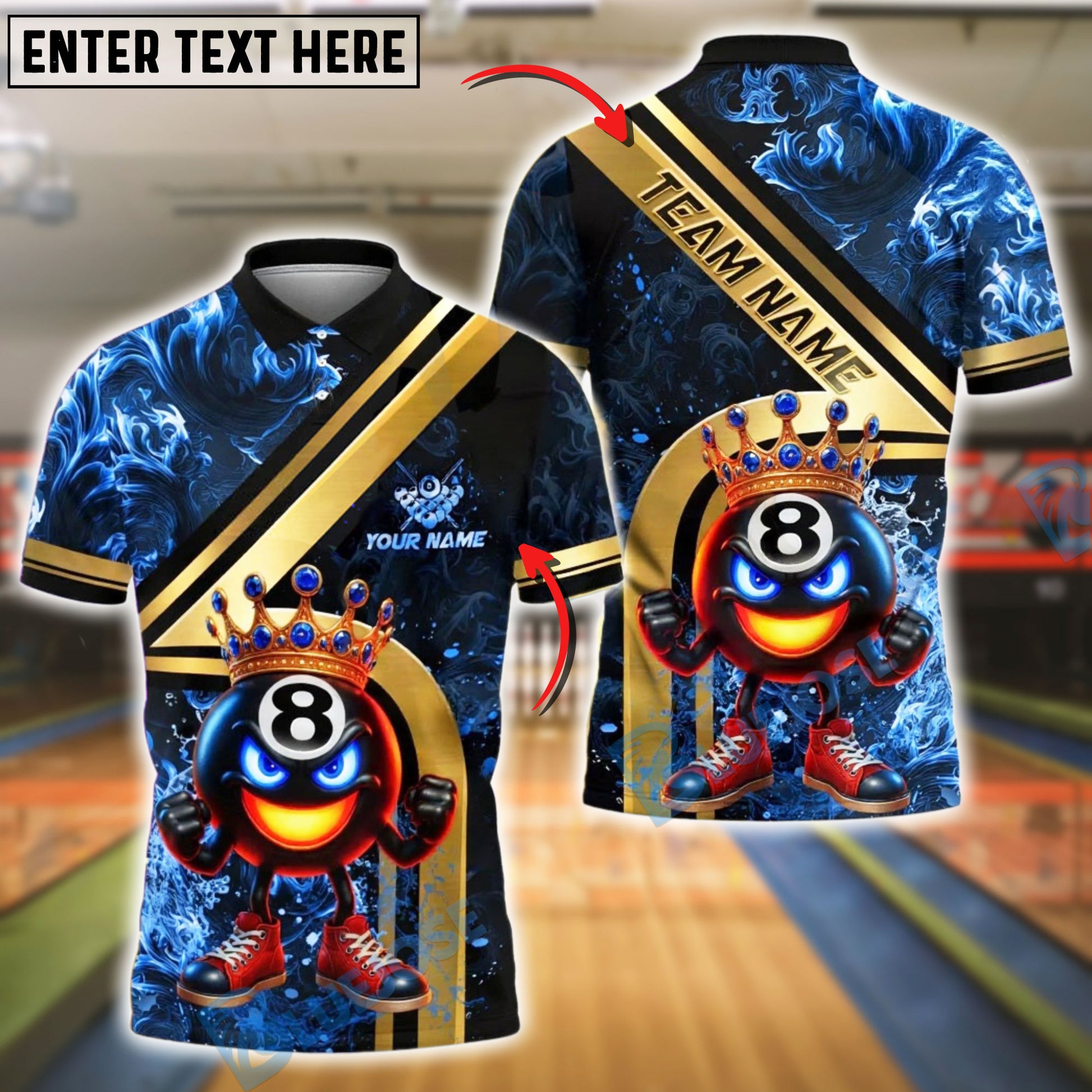 BlueJose Billiards King 8 Ball Golden Fire Design Personalized Name Shirt (4 Colors)
