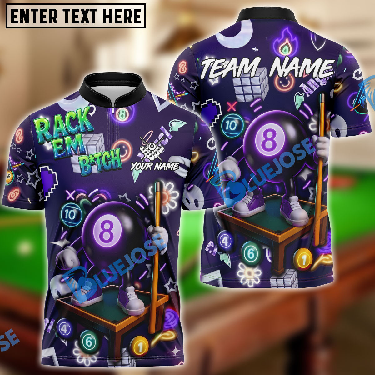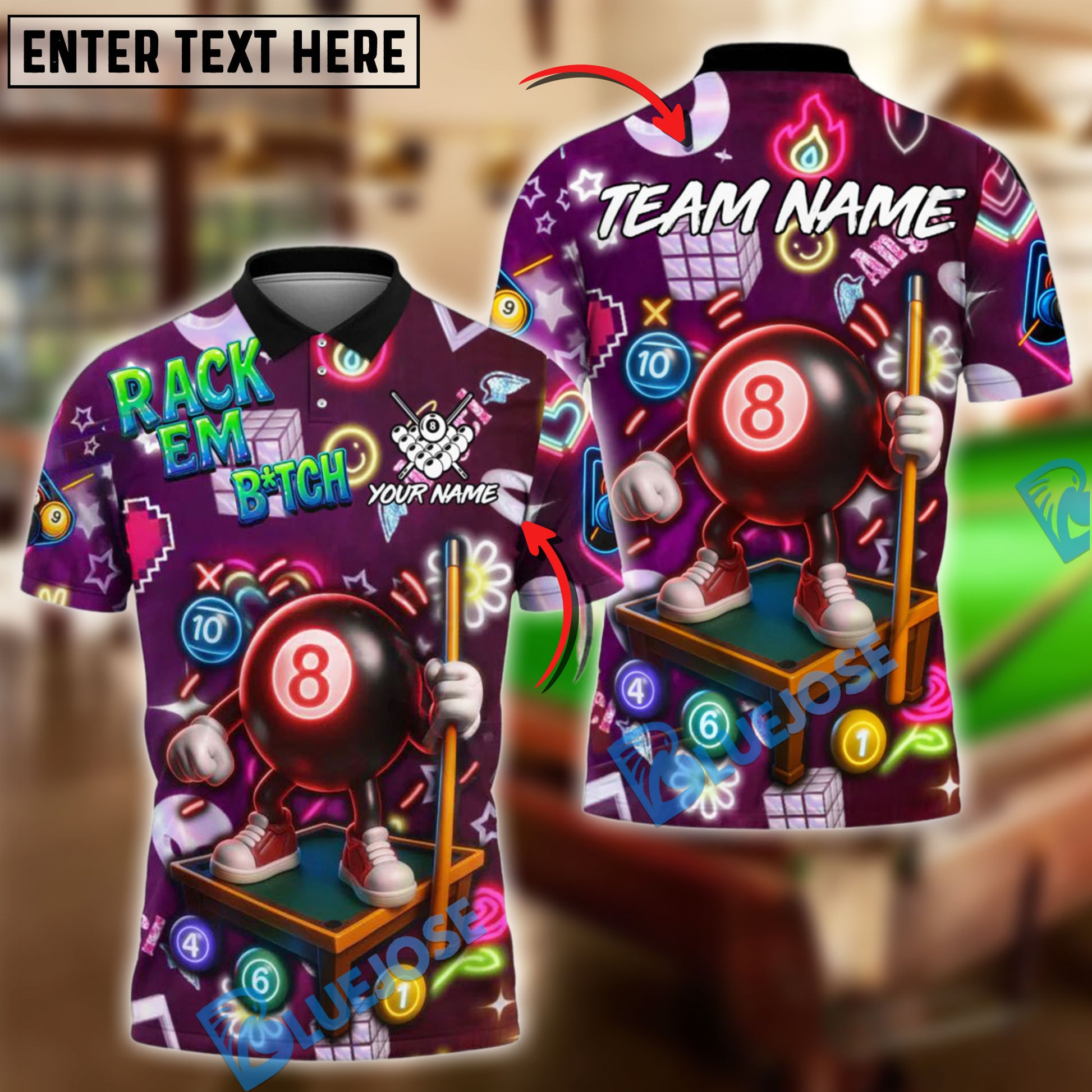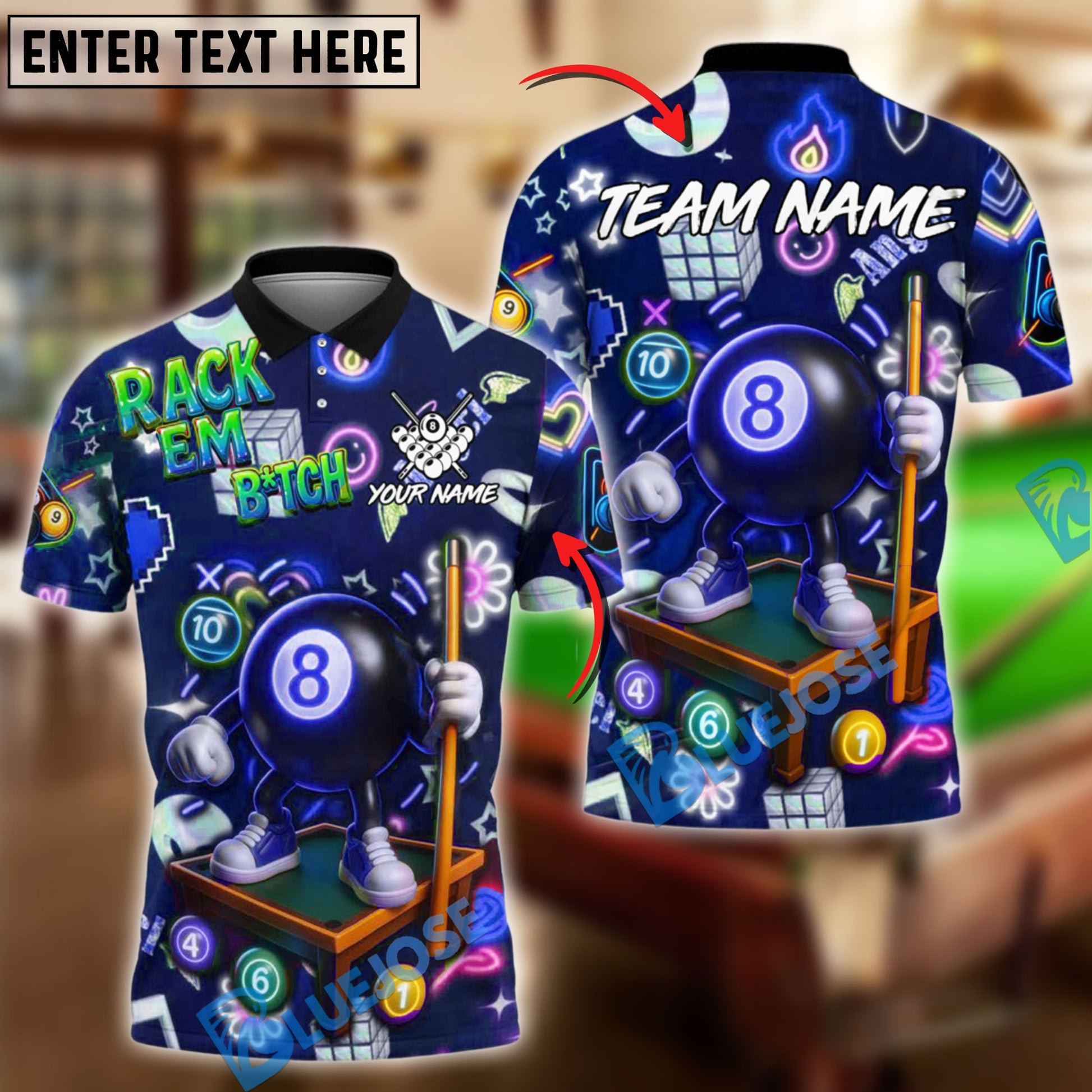 BlueJose Billiards Neon 8-Ball Arcade Glow Style Personalized Name Shirt (4 Colors)