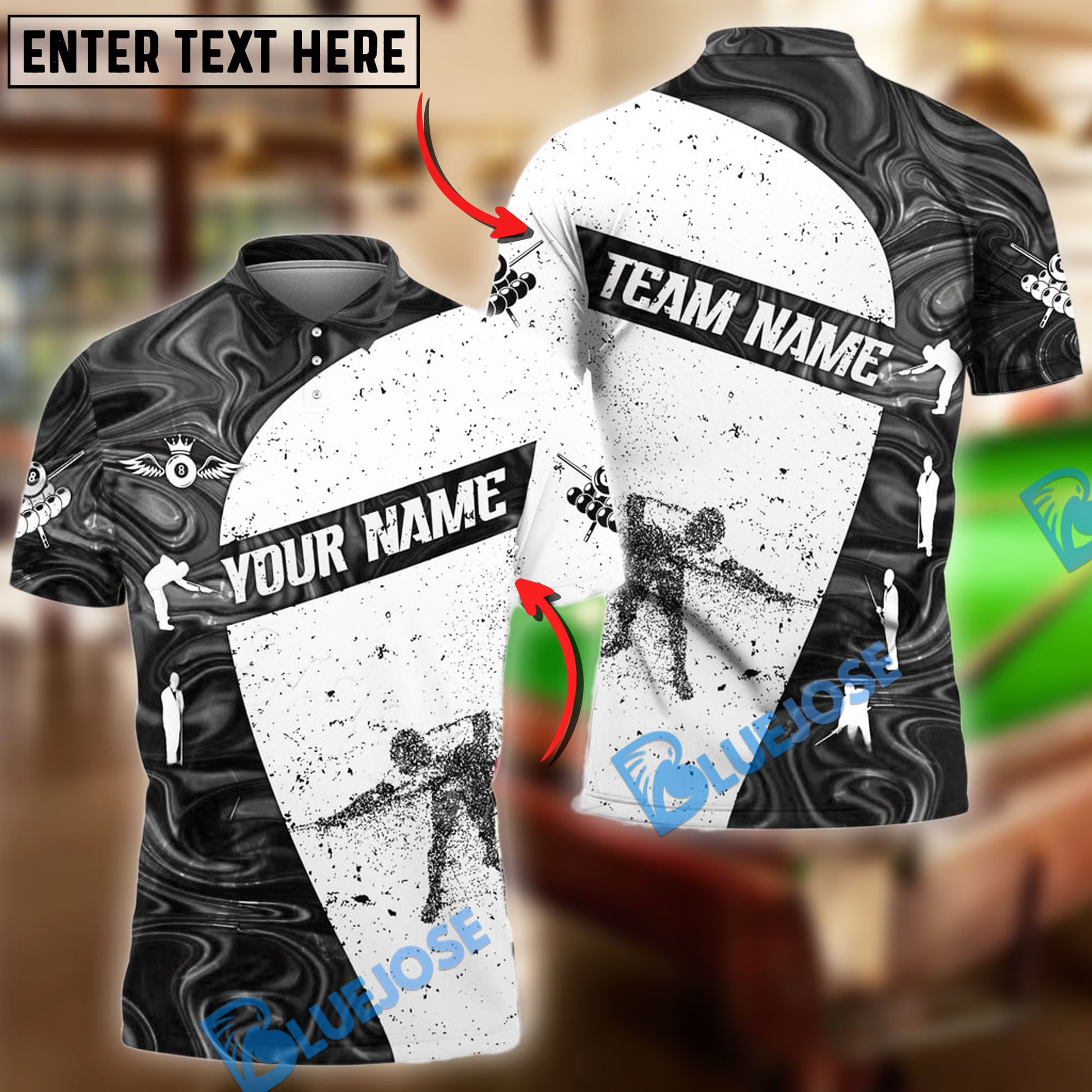 BlueJose Billiards Player Dust White Pattern Personalized Name & Team Name Shirt (4 Colors)